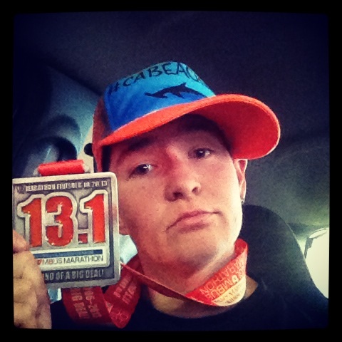 So now I have started a collection of photos of me in different places in this ridiculous head topper. So naturally the first thing I did when I finished the half marathon on Sunday (in personal record time) was put "the hat" on. Also, this is not a hat you can wear and not make the douchiest face possible.