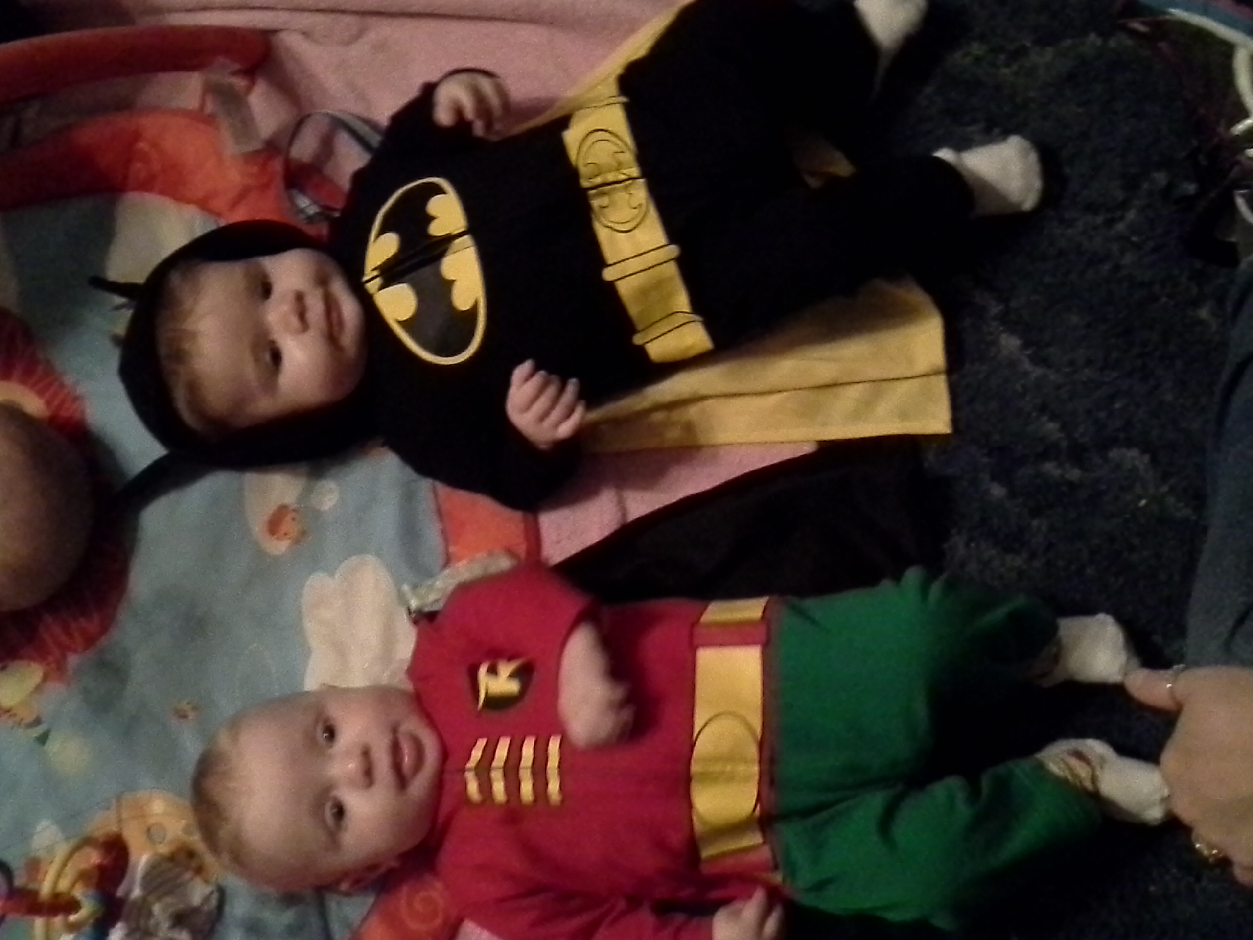 Here are C and D dressed up for tonight's Halloween party. I can't help but think they are the cutest Batman and Robin.