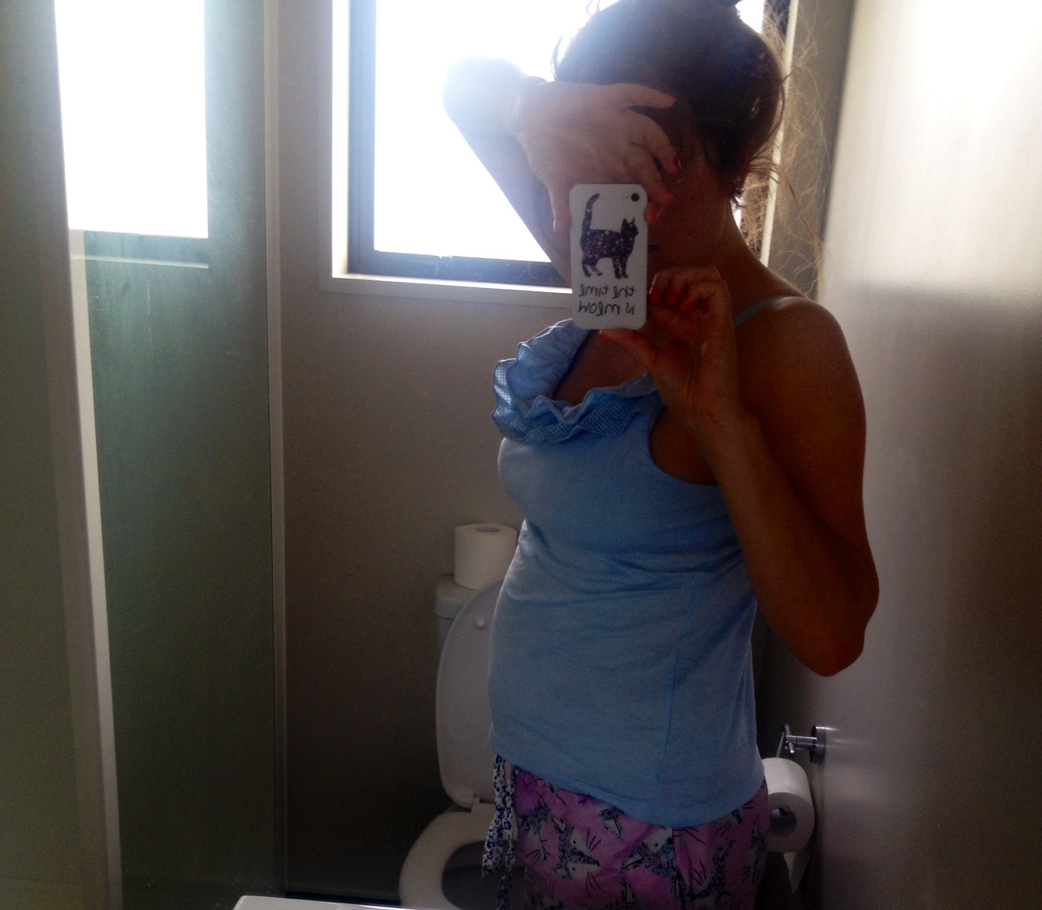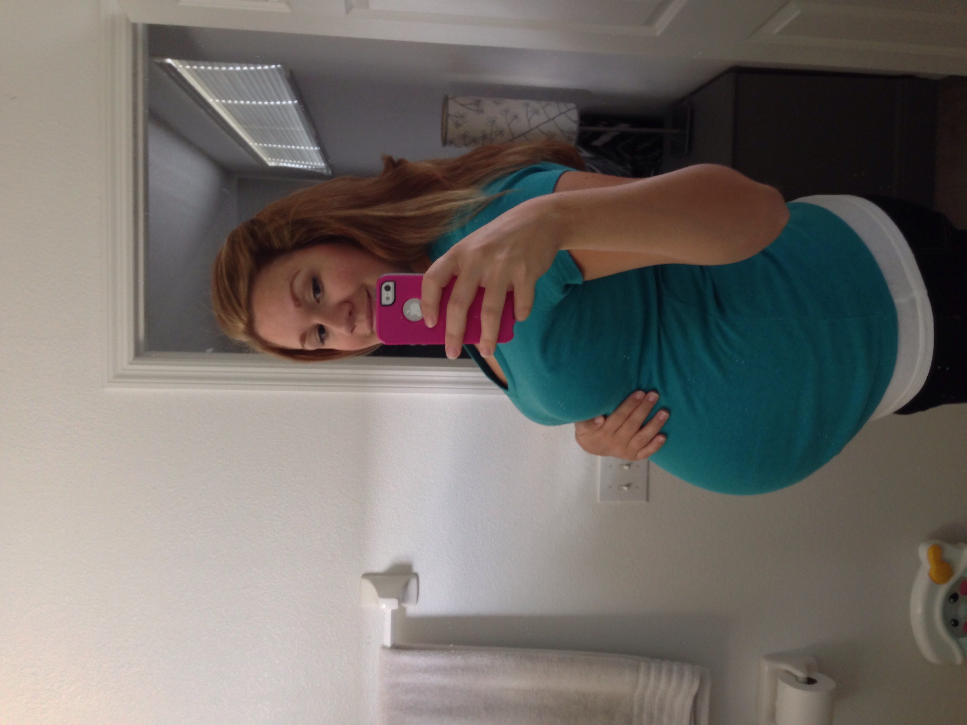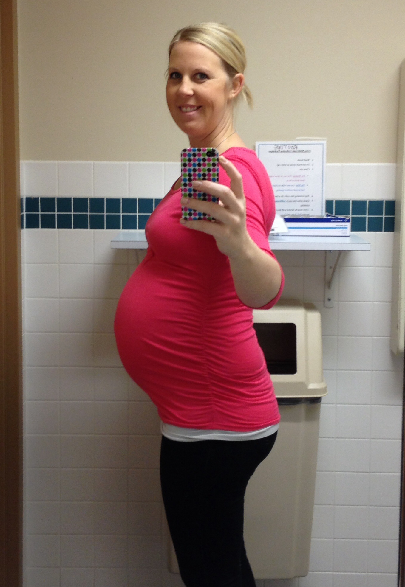 STM, 27 1/2 weeks...Yes, I am back to standing on my toilet again...It is getting harder and harder to heave myself onto the toilet lid, so I might have to suck it up and climb the stairs to my full length mirror