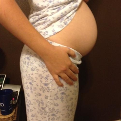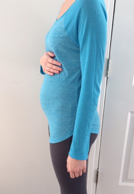 I'm seriously poking out with baby number 2. (Please excuse the pjs. I wanted to wear the same ones in all my pics so it would show better and last pregnancy these fit until birth.)