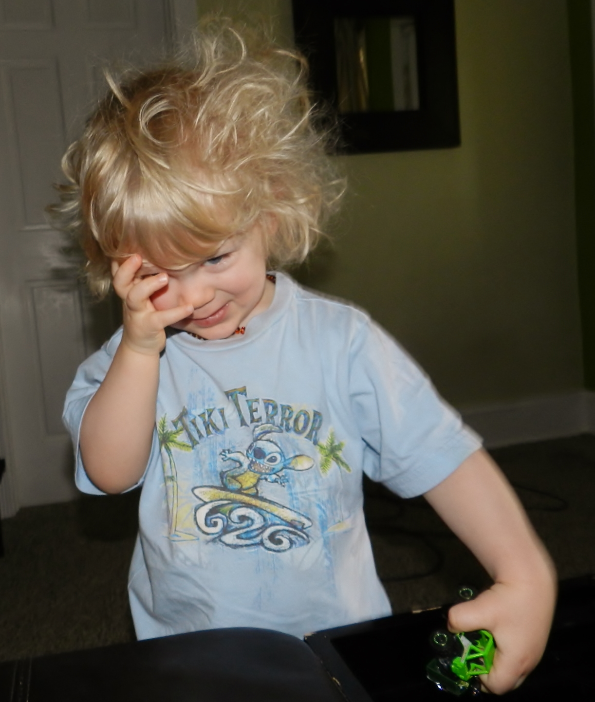 JAK in the box! (DS's initials spell JAK) .... I just cant get over the goofy smile and wild eyed expression...just a moment before taking this, he was looking down concentrating on a book... I called over to him and he looked up and gave me this cheesy face. lol