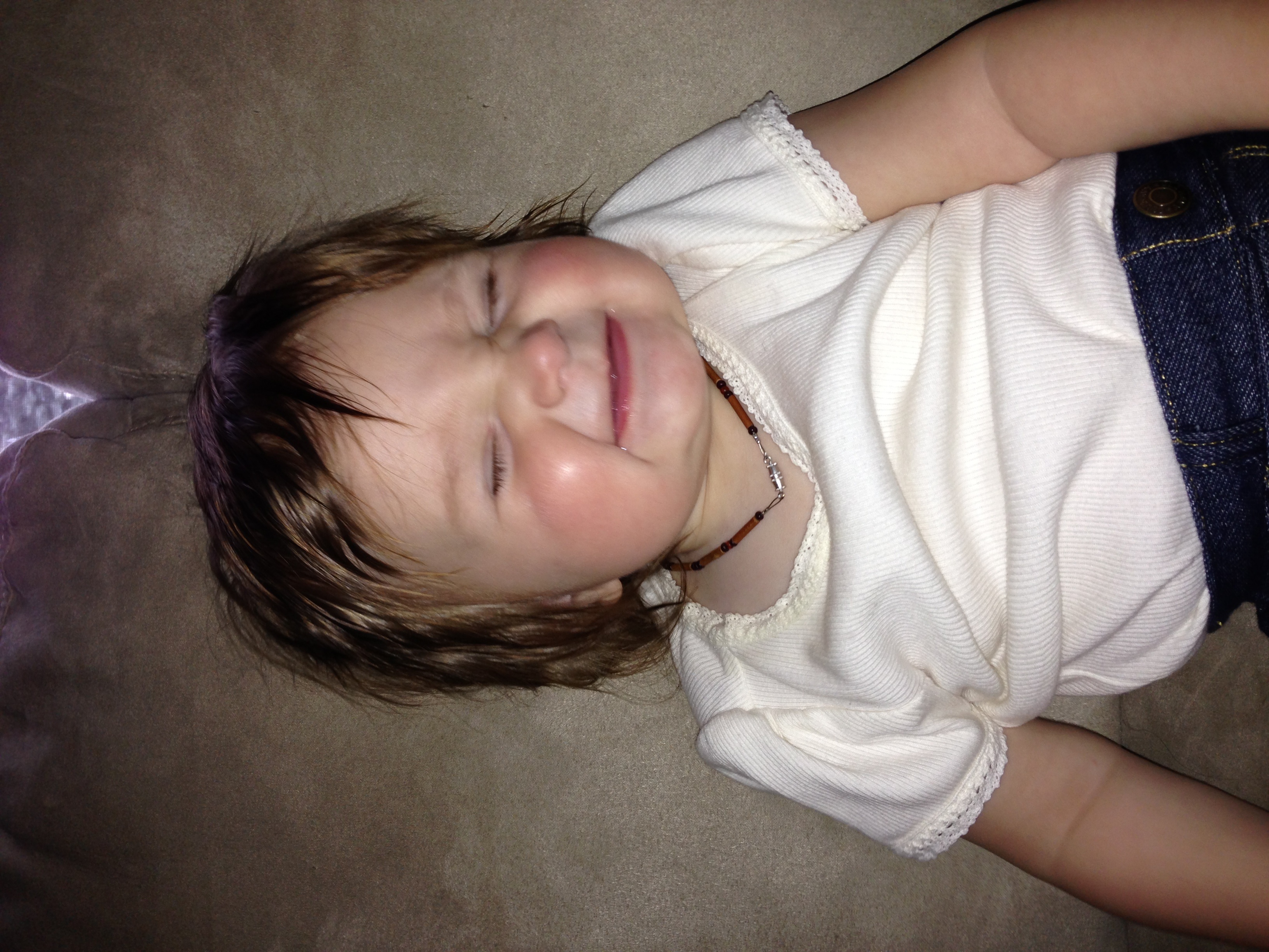 Anya in her Halloween costume and cracking up laughing at her daddy (don't mind the soaking wet shirt LOL.. I give up)