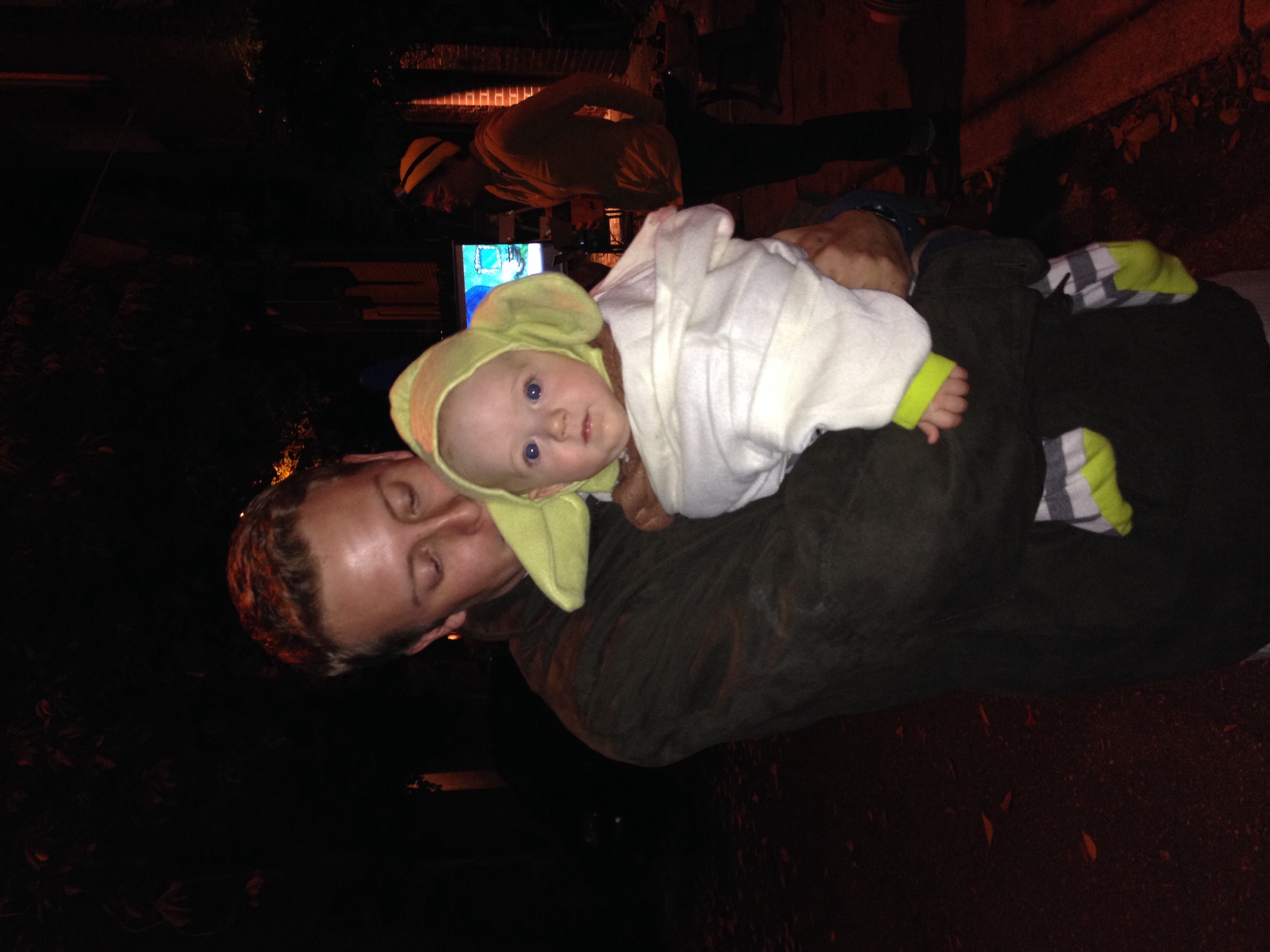 T did not have a very good night, he was so fussy. All of the pictures are blurry. I am a Twi'lek and T is Darth Vader. My mom did the, "What does the fox say?" fox. SO didn't like his makeup and didn't dress up. Oh well, the party was nice, we had a lot of people. Hope you guys had a great Halloween!