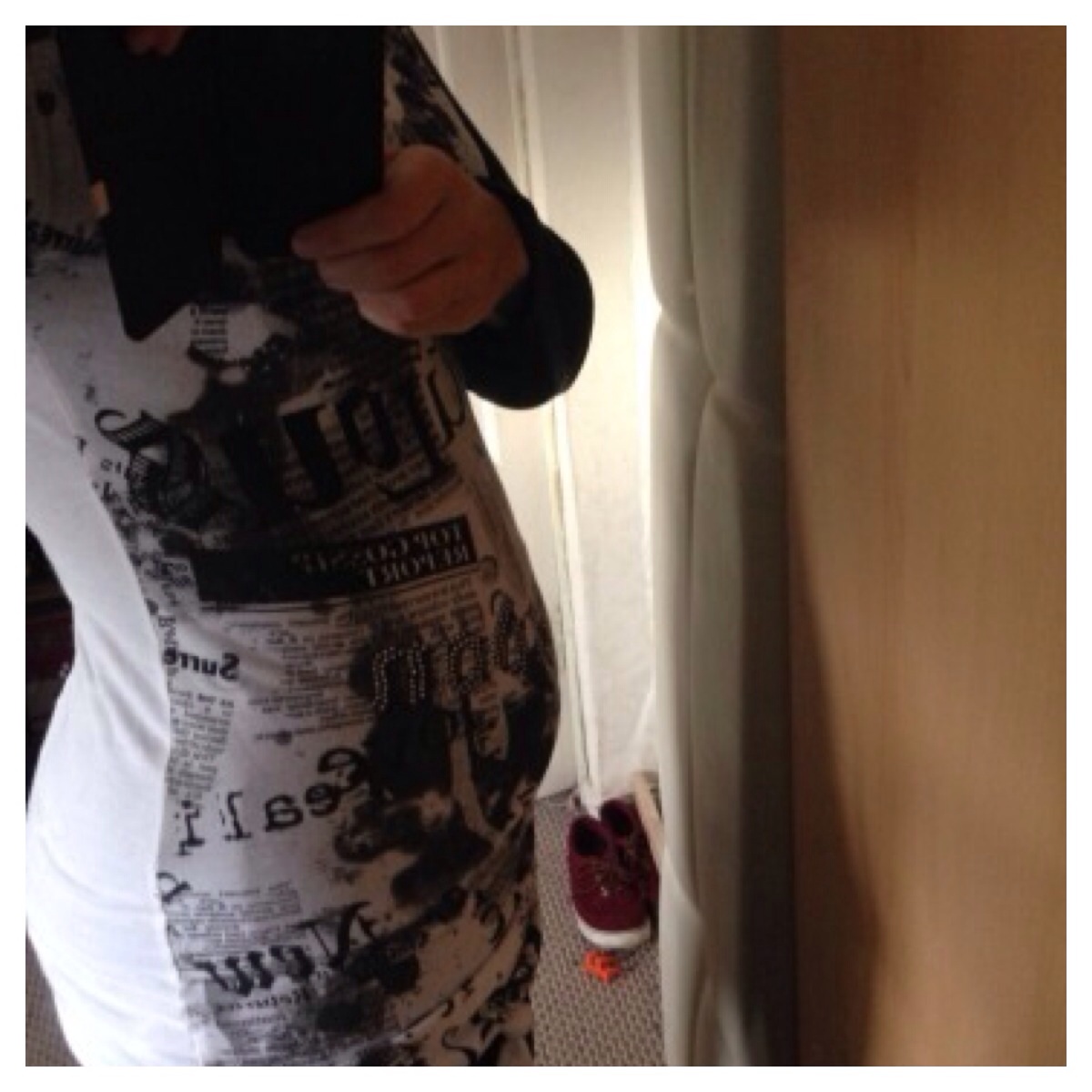 • This is my just over 8 weeks with the biggest top I have, I used to have a flat belly but I noticed my butt has grown as well, DH likes it lol