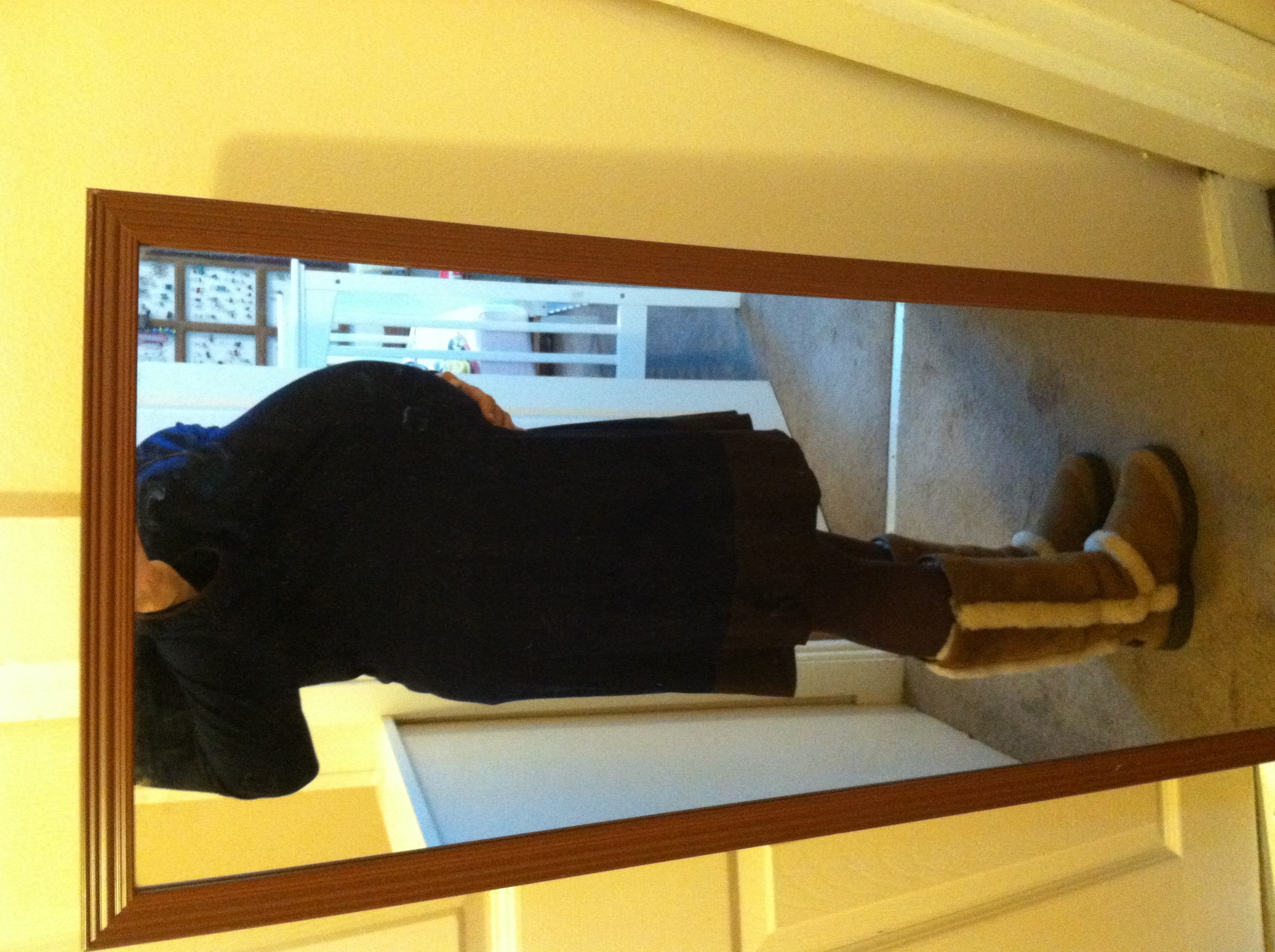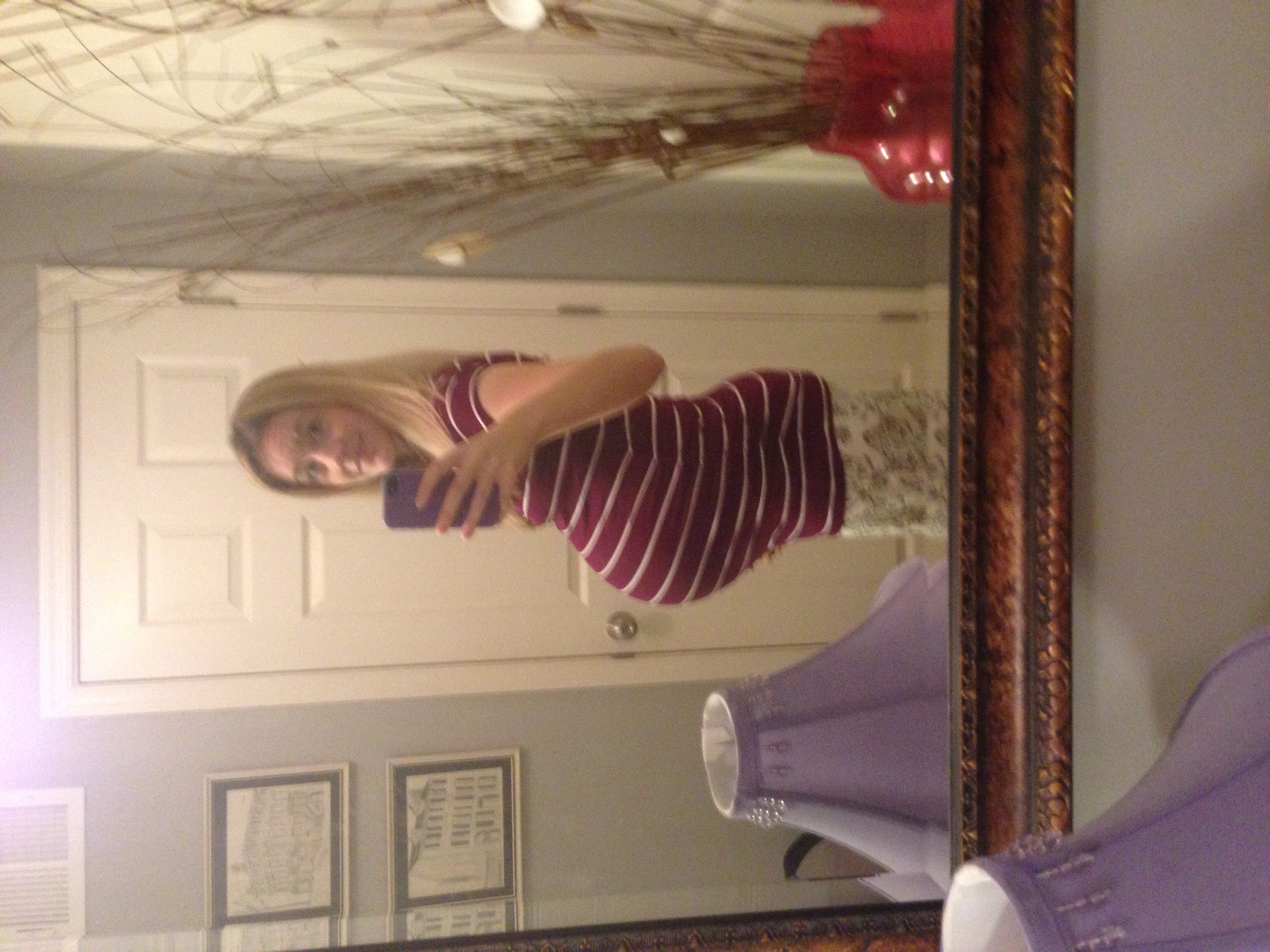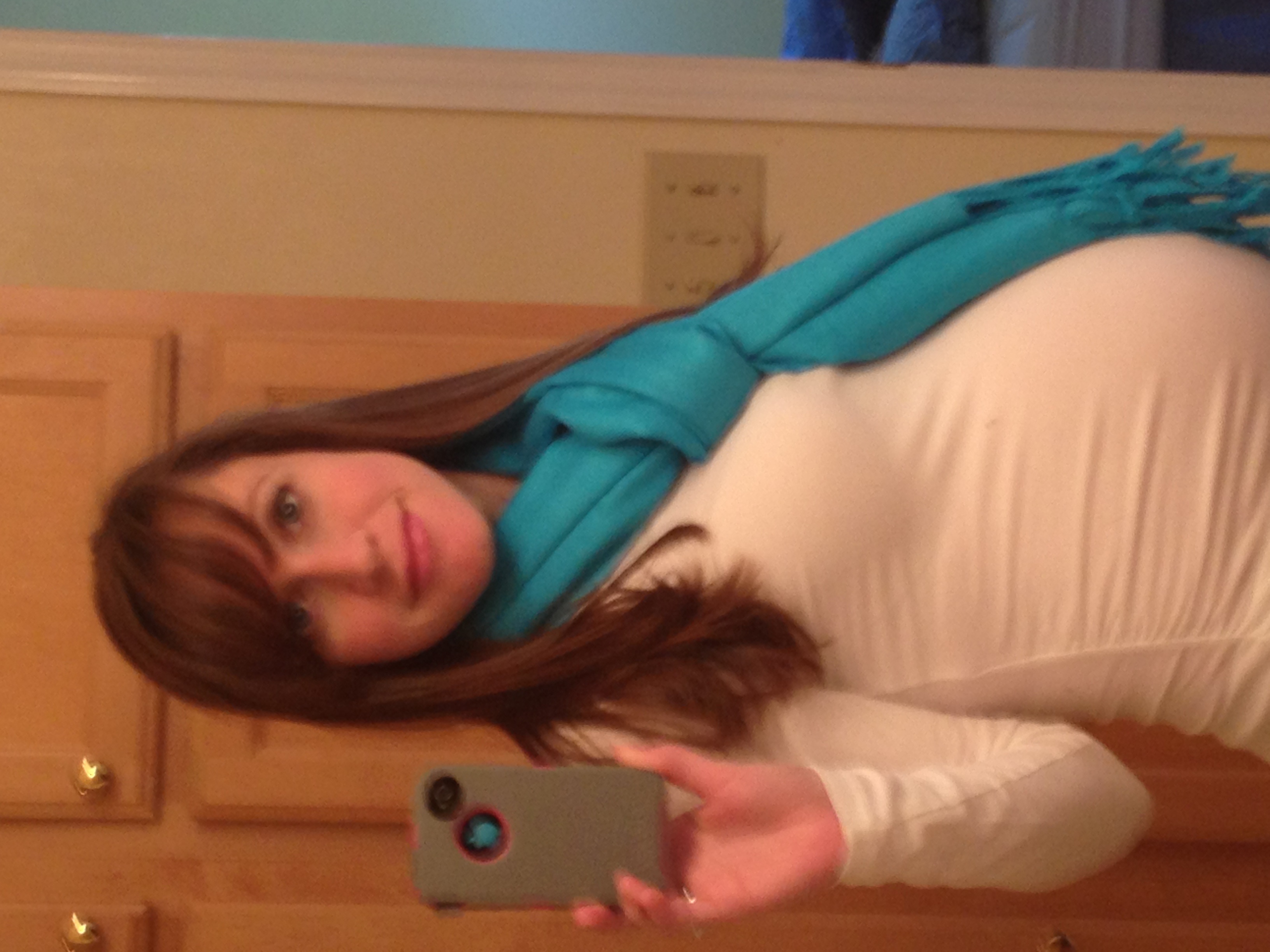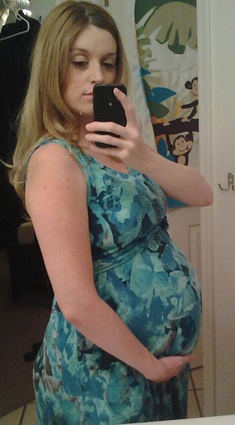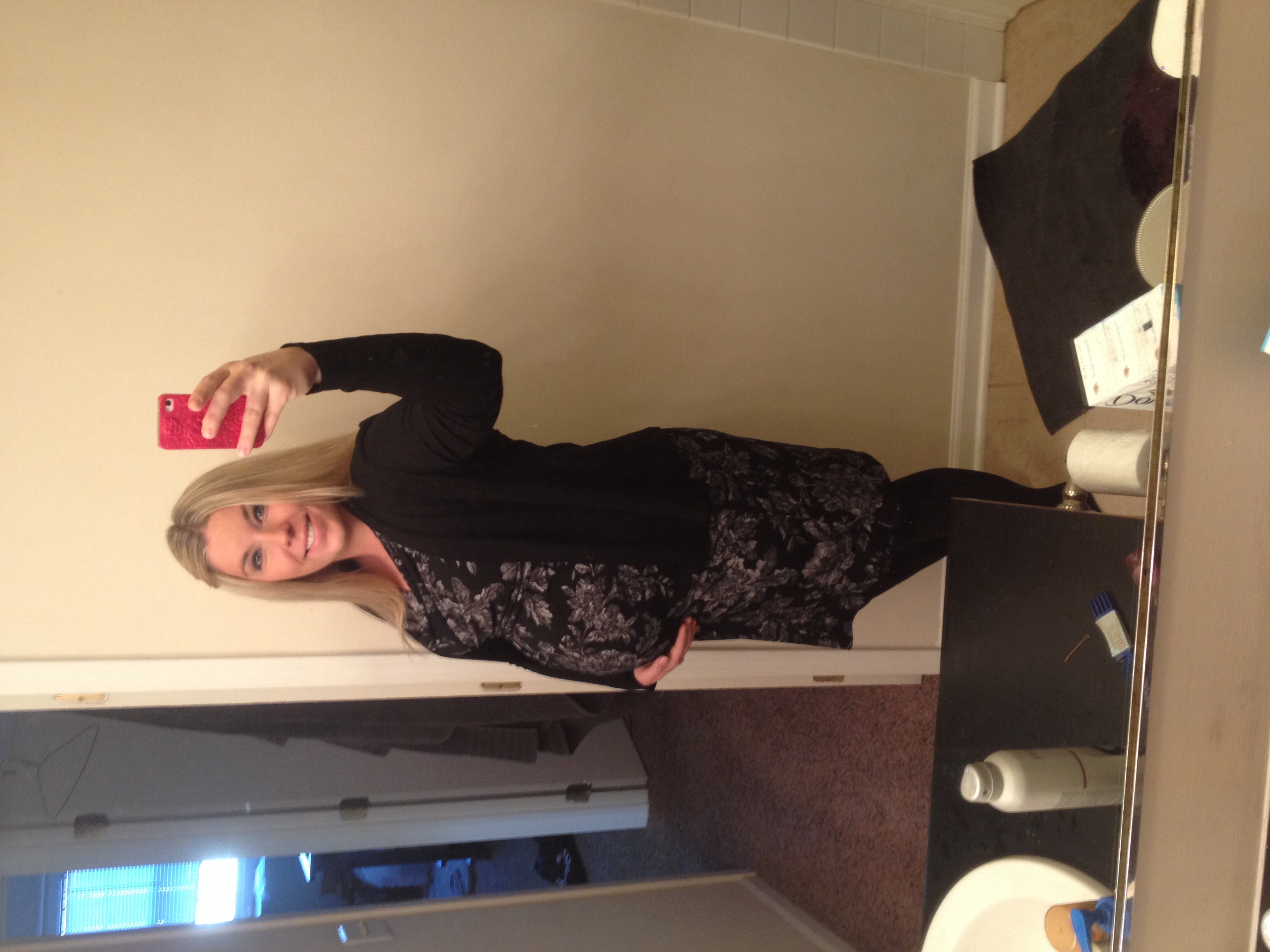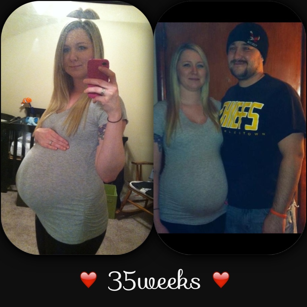 36 weeks w/ baby # 3. My shirts are getting too short but I refuse to buy more with less than 3 weeks to go. Also please excuse my puffy swollen face! You ladies look great