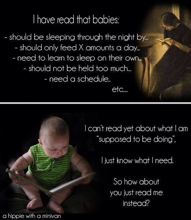 Haha I think it's cute. It is a good idea to read to inform yourself in general, but you should "read" cues from your baby most importantly.