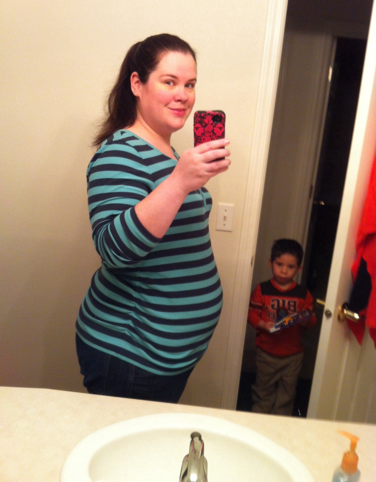 An outtake from our family picture attempt this weekend... I like that this one shows my bump.