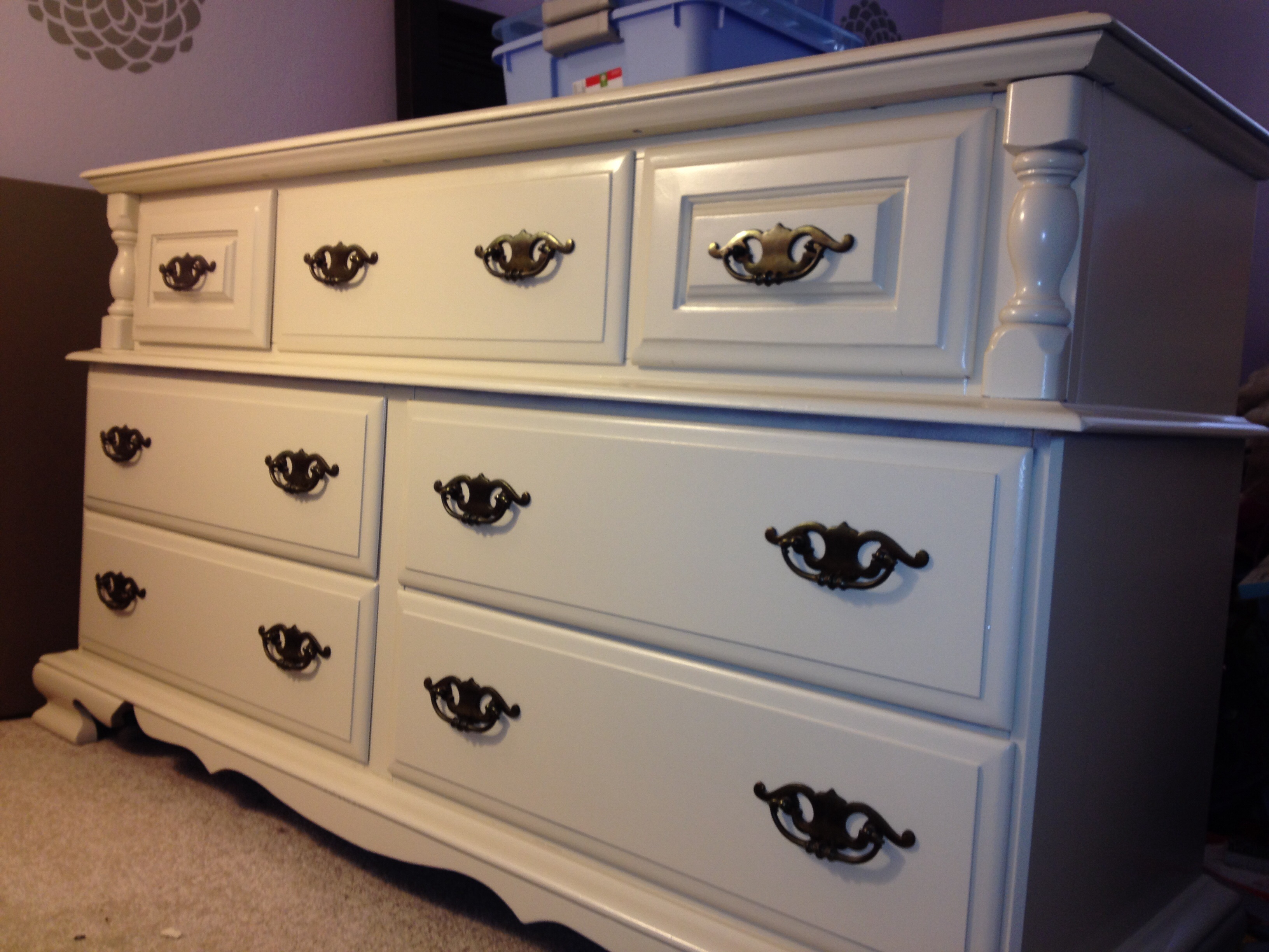 • @ImnAtari Got the dresser! It's hulking in our soon-to-be-nursery amid all the holiday storage detritus. I love it! The thing is a beast! The refinishing the seller did is awesome, and so happy he kept the original vintage hardware. Although I may still change them out...have to see what Anthro has by way of drawer pulls. Our first nursery purchase! Now to get the decals off the walls and paint.