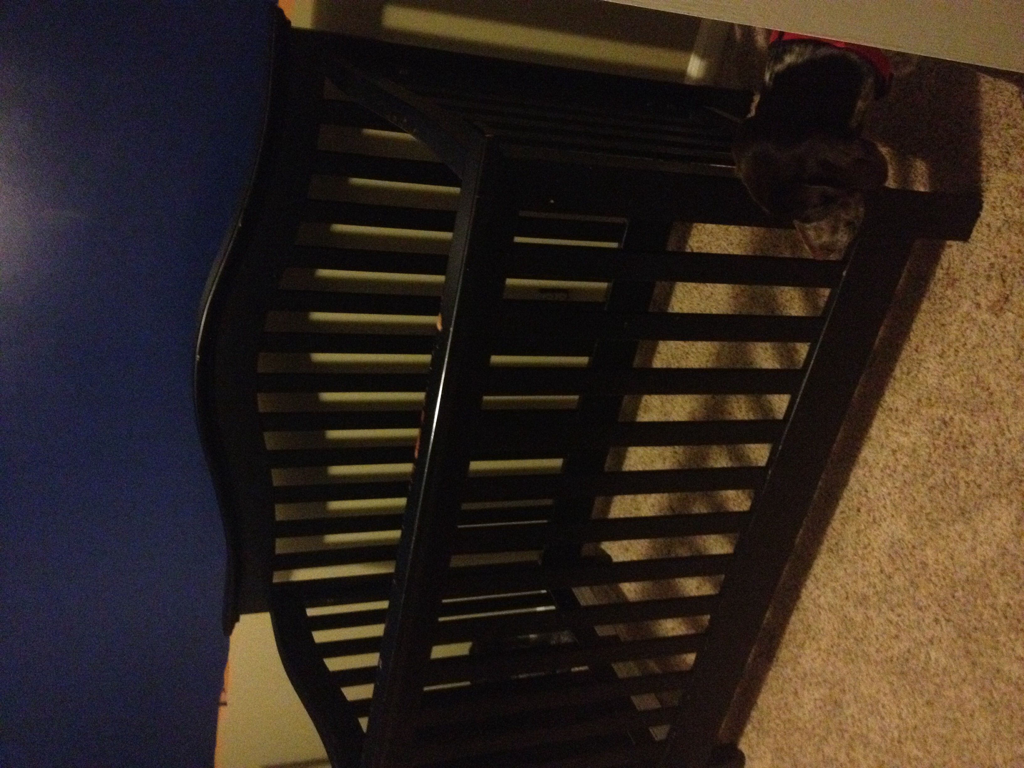 Got the crib! It definitely needs touching up but that's okay because I planned to repaint the furniture that's in there to match anyways. DH was so excited he put it together right away.