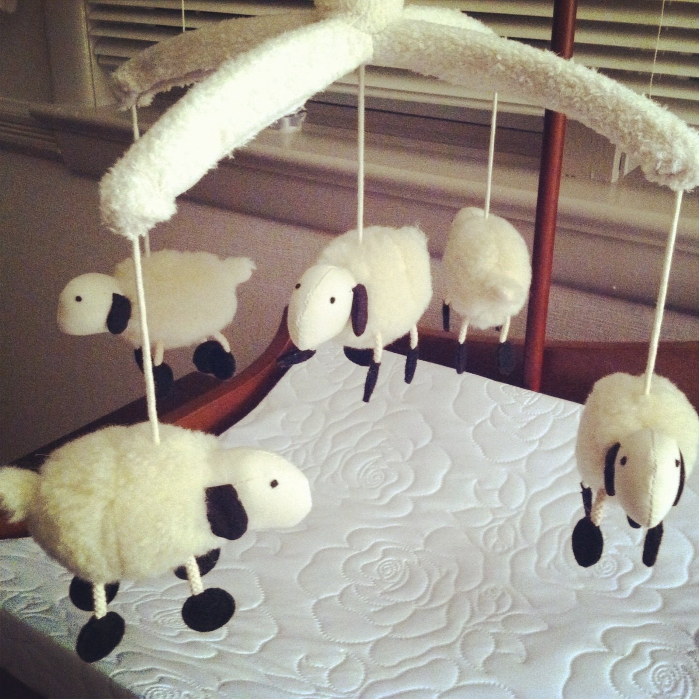 I can't stop looking at the little lambs on LO's mobile. The cuteness is sucking me in!! (Don't fret ladies, it's just propped up over the changer while I wait for my husband to screw it into the crib.)