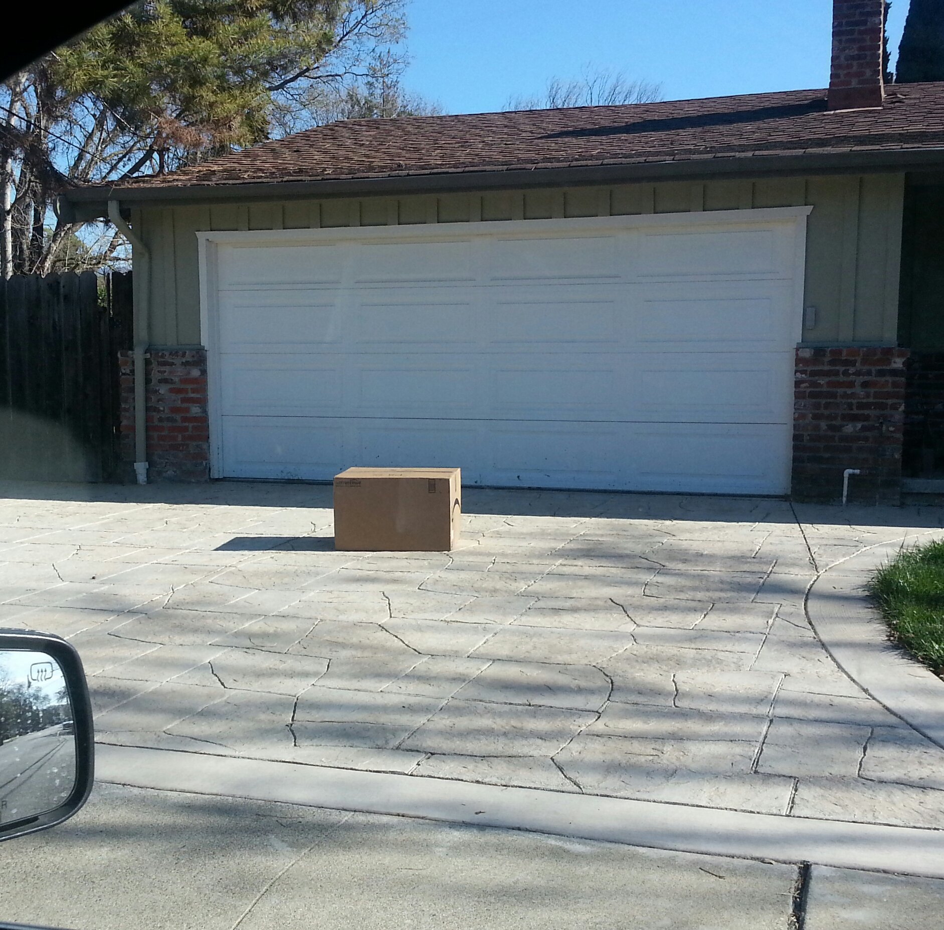 In defense of the delivery driver, it's possible that he thought leaving it on the front step might be missed by someone pulling in (and presumably entering the house from) their garage.  Still, right in the middle of the driveway is uncalled for.  They could've left it up by the corner of the garage door. x.x