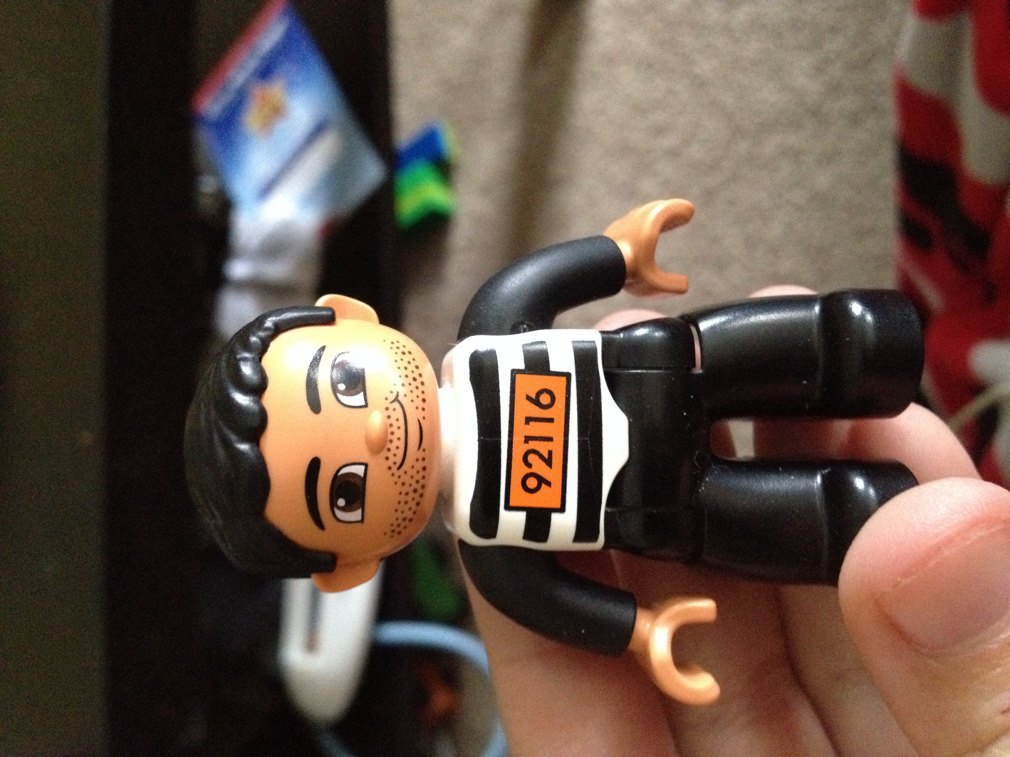 Just noticed this Lego in my sons collection and I'm so confused where he got a prisoner Lego man? We have circus sets and supermarket and things like that, where does this guy fit in? Is he an escapee?