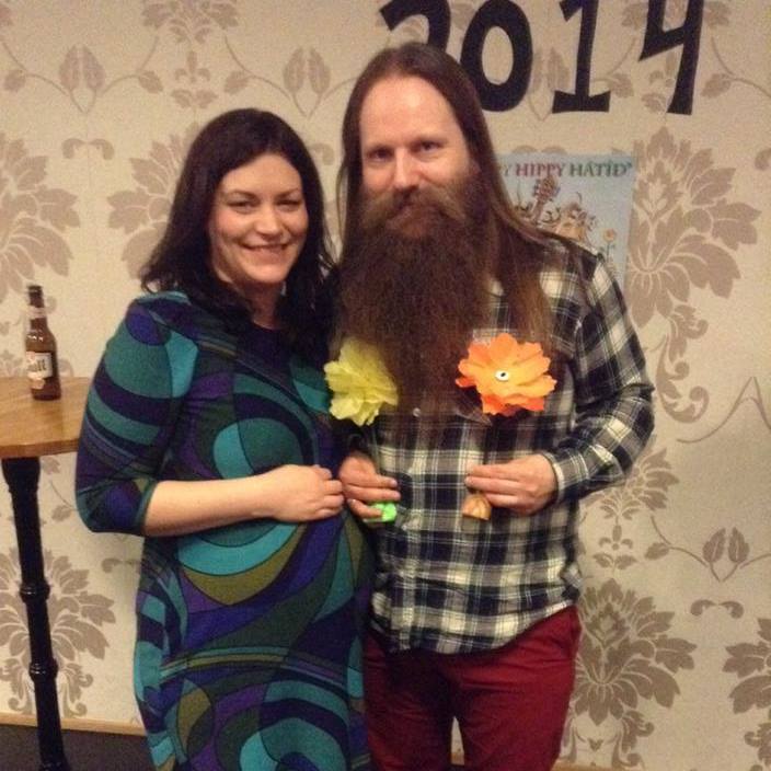 Also AW DH and I's picture from my orchestra's yearly party last night. They always have themes, this one was happy hippies. (At least, that's the best translation.) My friend taking the picture cut out what was said above the 2014 (*year party*), so, its not a new years photo. hehe.
