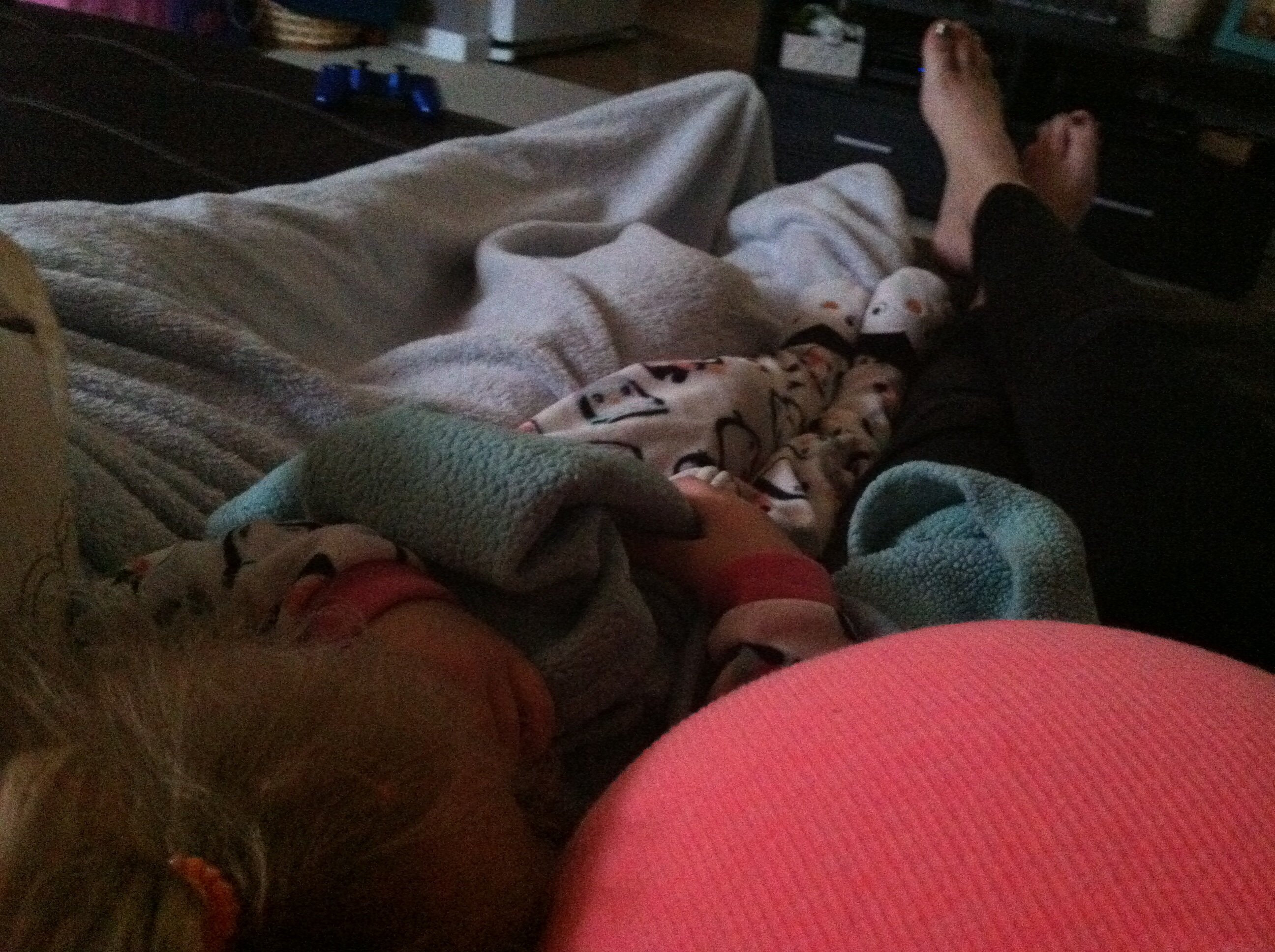 Whoever asked how to do pregnancy with other kids the key is playing on the floor a lot they don't really care if your playing just that your on the floor and then snuggle with elmo on TV. Bumps make the best pillows!