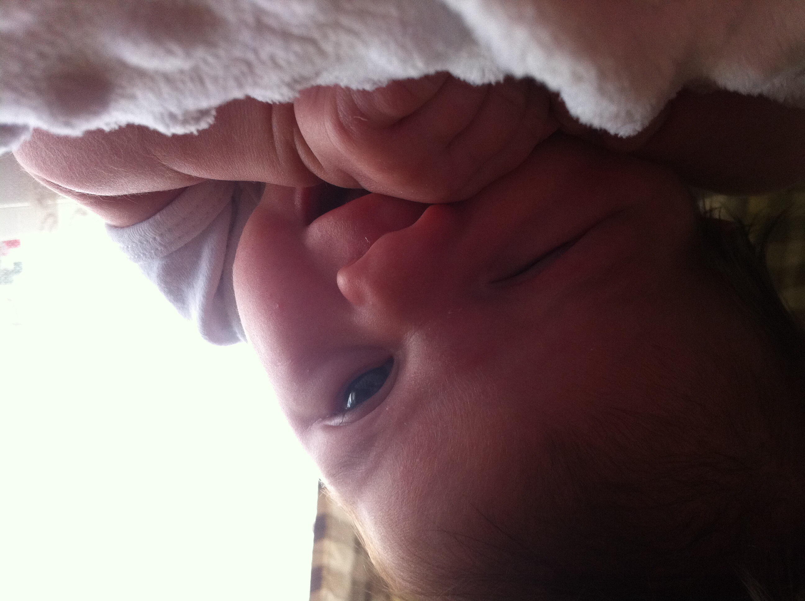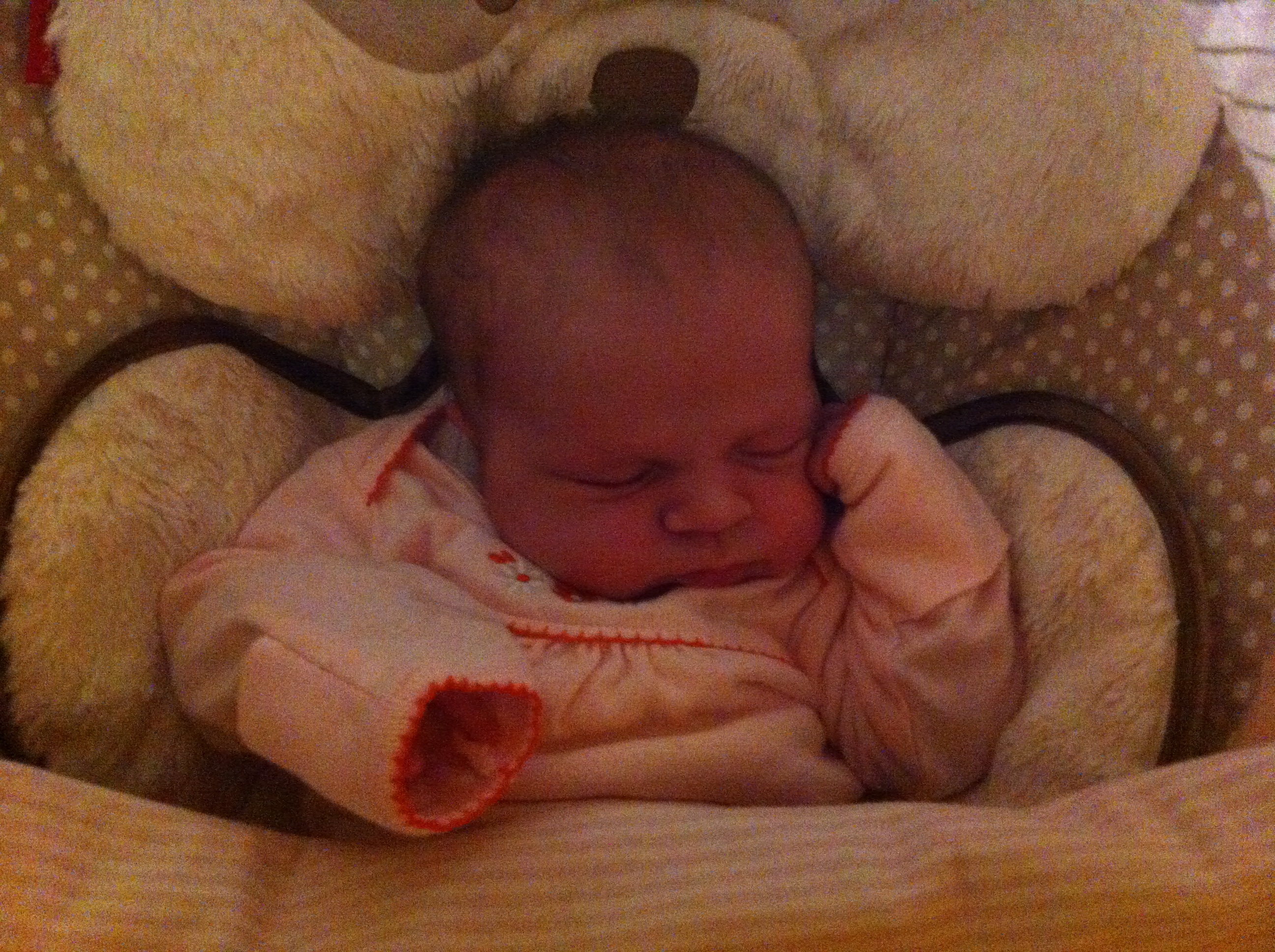 We had a busy day today. Lots of baby wearing and Penny slept through pretty much everything. Ride to the bank, 2 hours meeting with our financial advisor in her k'tan, then to the medical clinic so DH could get his staples out from his surgery, she fed in the vehicle while we waited for him, then off to several show homes in her k'tan again. She instantly falls asleep in that thing! But now we're paying for it! She's been wide awake for like 4 hours and there is no end in sight.