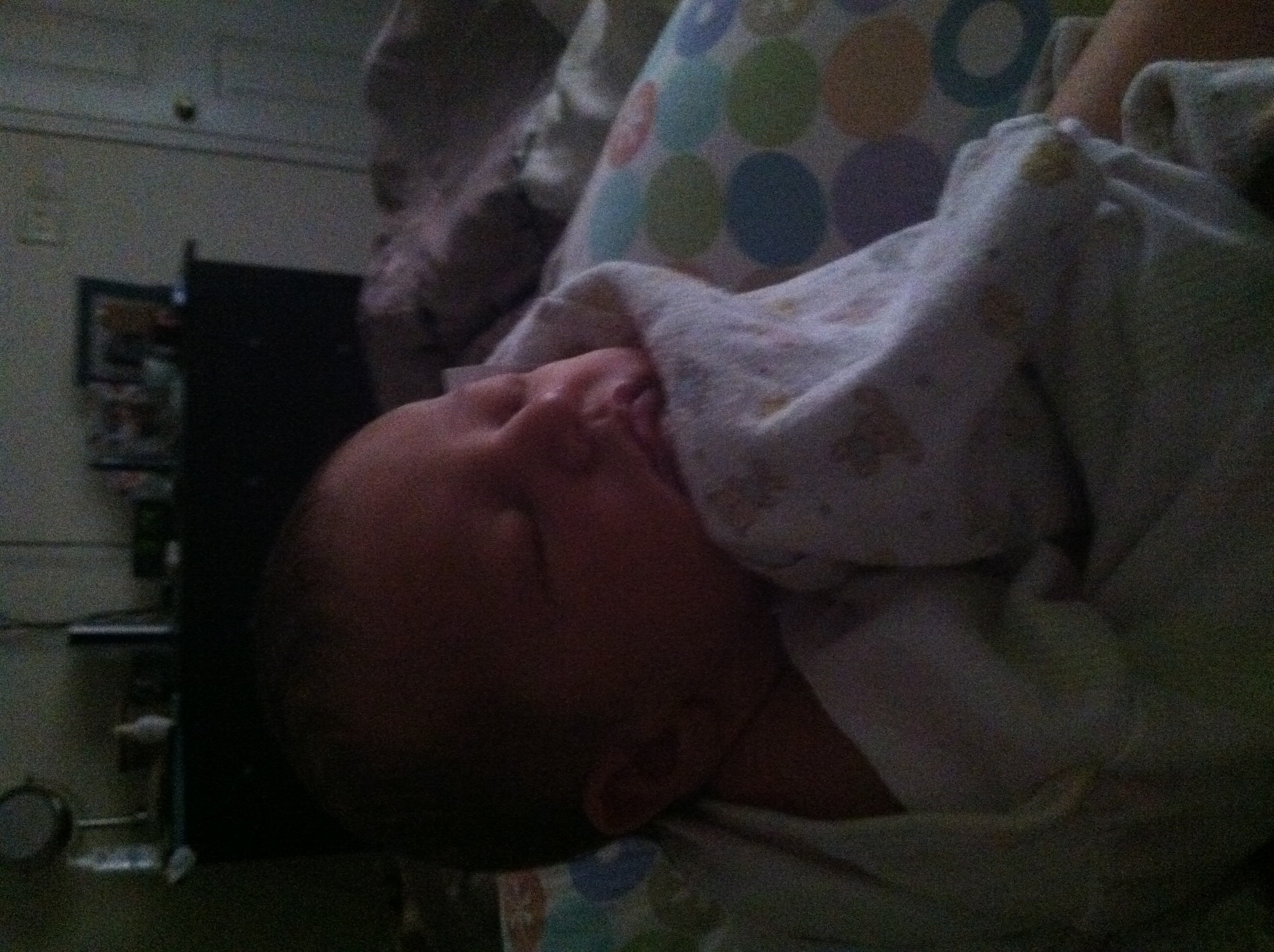 I let DH take the first shift, then sent him to bed around 1. He has to work tomorrow and I had gotten an hour or so of sleep so I tagged him out. DS is cluster feeding and being super clingy. I knew I'd regret letting him sleep most of yesterday, but I needed the sleep too!!
