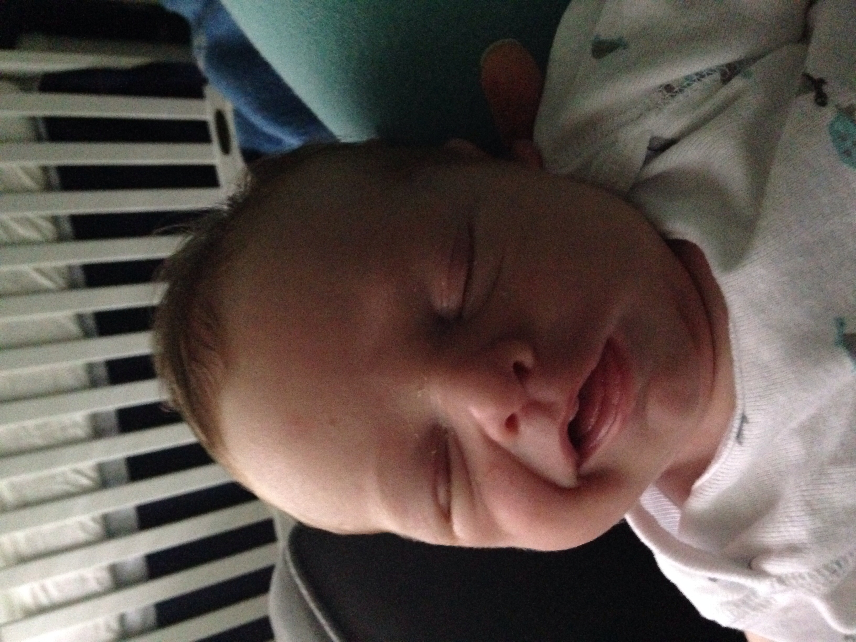 So Andrew had to get blood taken today to test his thyroid. Receptionist said "it's a rare test for infants" ... Thanks- way to make this FTM feel worse. Only to have to hold him down while he was screaming and getting a whole vial taken from his tiny foot. He screamed, I cried. Oh! And I cut his pinkie in attempts of nail trimming. This poor kid. (Pic: Holding my moms hand before the needle). Also showing a happy pic after breakfast