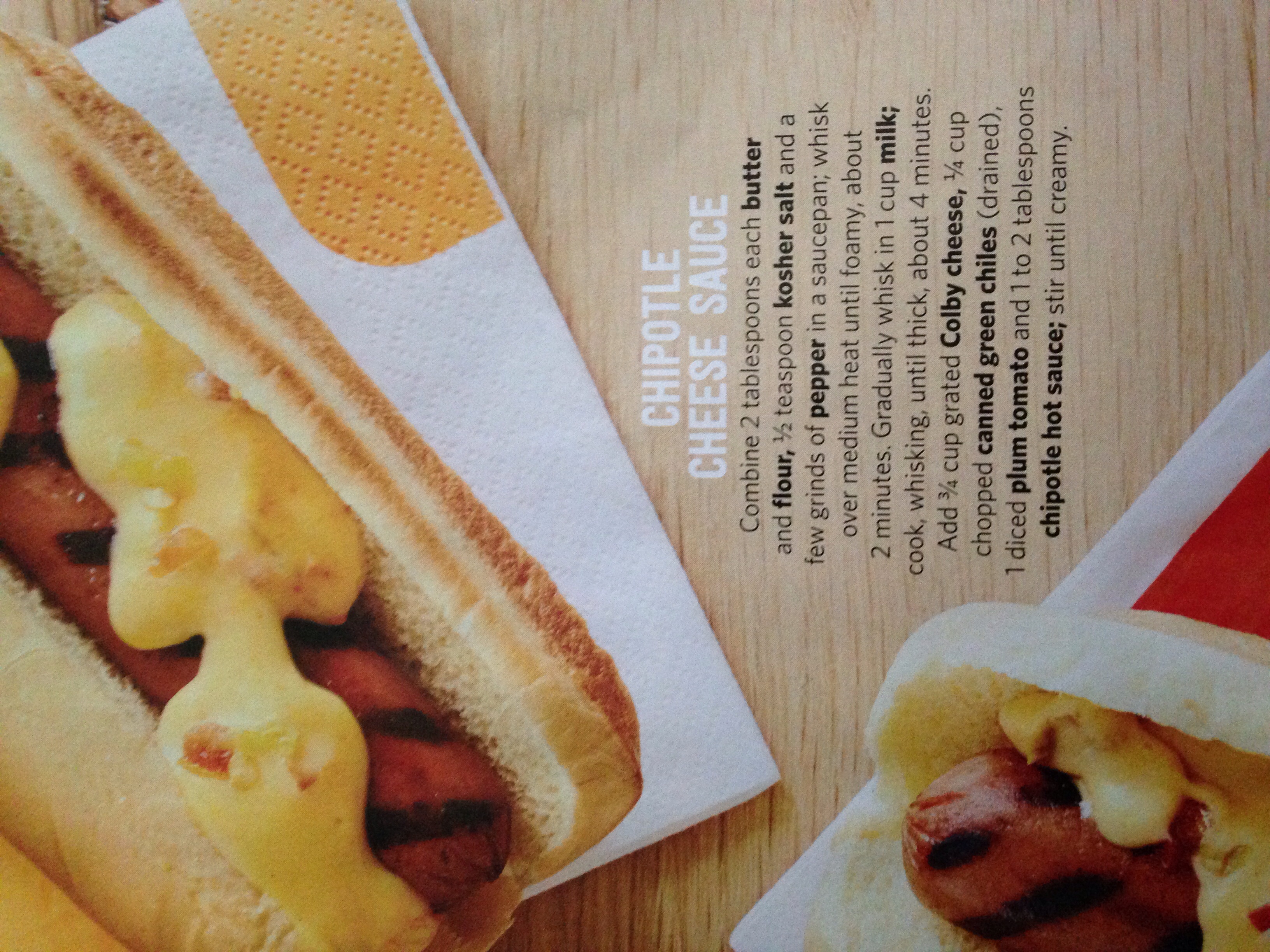 I am assuming you probably don't love handling meat--- so some easy ideas: chicken kebabs with veggies (season with salt, pepper, curry and garlic powder); or just burgers and hot dogs. I would pass on box burgers and just mix ground beef with salt, pepper, and minced garlic! Just got my food network magazine and am attaching pic of cheese sauce recipe to serve on either boca burgers or beef!