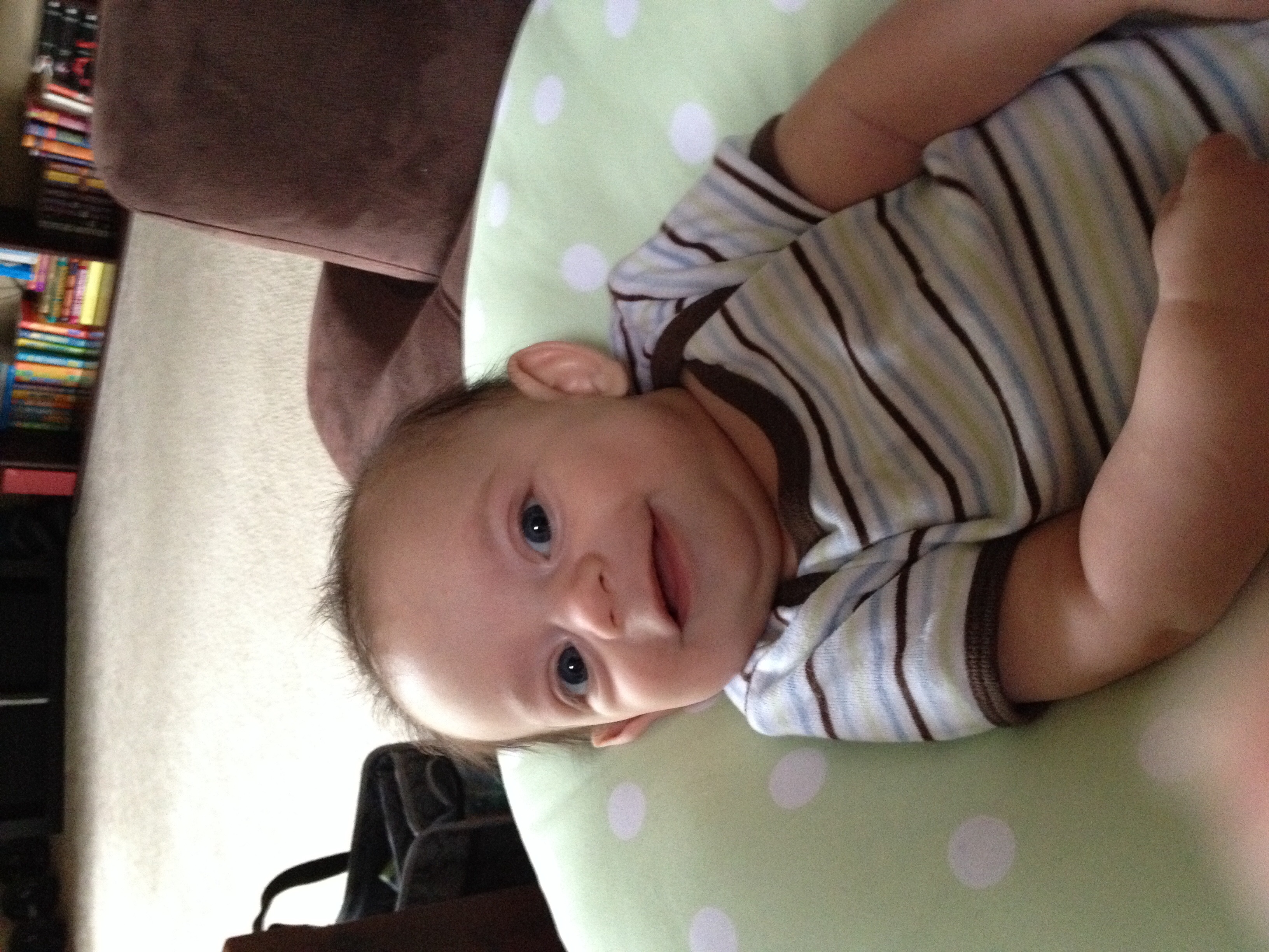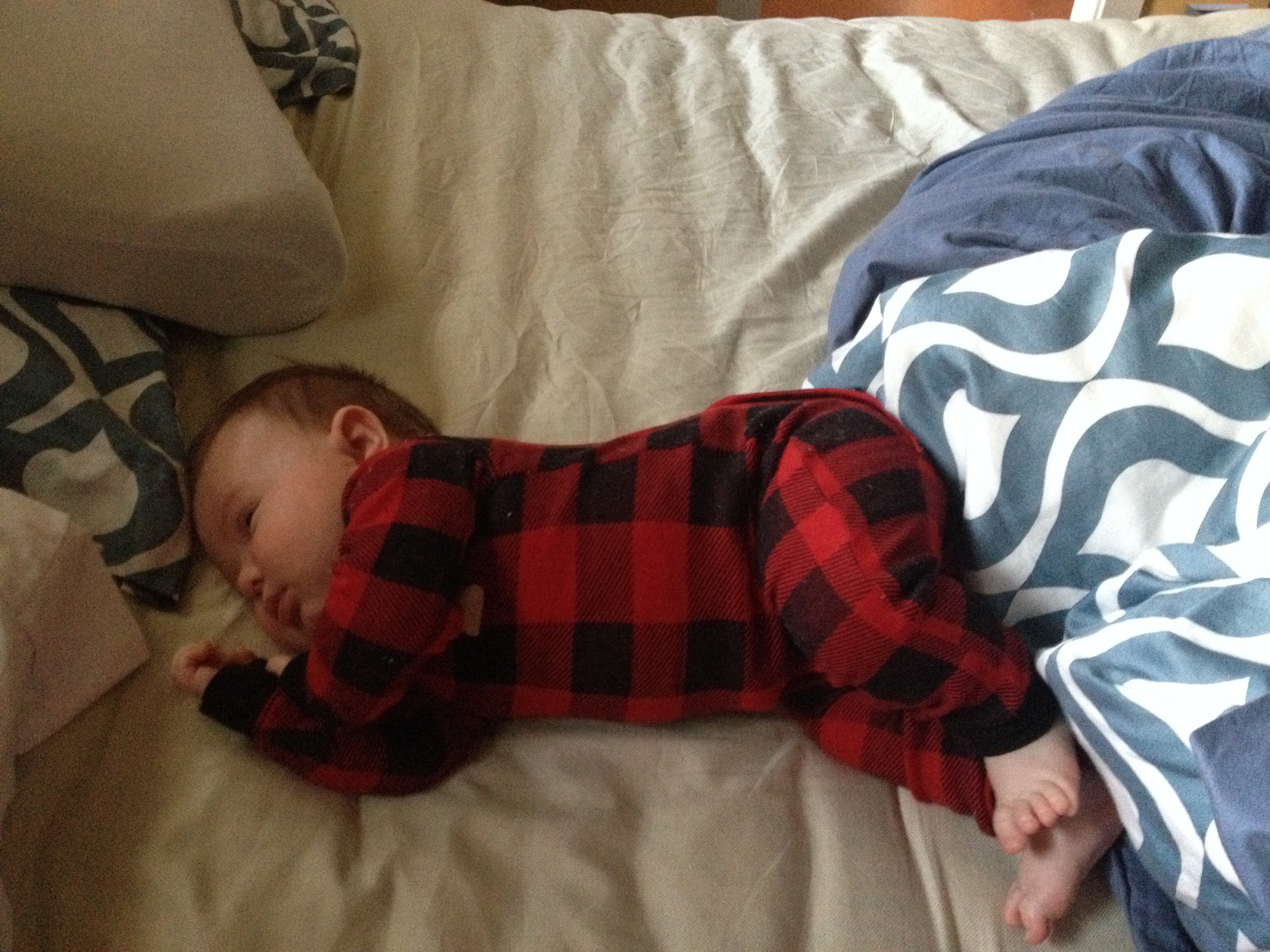 He's freshly fed, and I'm freshly pumped. I may out us back in bed for morning cuddles coffee and the news and see what happens.