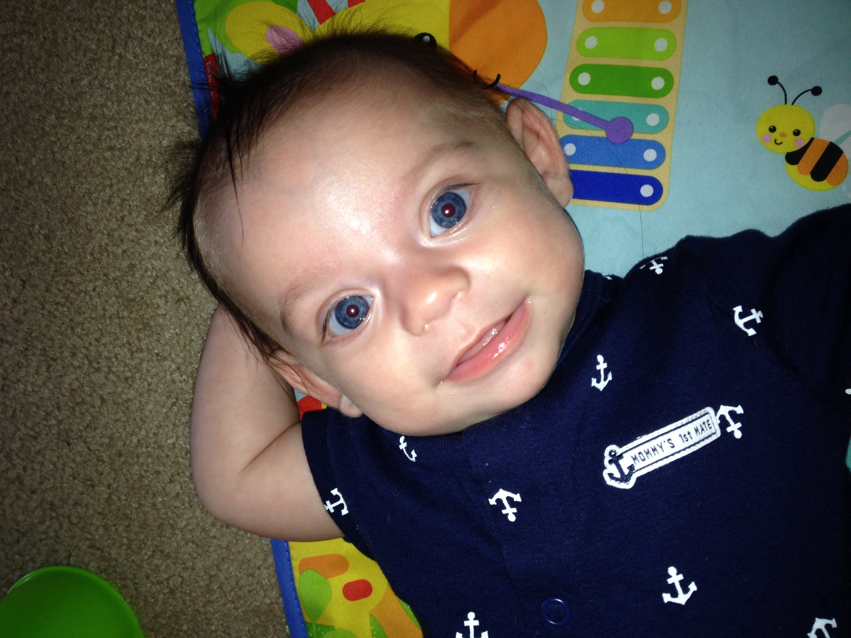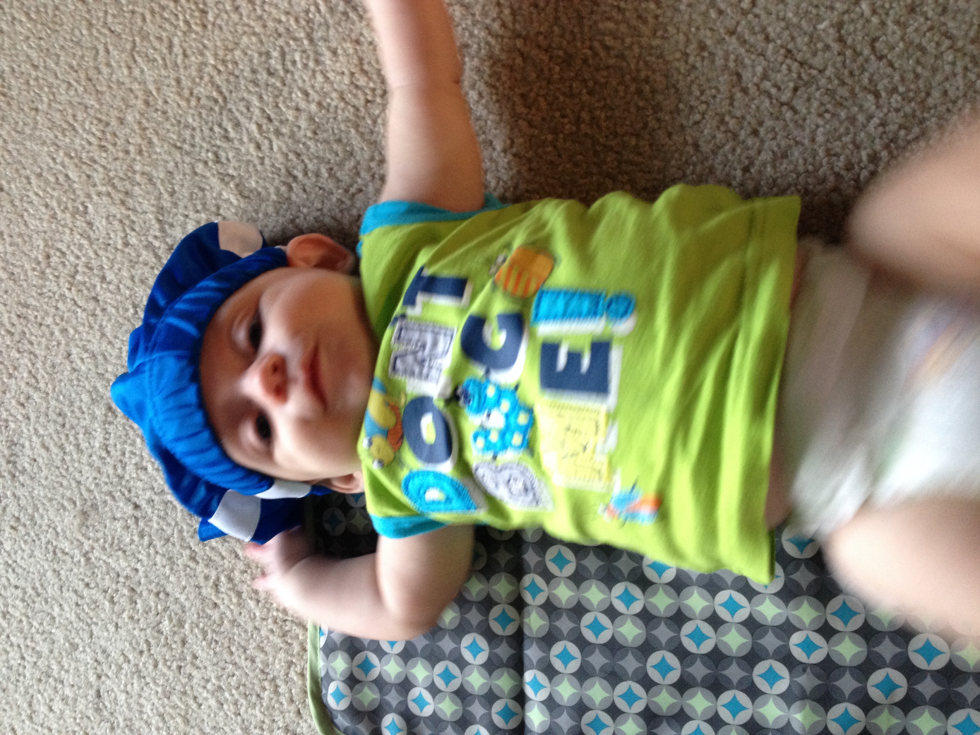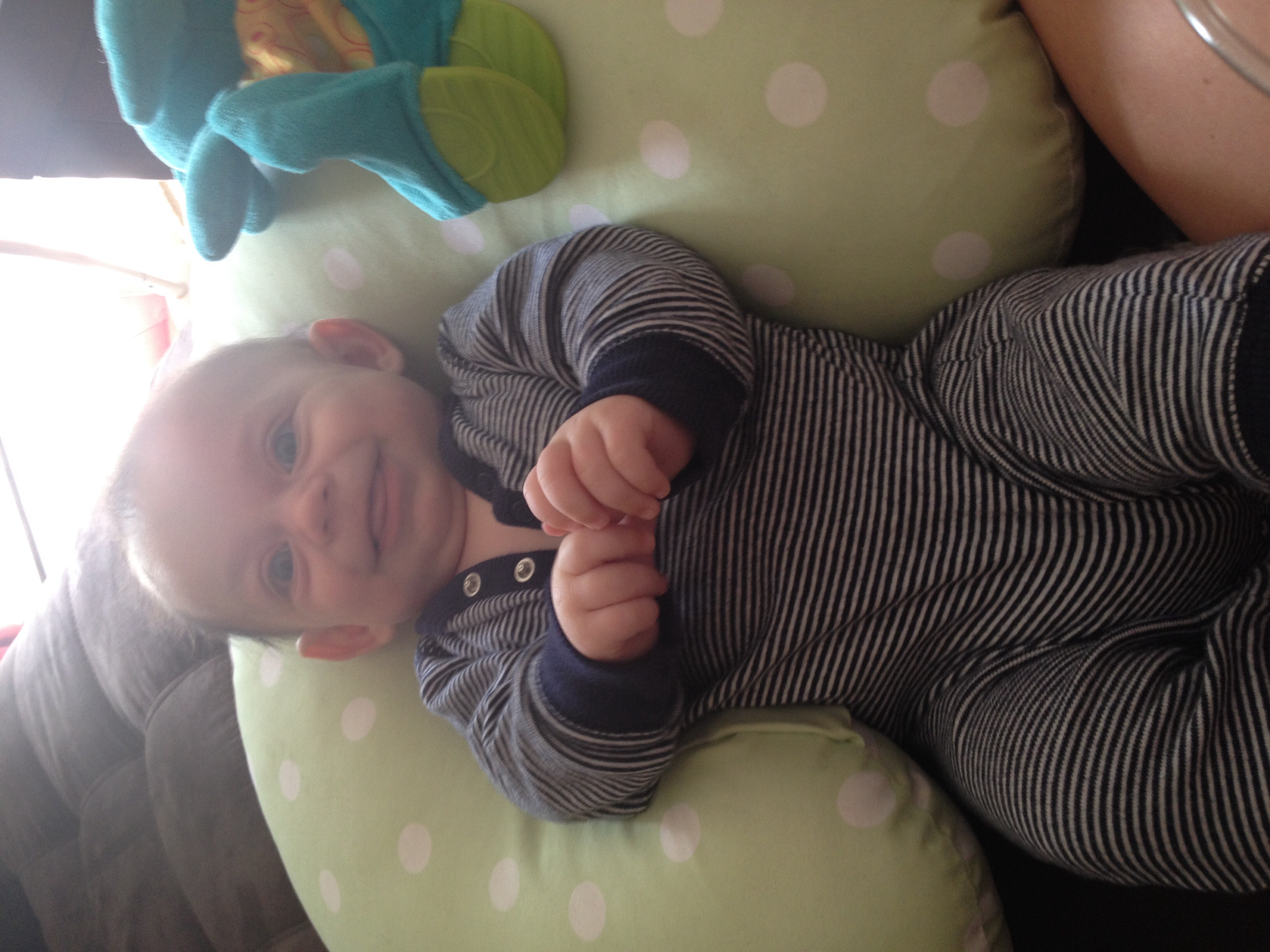 My little dude's excited to be hanging out with two cute girls today! He doesn't know it yet, because he's still asleep, but he is. ;)