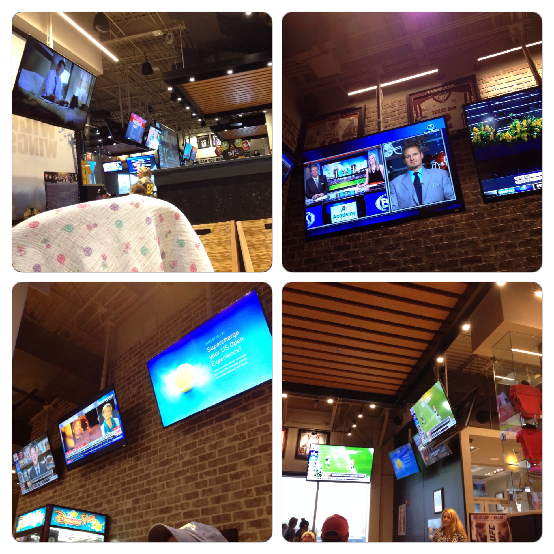 If you're trying to avoid screen time for your baby, do NOT, I repeat: DO NOT take them to Buffalo Wild Wings! There are tvs literally EV.ERY.WHERE. The last time I went to one was a couple years ago, and they had made 8-10 tvs? I've counted 24, and there are some I can't see. Twenty-freakin'-four! Ugh.