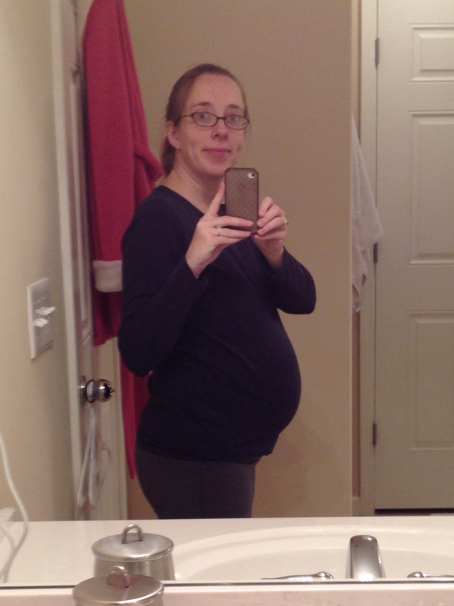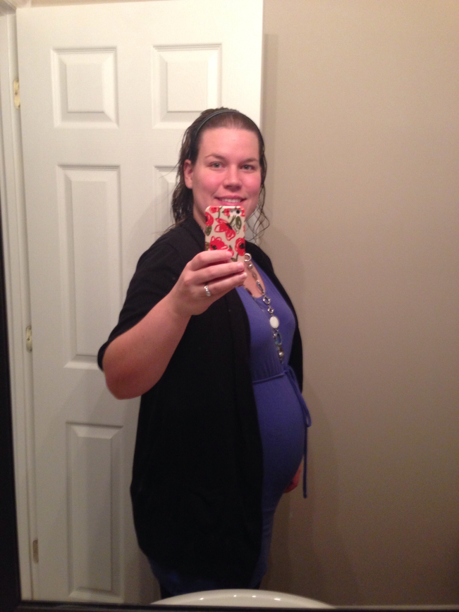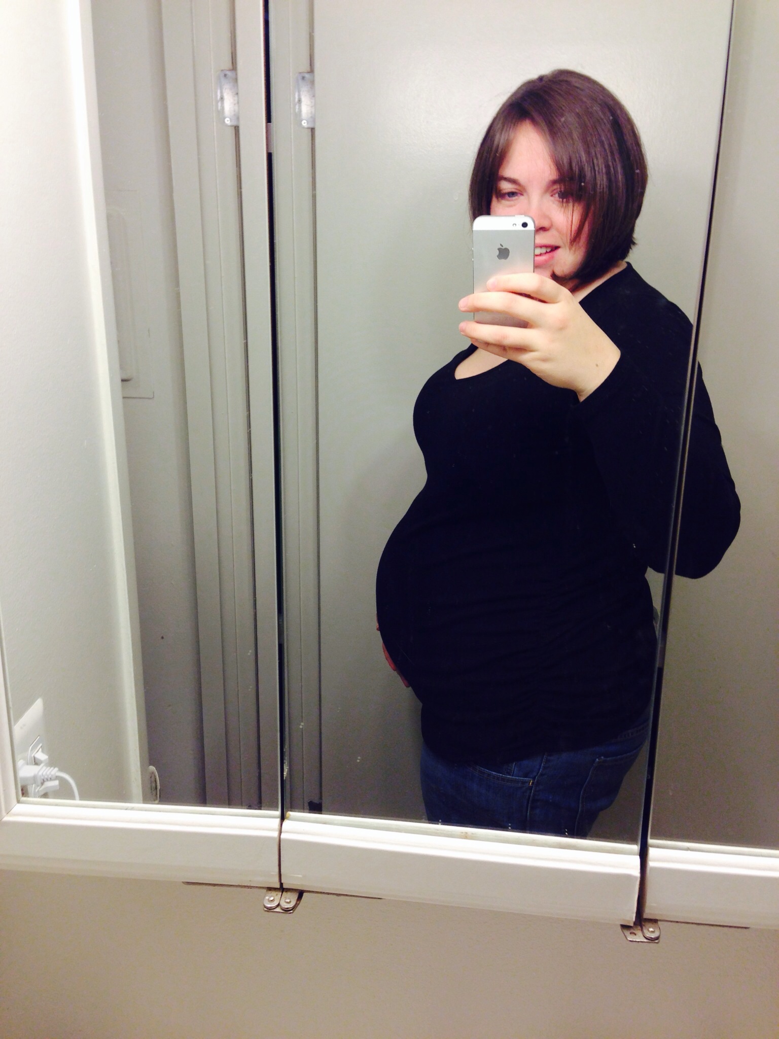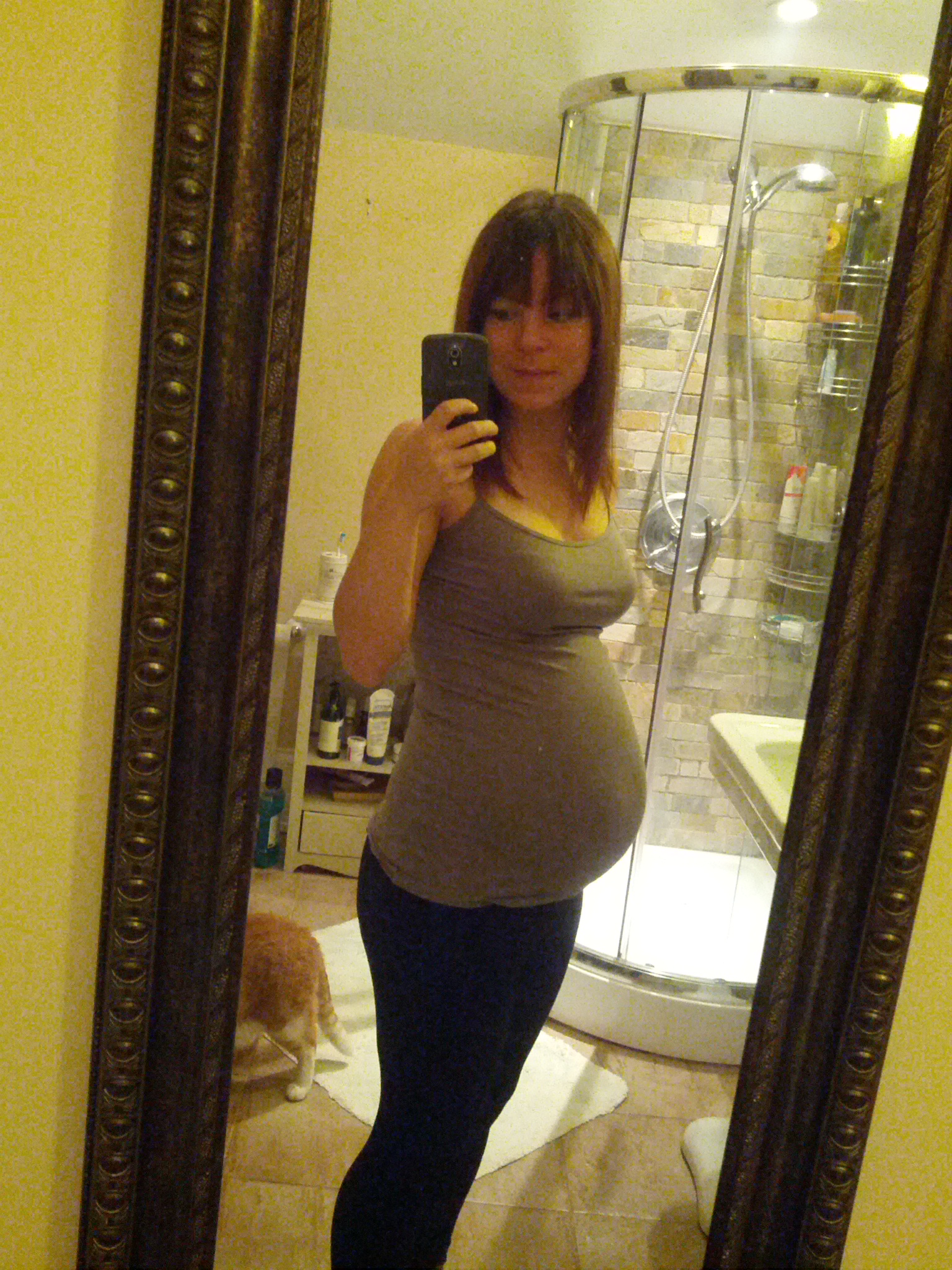Taken this morning at 28 weeks, 3 days. I've gained exactly the same amount of weight that I did at this point in my first pregnancy, but I'm measuring smaller and feeling a ton bigger. This kid is already feels really low.