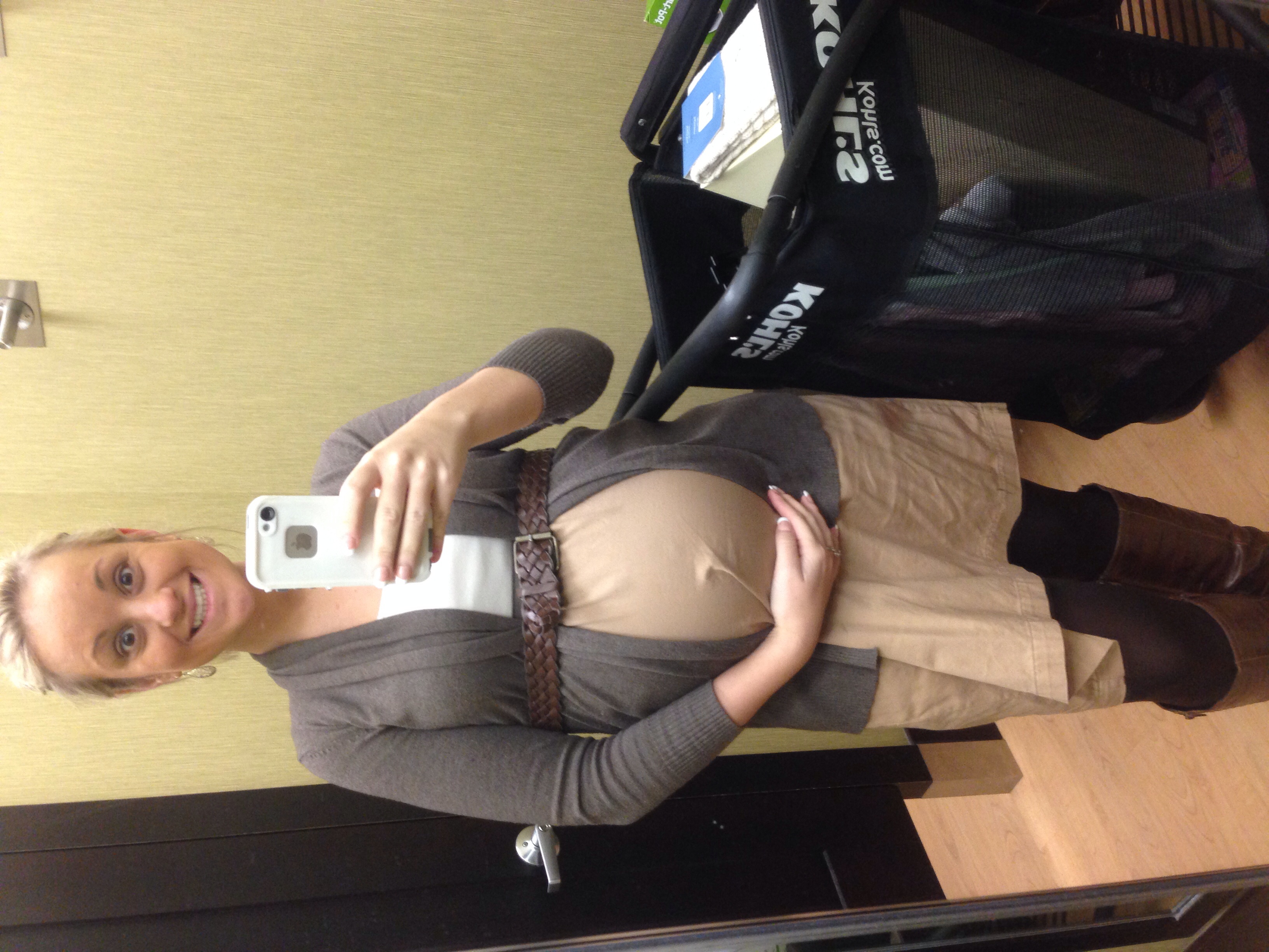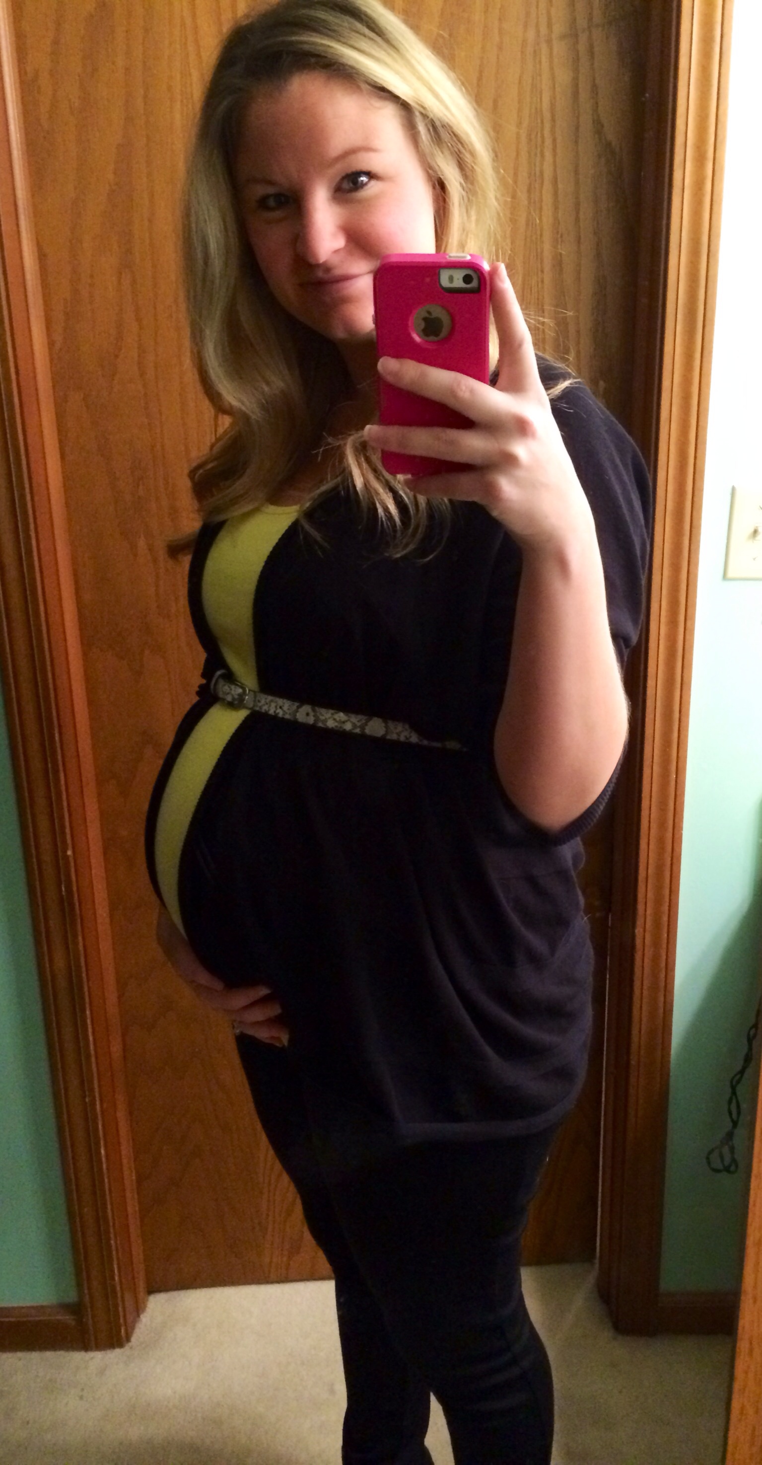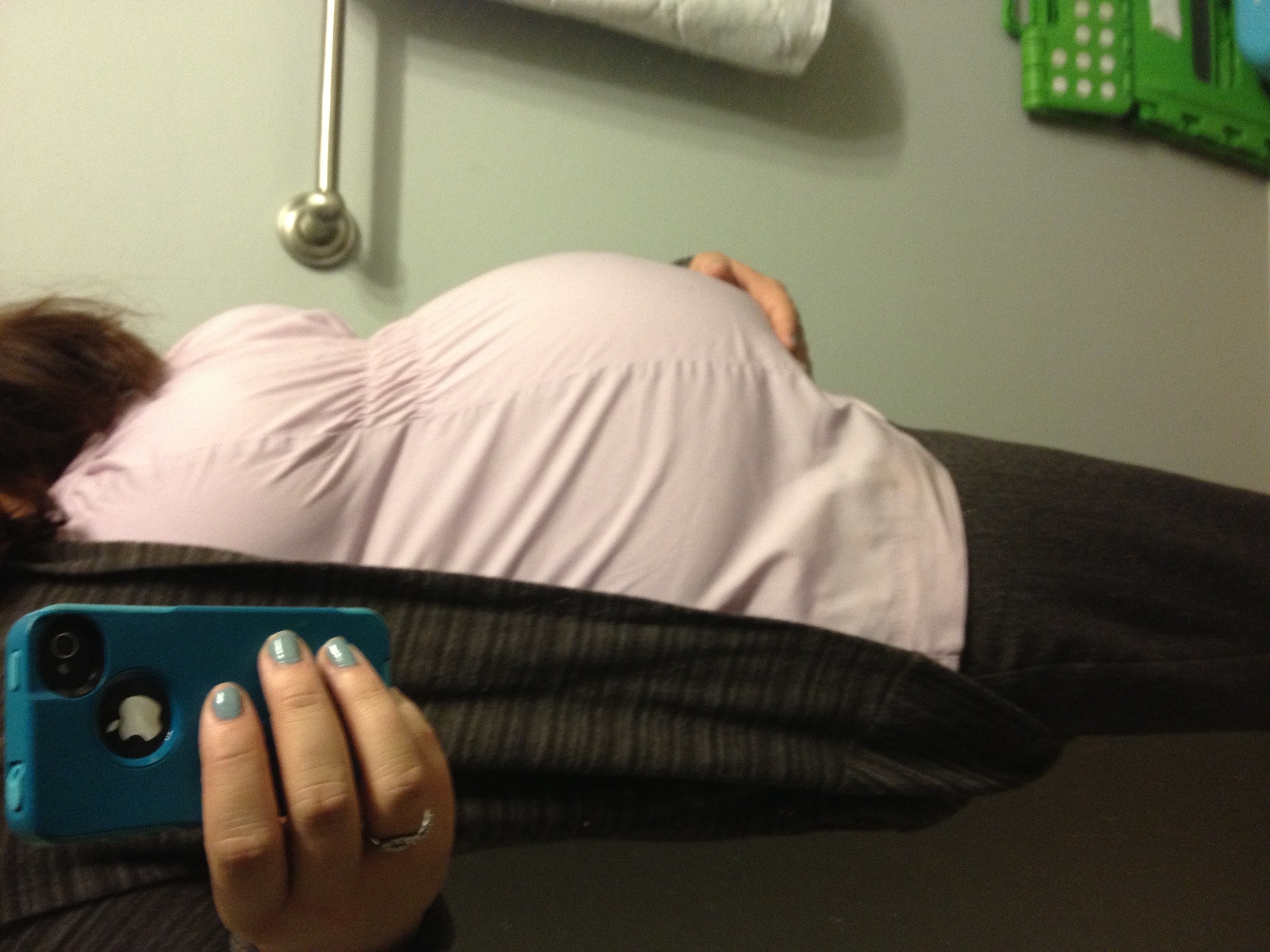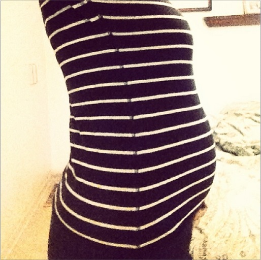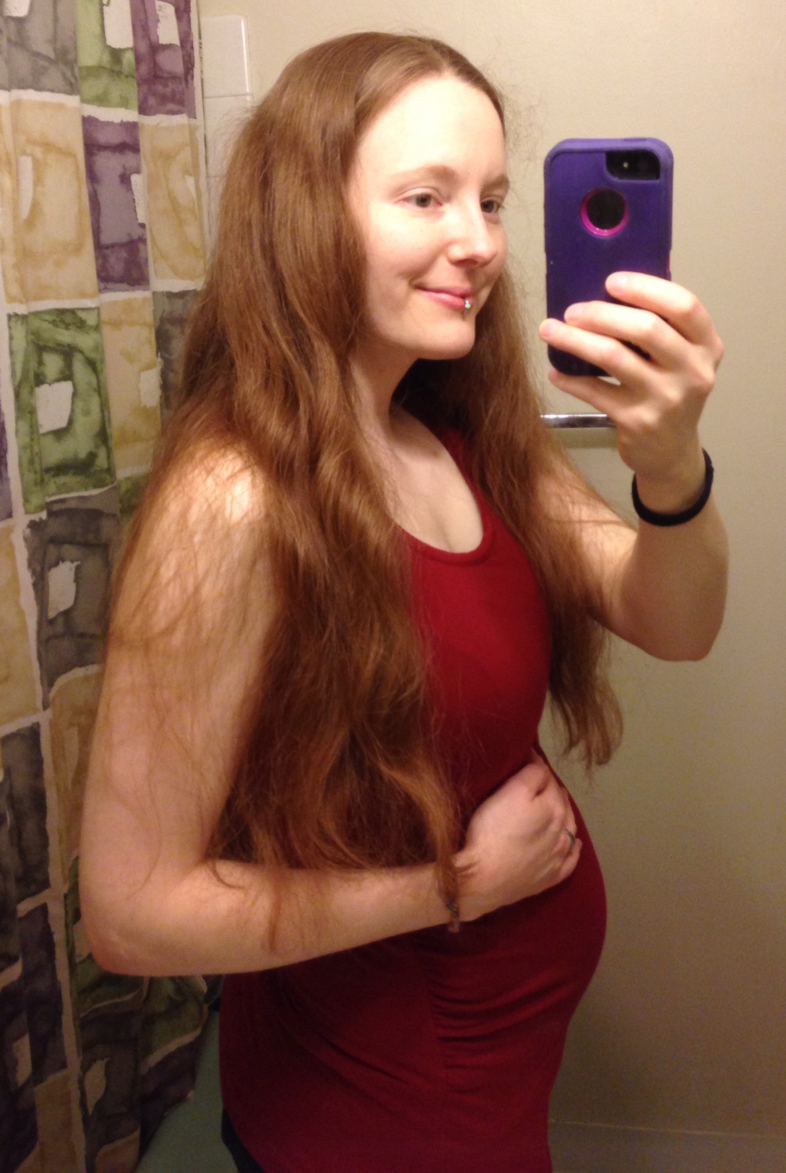 Taken this morning at 28 weeks, 3 days. I've gained exactly the same amount of weight that I did at this point in my first pregnancy, but I'm measuring smaller and feeling a ton bigger. This kid is already feels really low.
