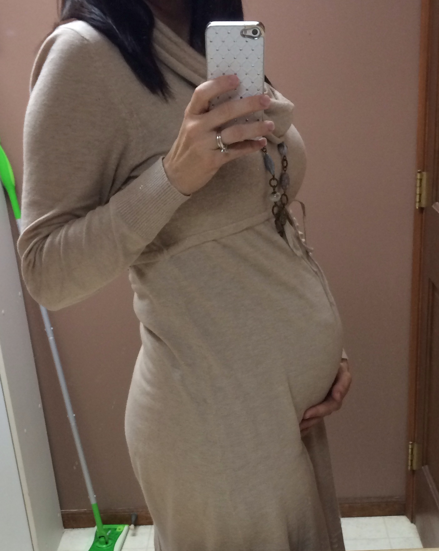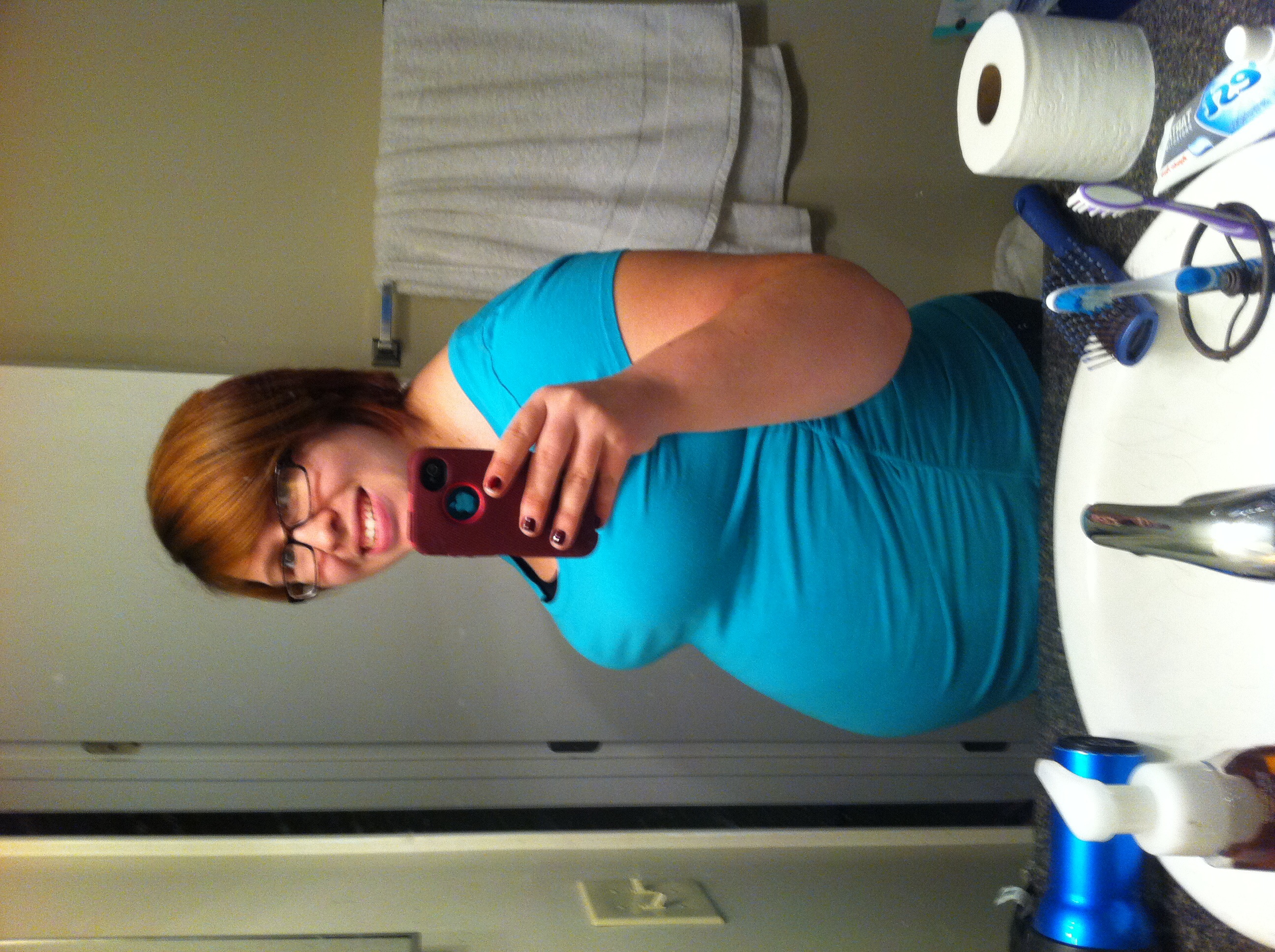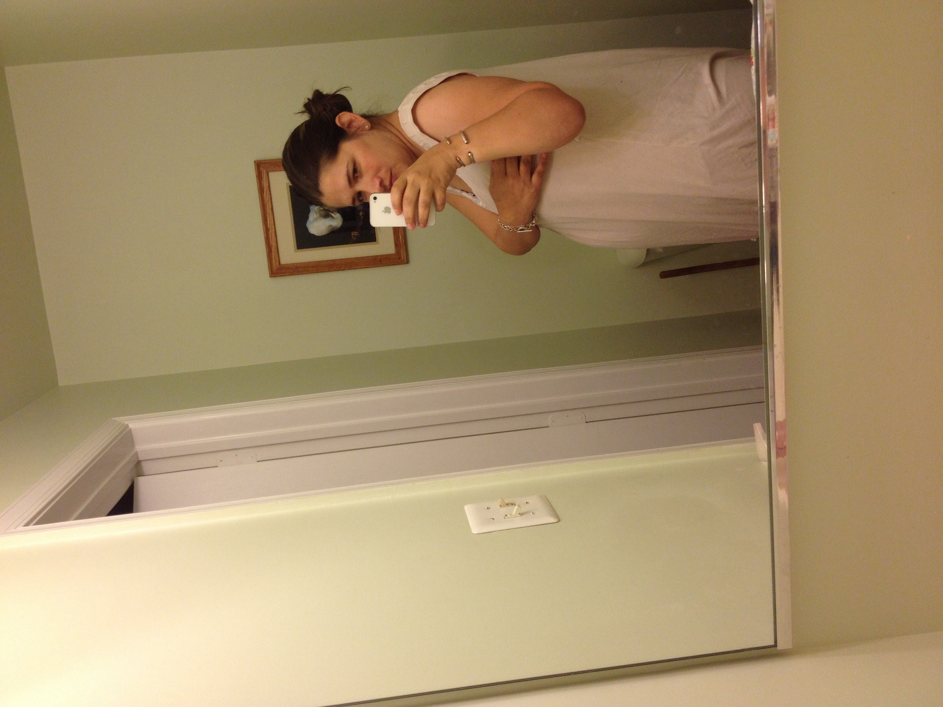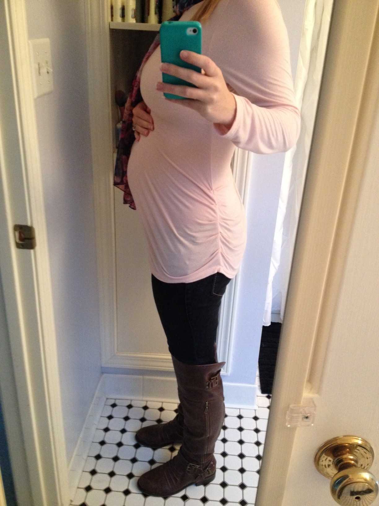 Taken this morning at 28 weeks, 3 days. I've gained exactly the same amount of weight that I did at this point in my first pregnancy, but I'm measuring smaller and feeling a ton bigger. This kid is already feels really low.