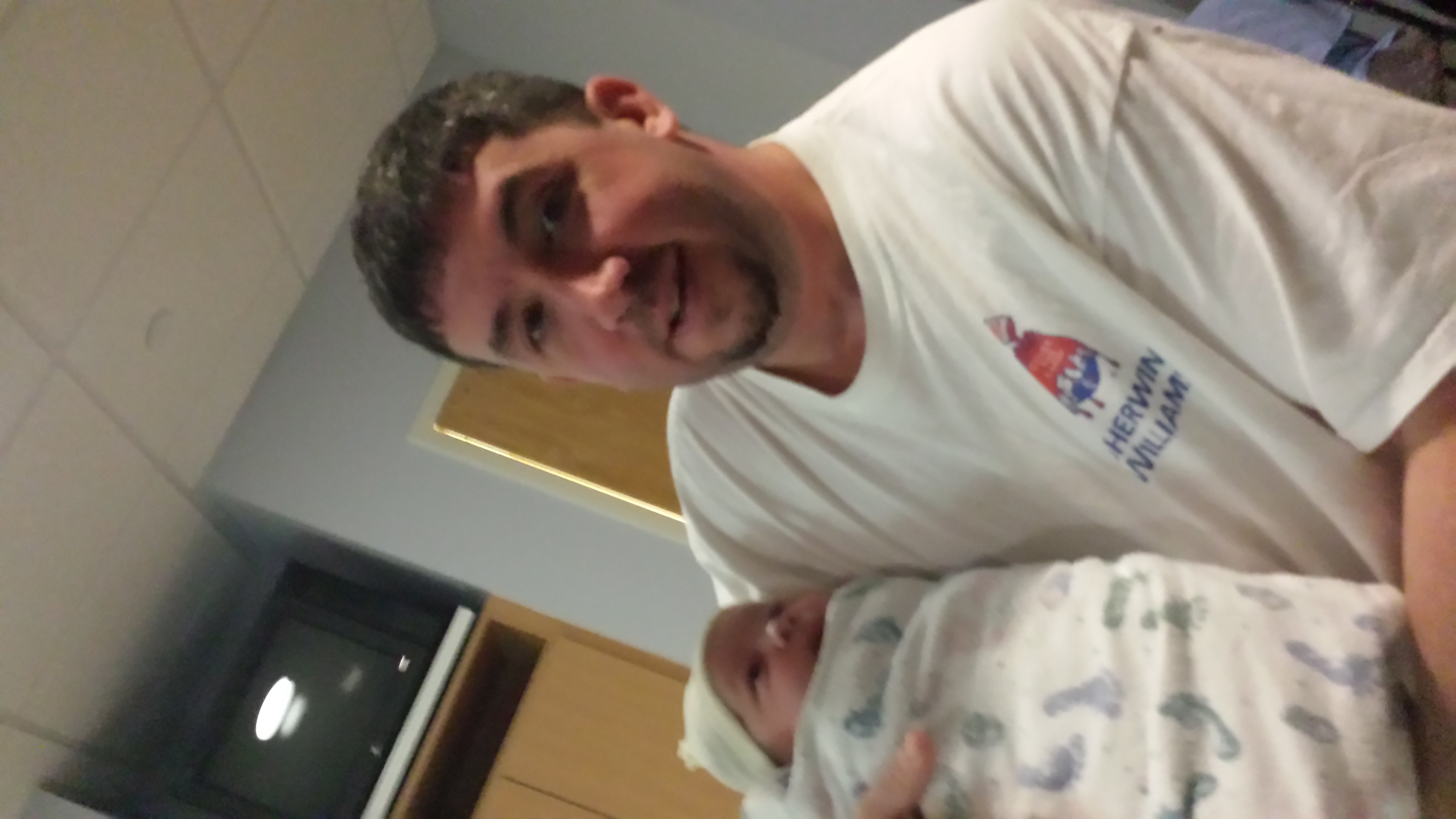 Your reward for suffering through all this: DH and LO. He has a full head of hair and dark eyes just like his daddy.