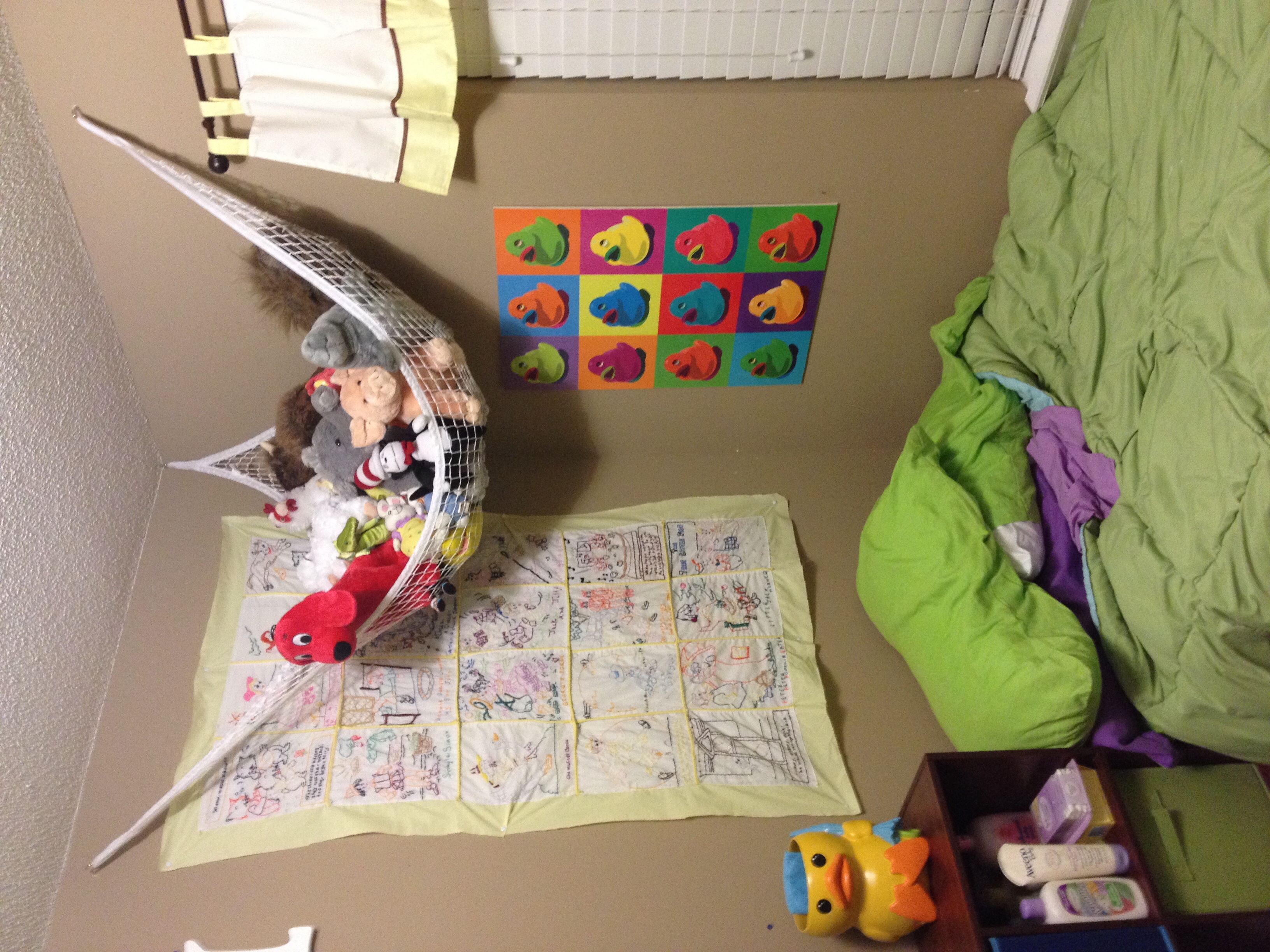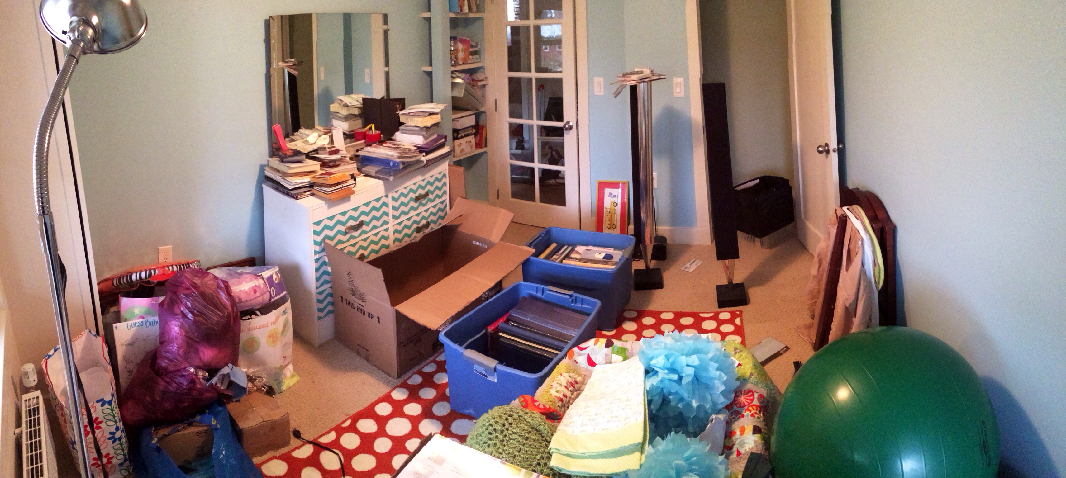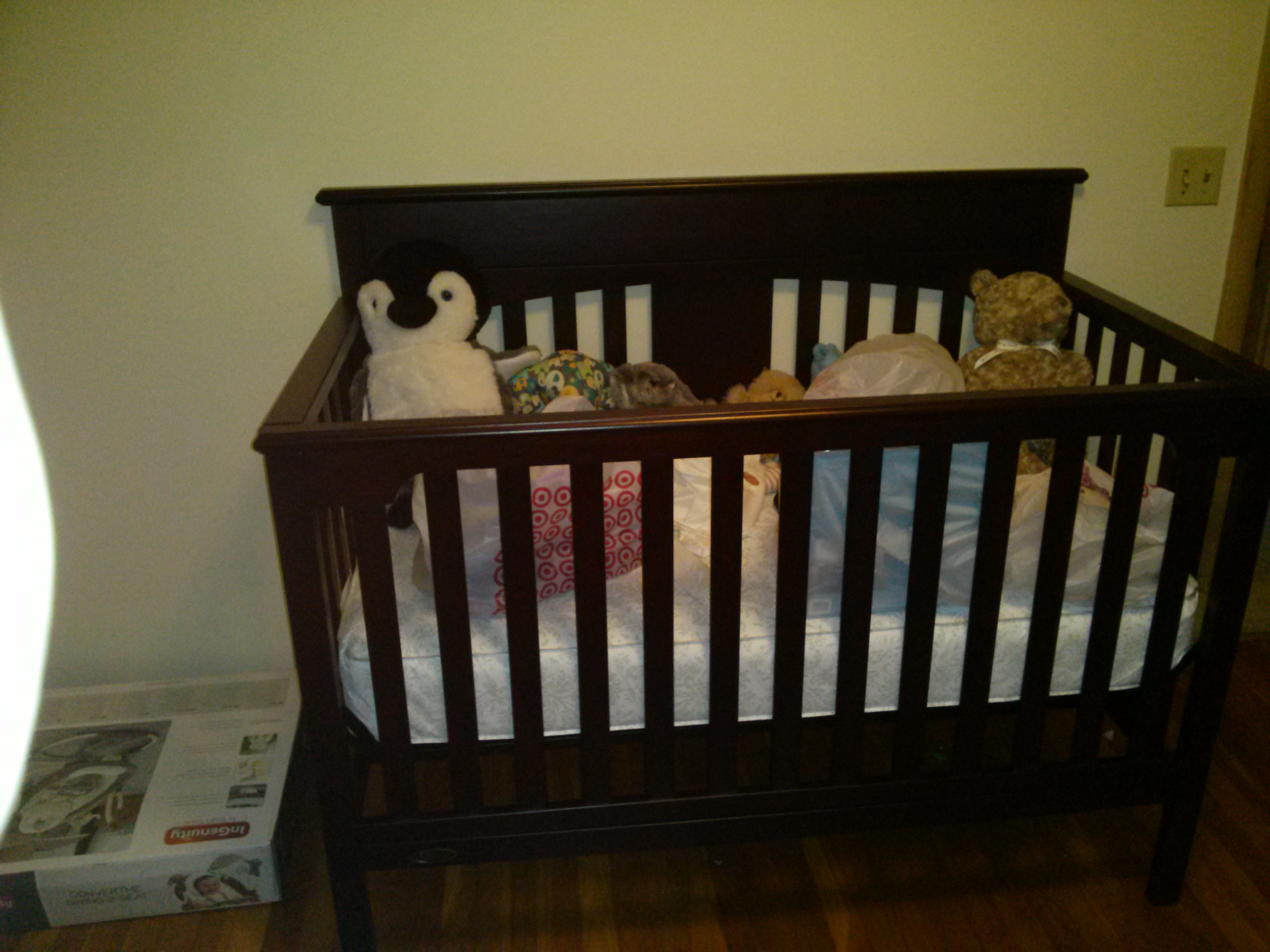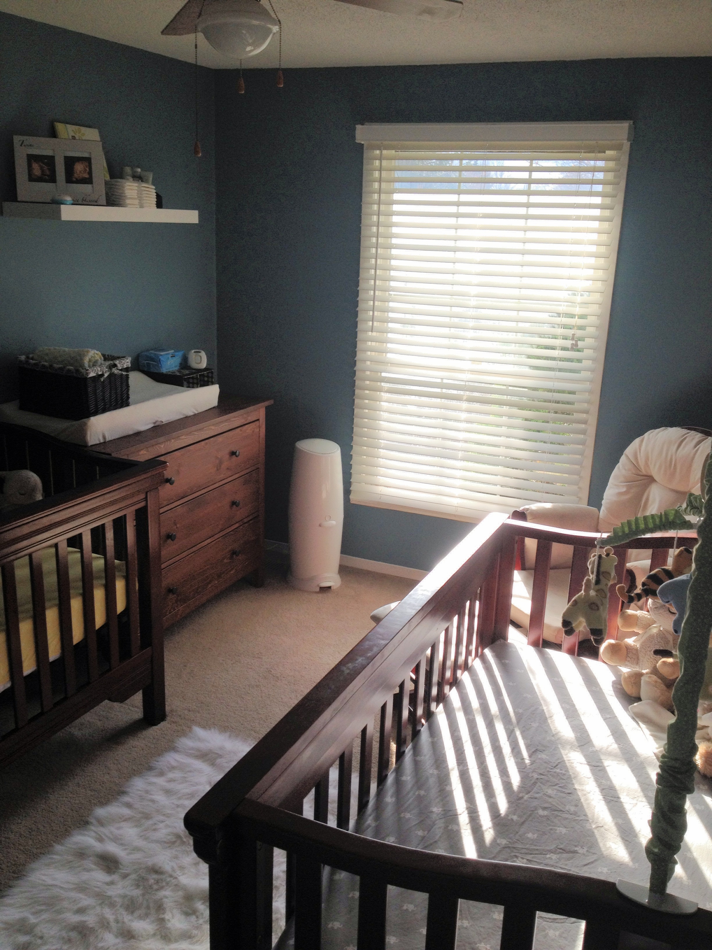 The picture frames aren't staying on the walls, and that purple drawer thing will be replaced with a bookcase. I still have a lot of decorating to do, and a glider to purchase, but progress is being made!