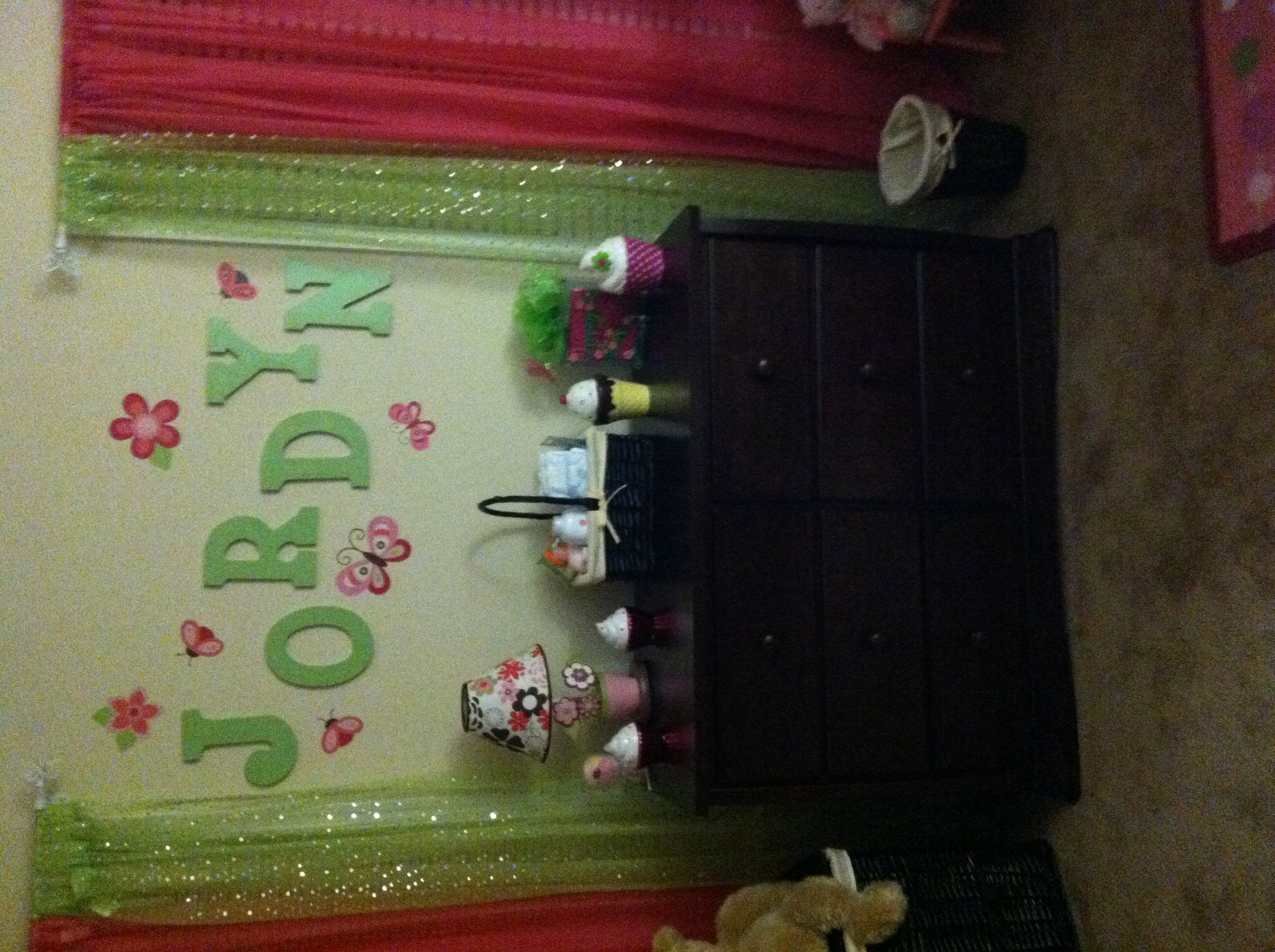I'm super jealous of all of y'all's crazy decorating skills. I hate base housing we're not allowed to paint and we've been on kind of a tight budget so we kind of have this 'garage sale chic' thing going on. At least baby will be taken care of