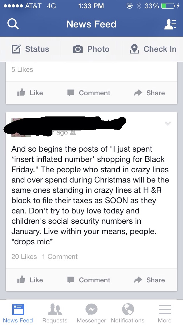 Um, what? Because she certainly knows the details of all of her Facebook friend's finances and tax situations...SMH.