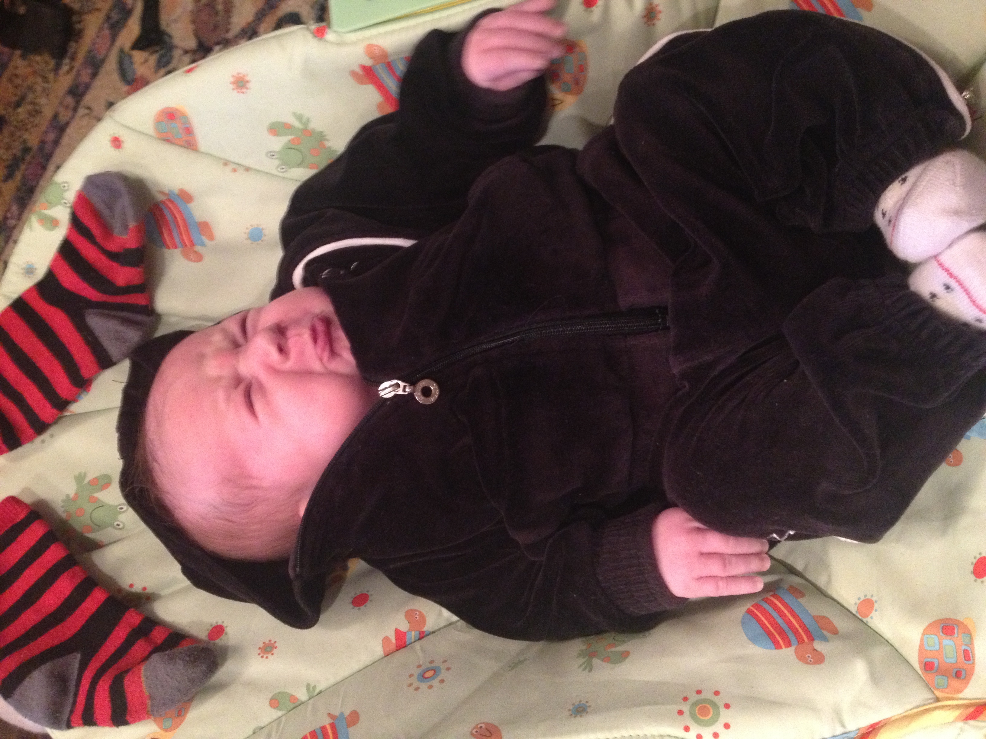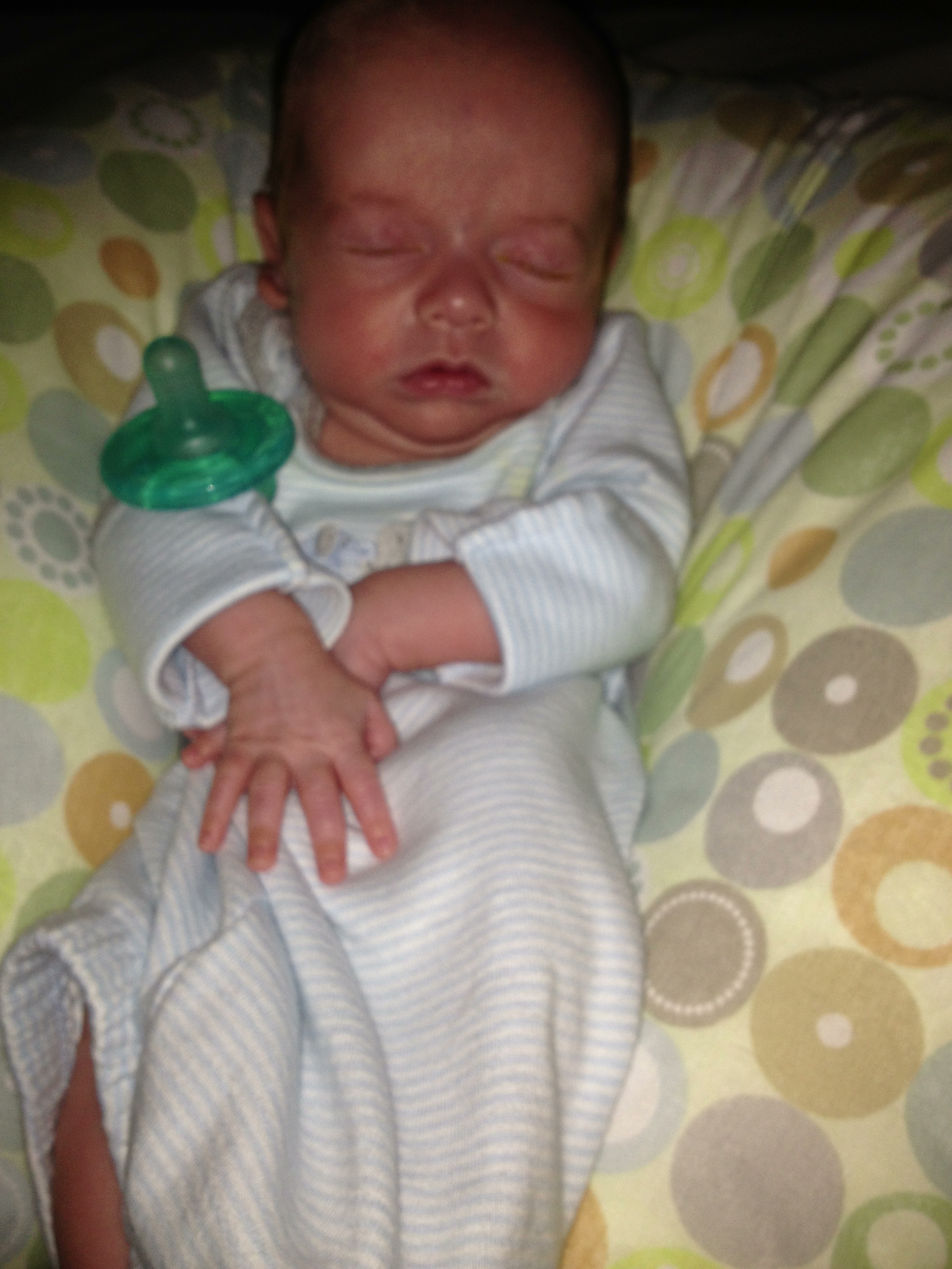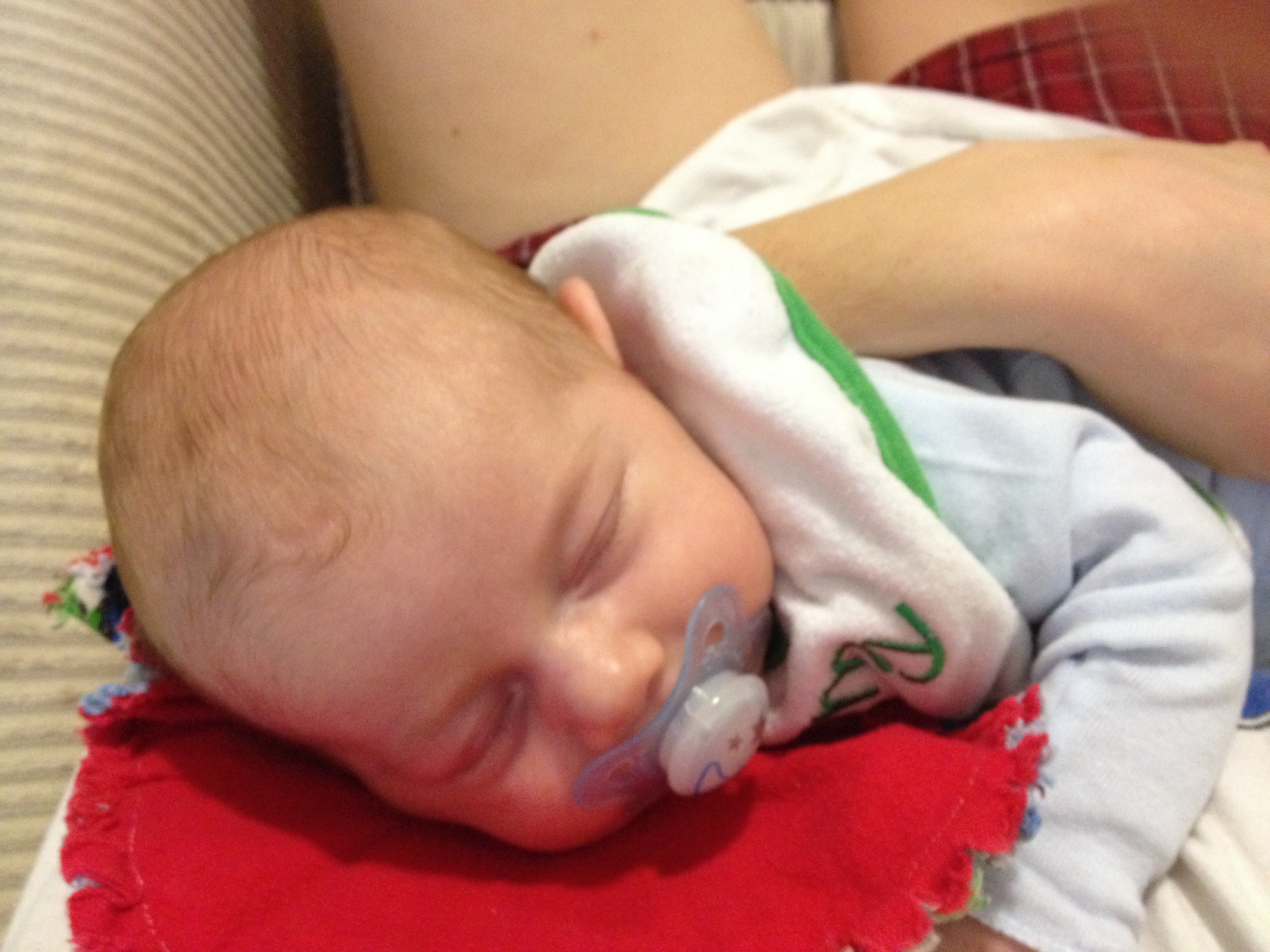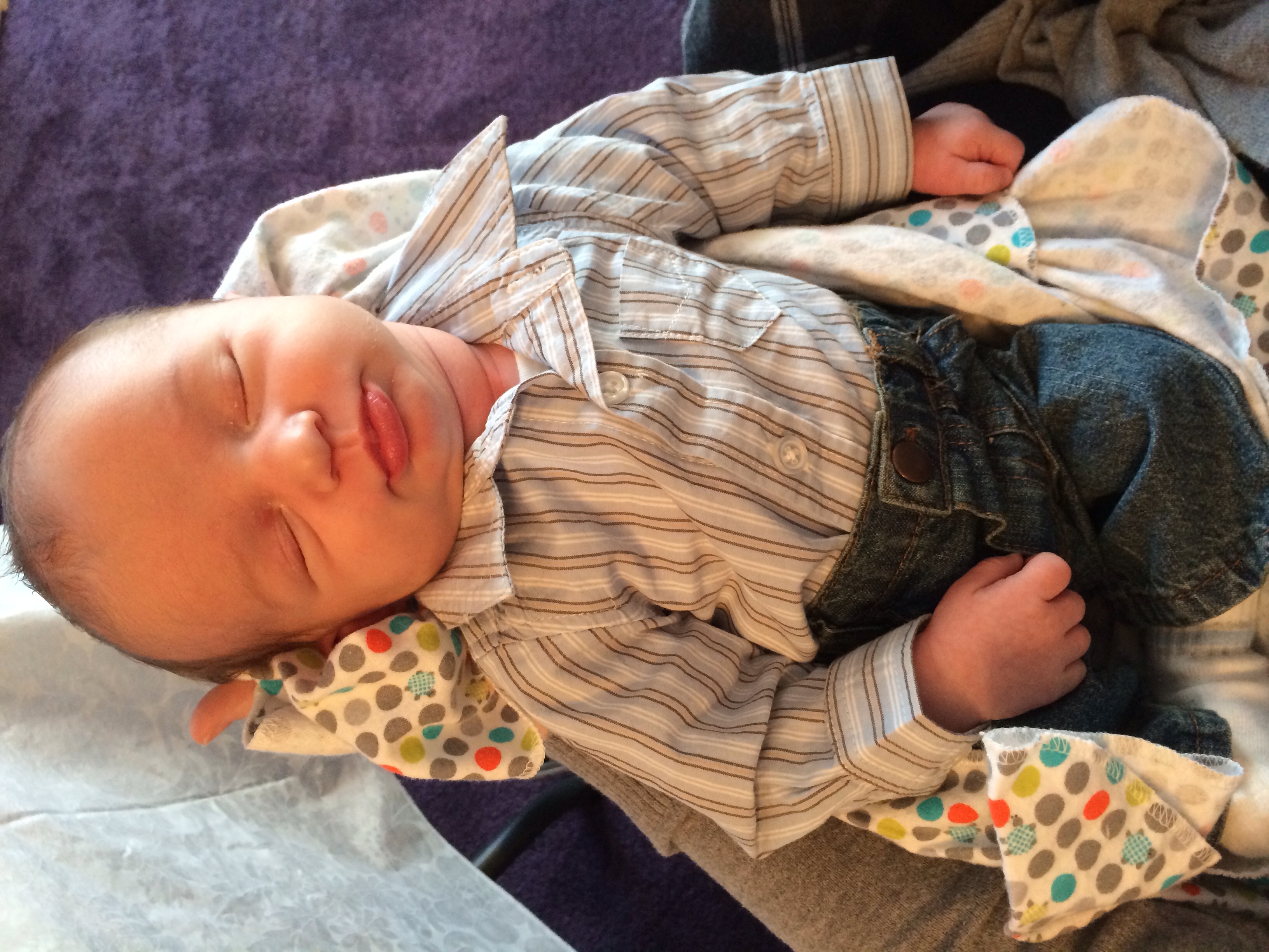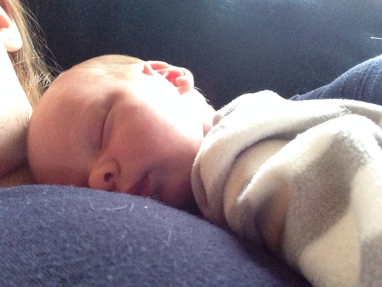 Here's my little guy. So hard to put him down when he's this cute and cuddled up on me.