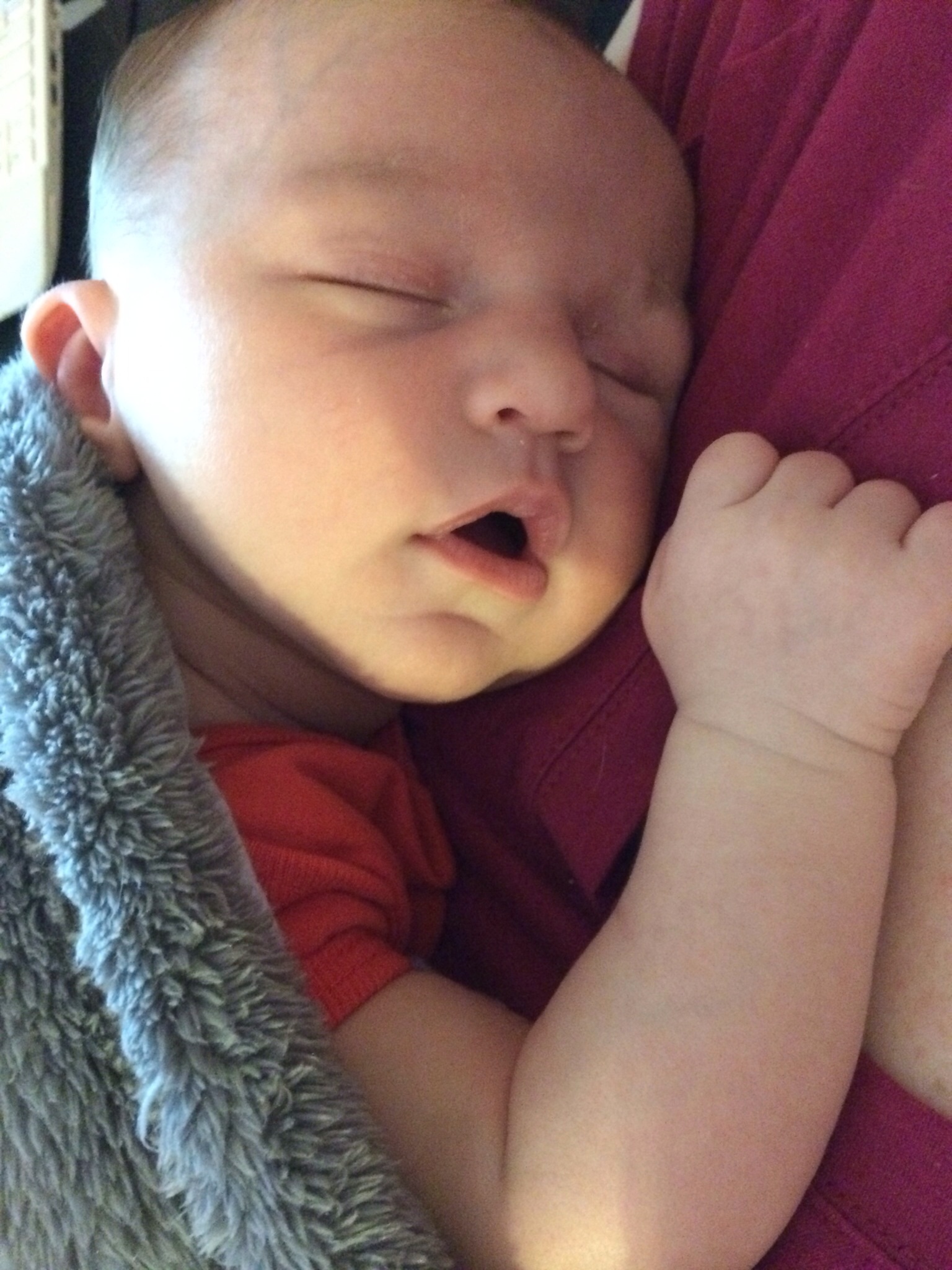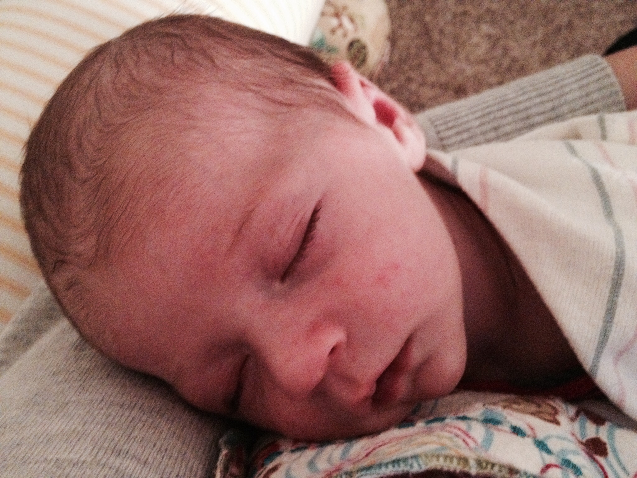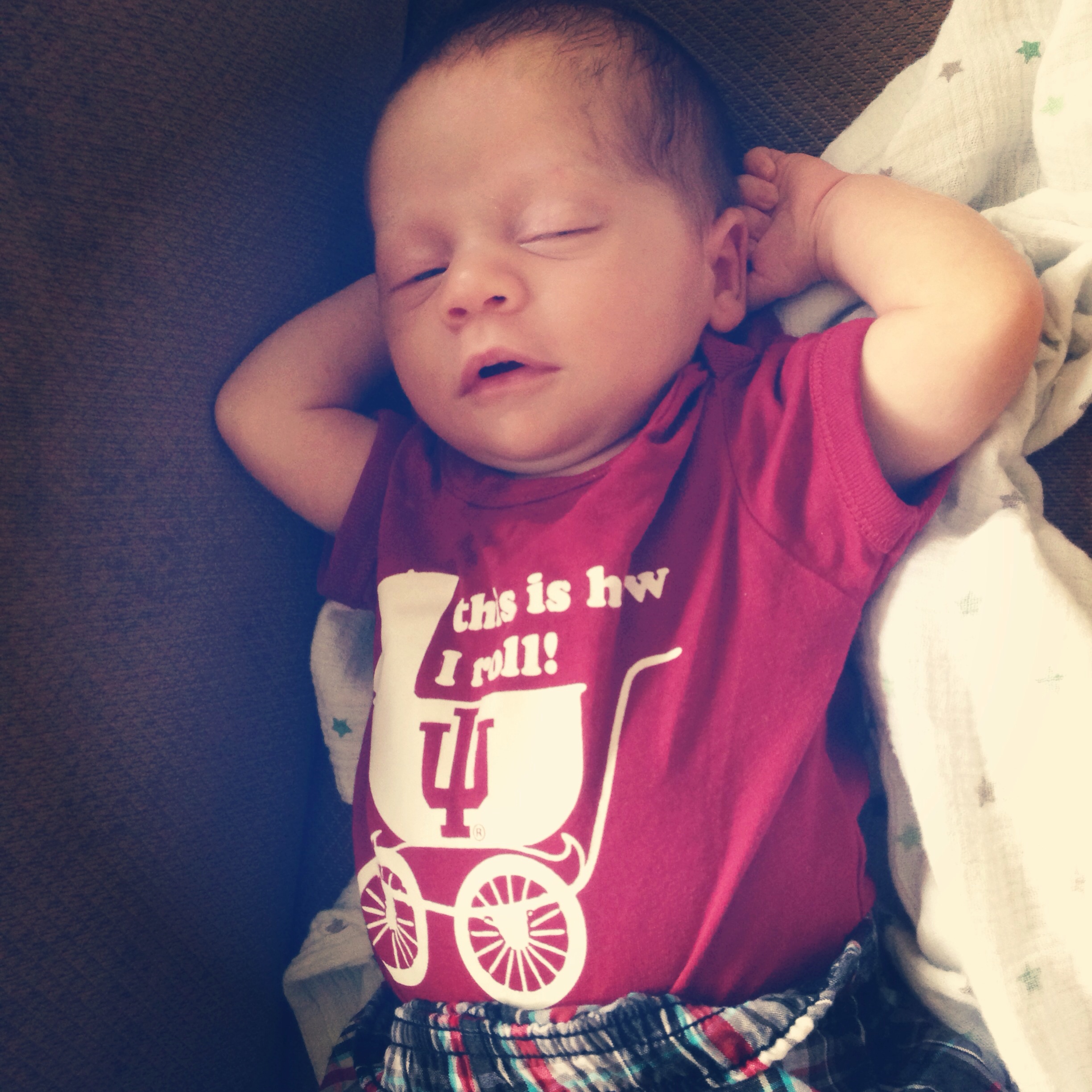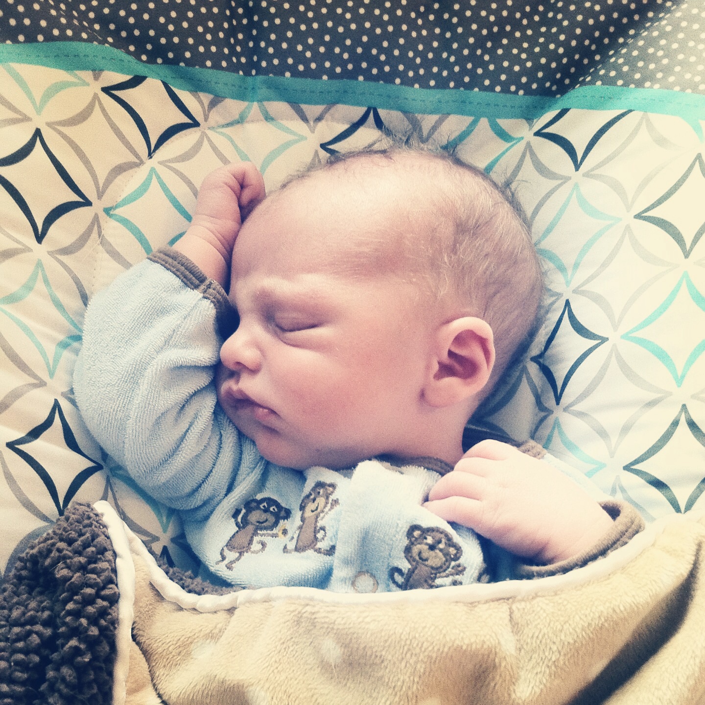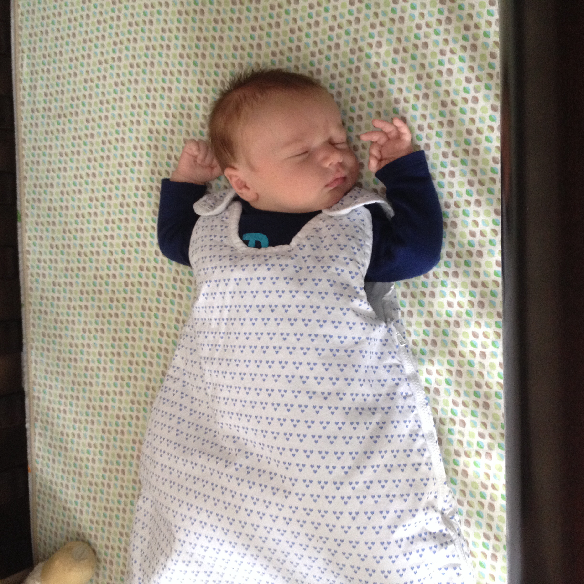 Here's my little guy. So hard to put him down when he's this cute and cuddled up on me.