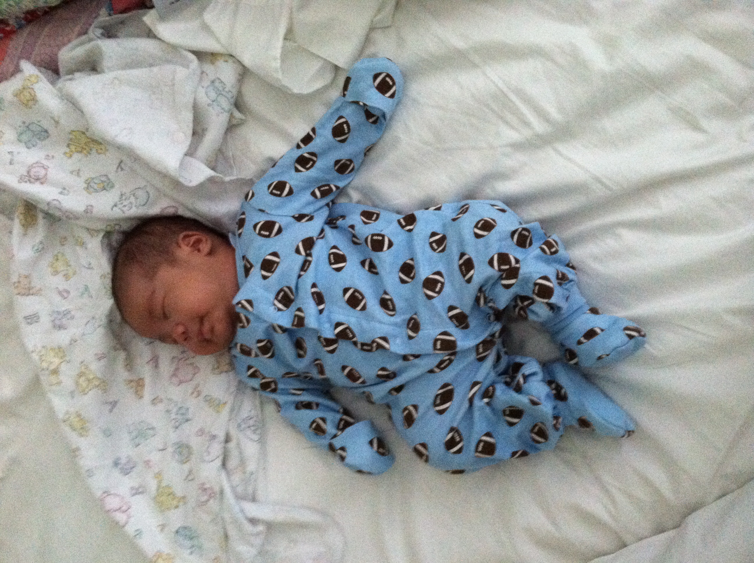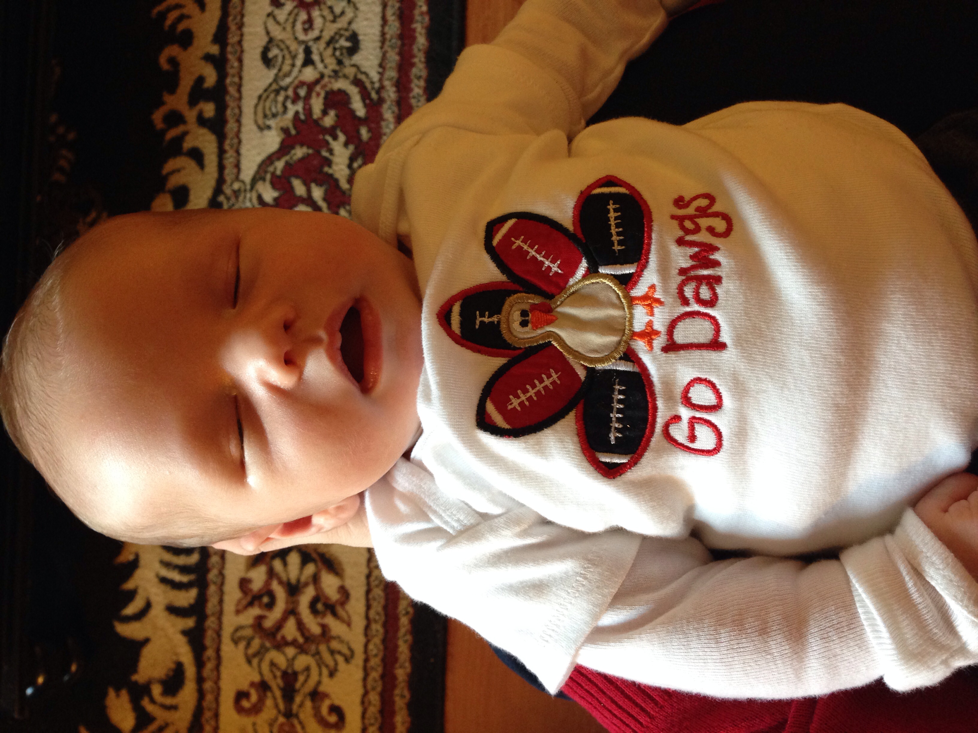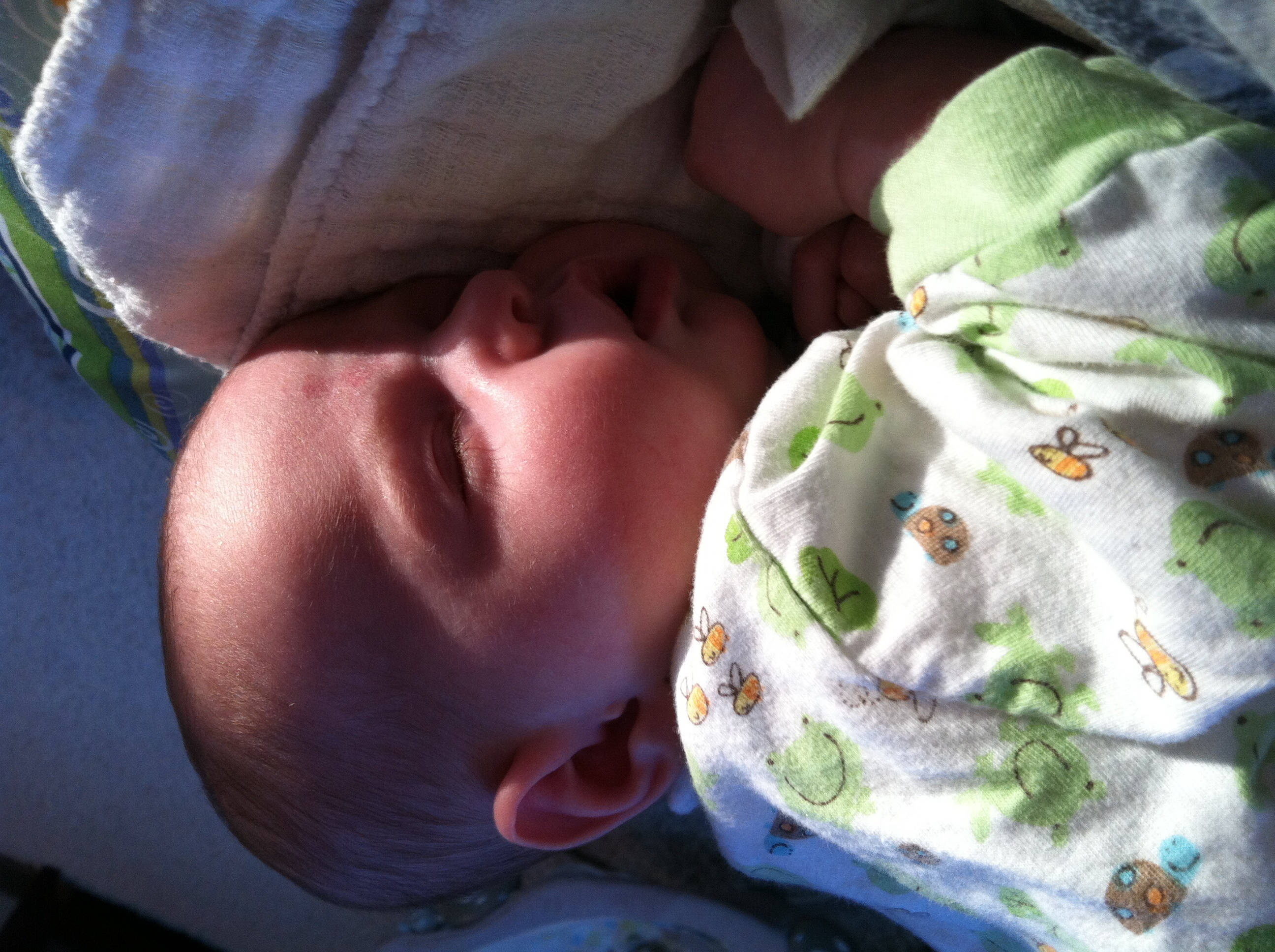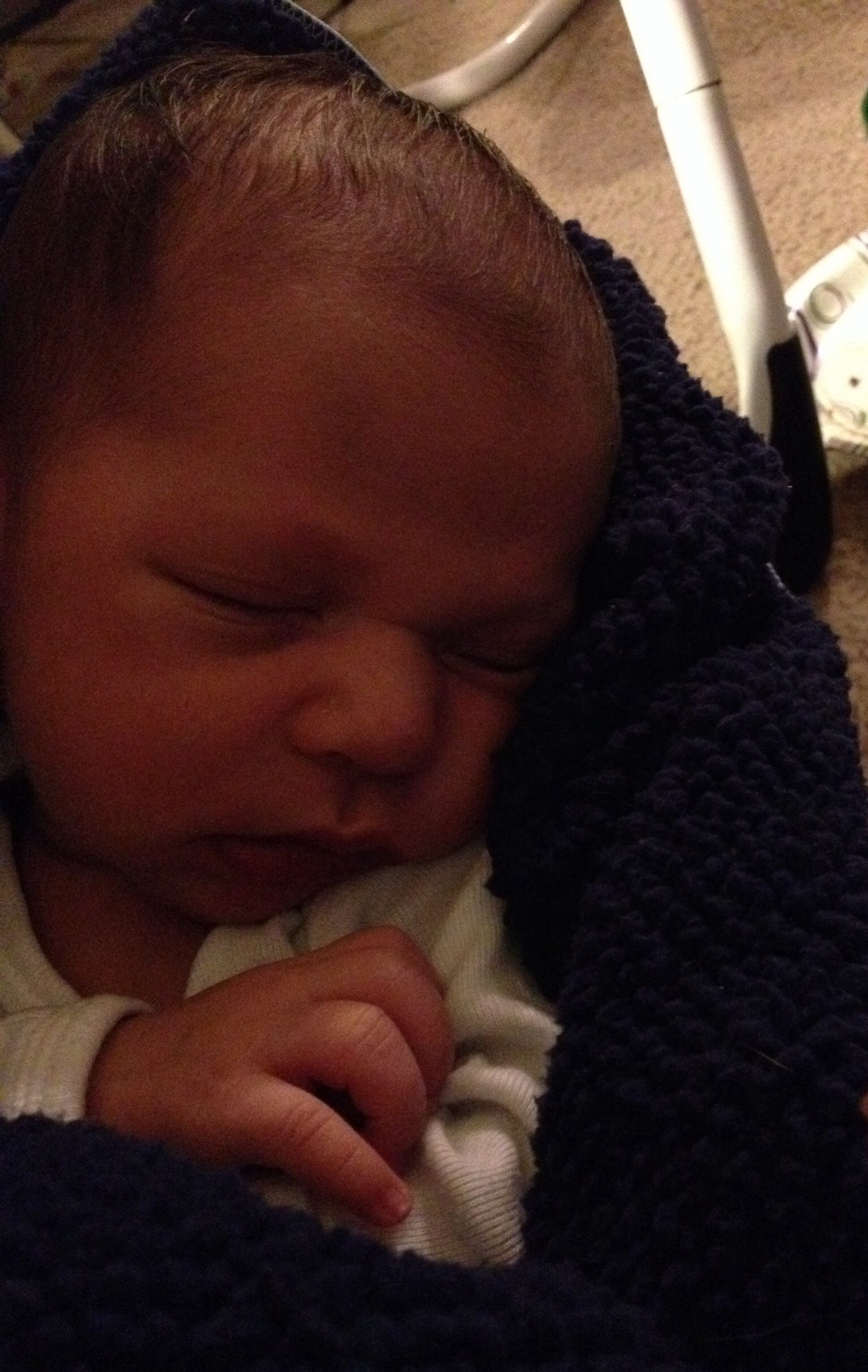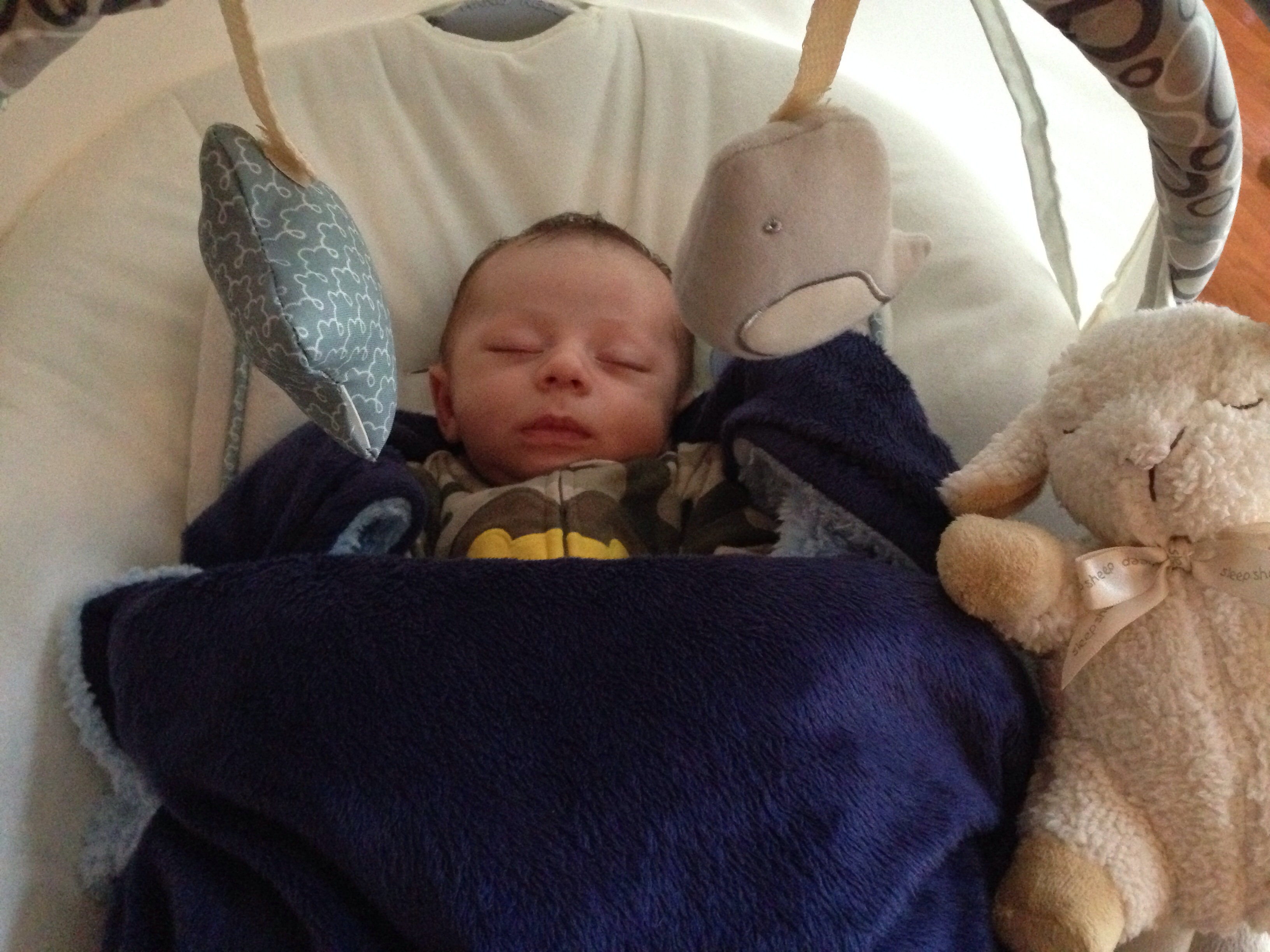 Here's my little guy. So hard to put him down when he's this cute and cuddled up on me.