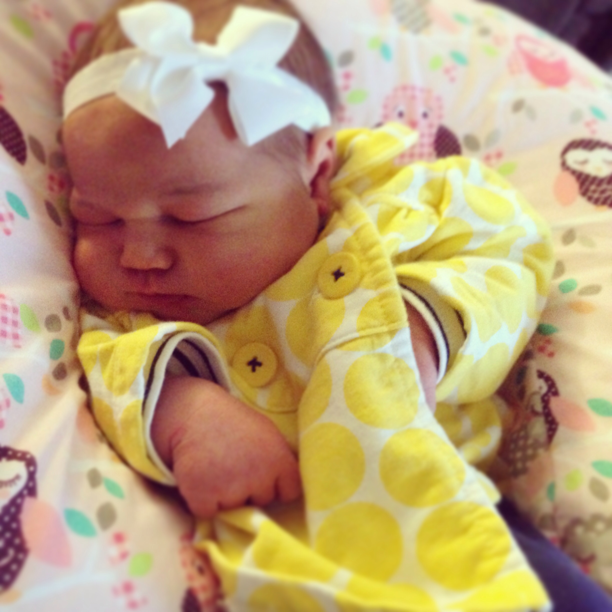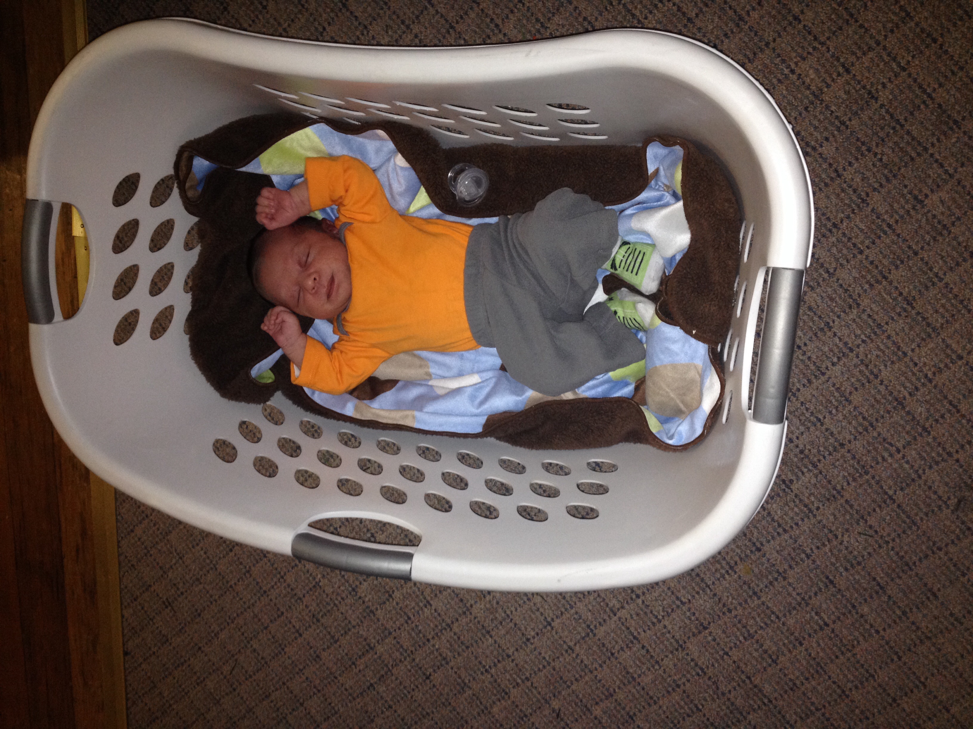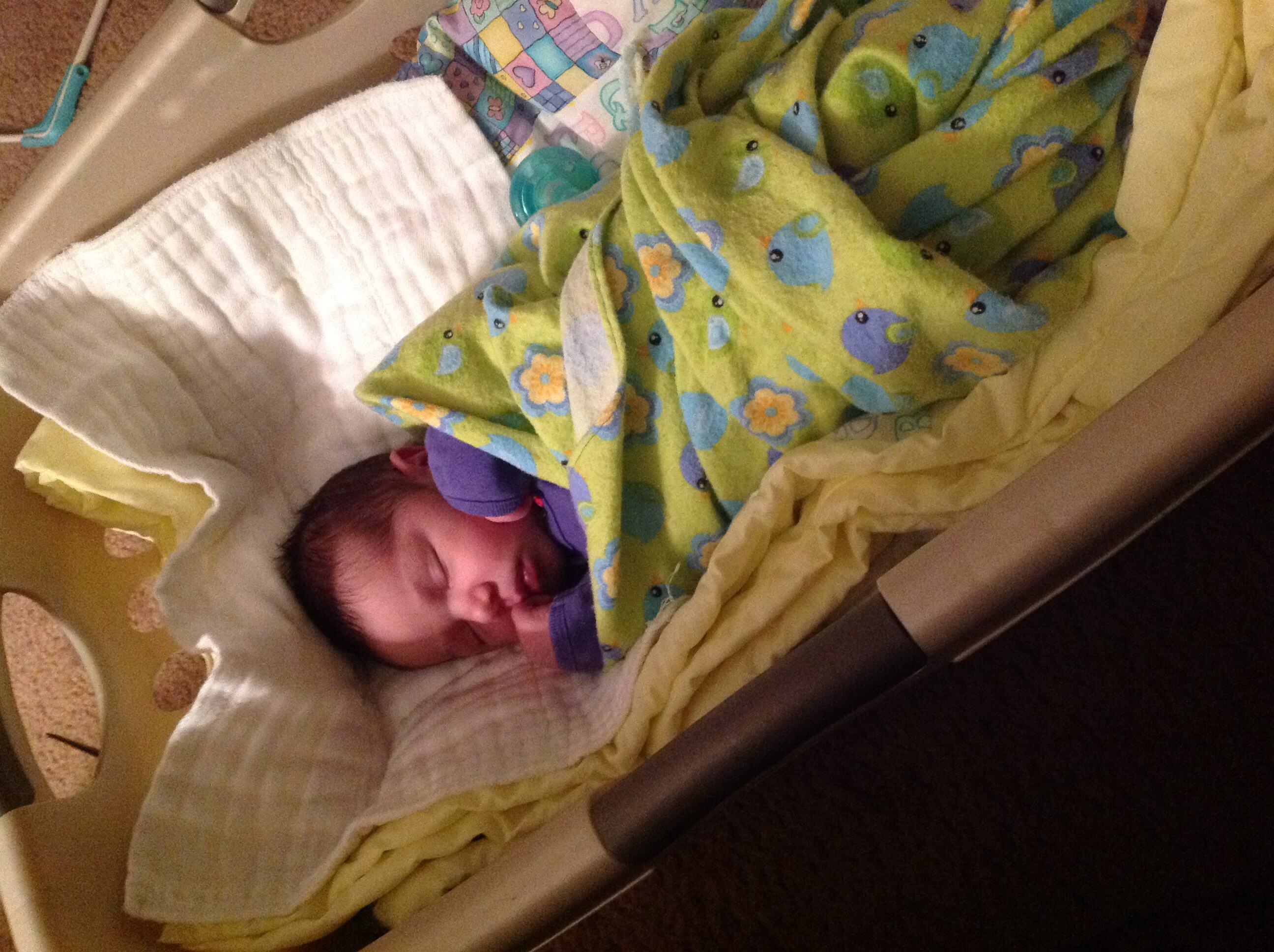 My LO sleeping in her "portable crib" while I fold laundry. This was the night before last. She is so cute and I still can't believe she is actually here!