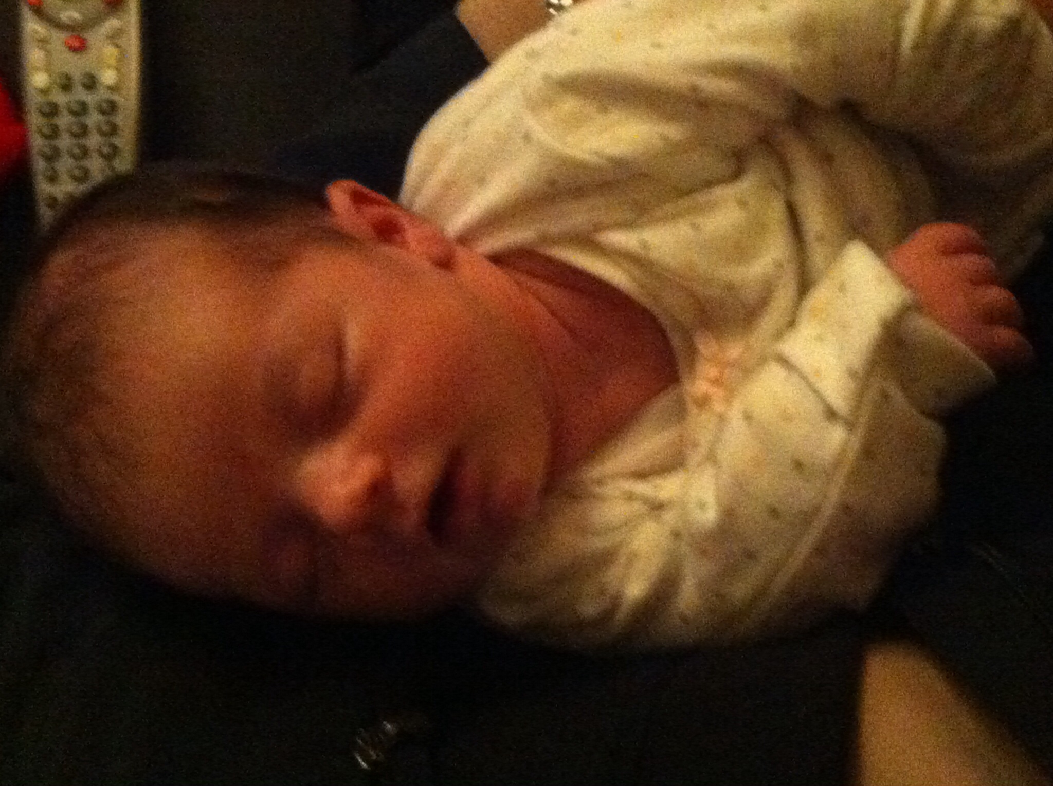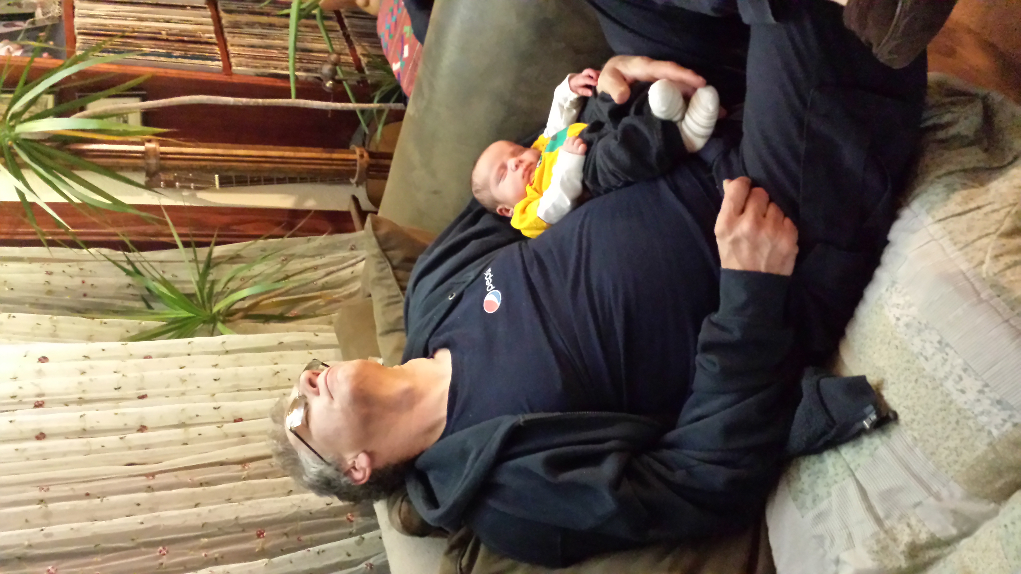 This was yesterday... napping with grandpa. FYI my dad wasn't really asleep just wishing he was. He said holding the sleeping baby always makes him tired.