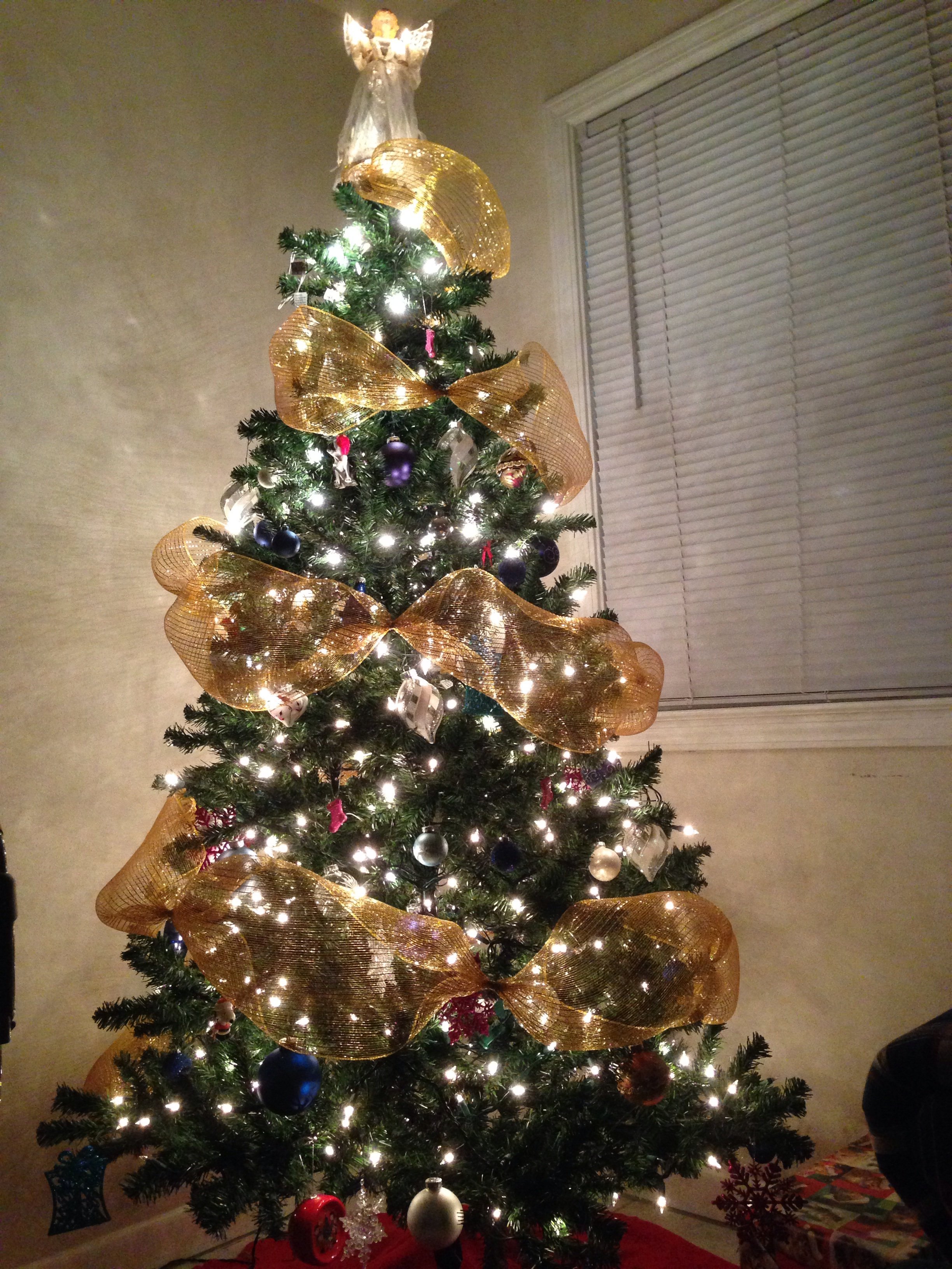 None of LO yet. But here's our 7 year old Christmas tree that was Charlie Brown-esque until I added the mesh ribbon stuff.