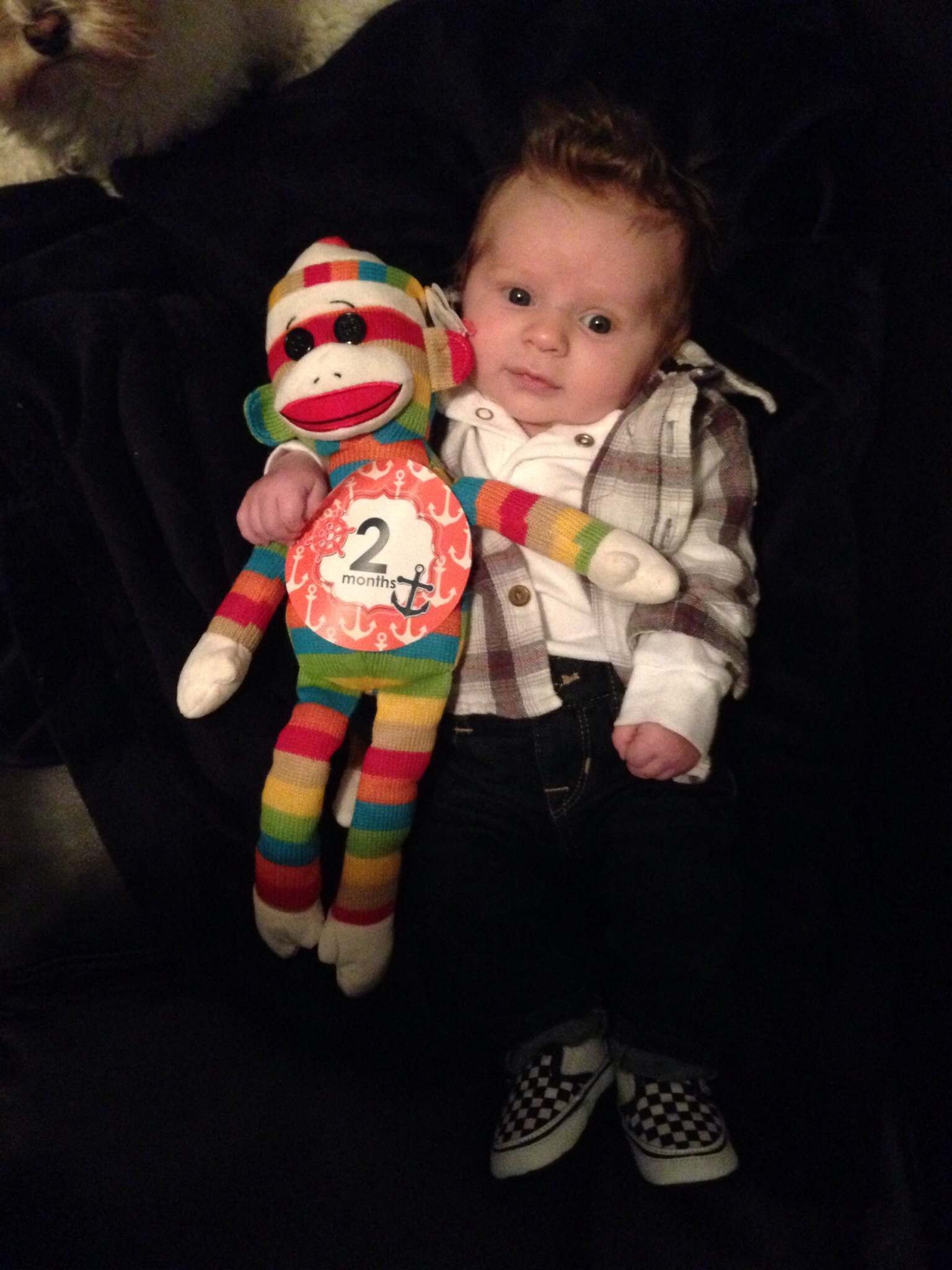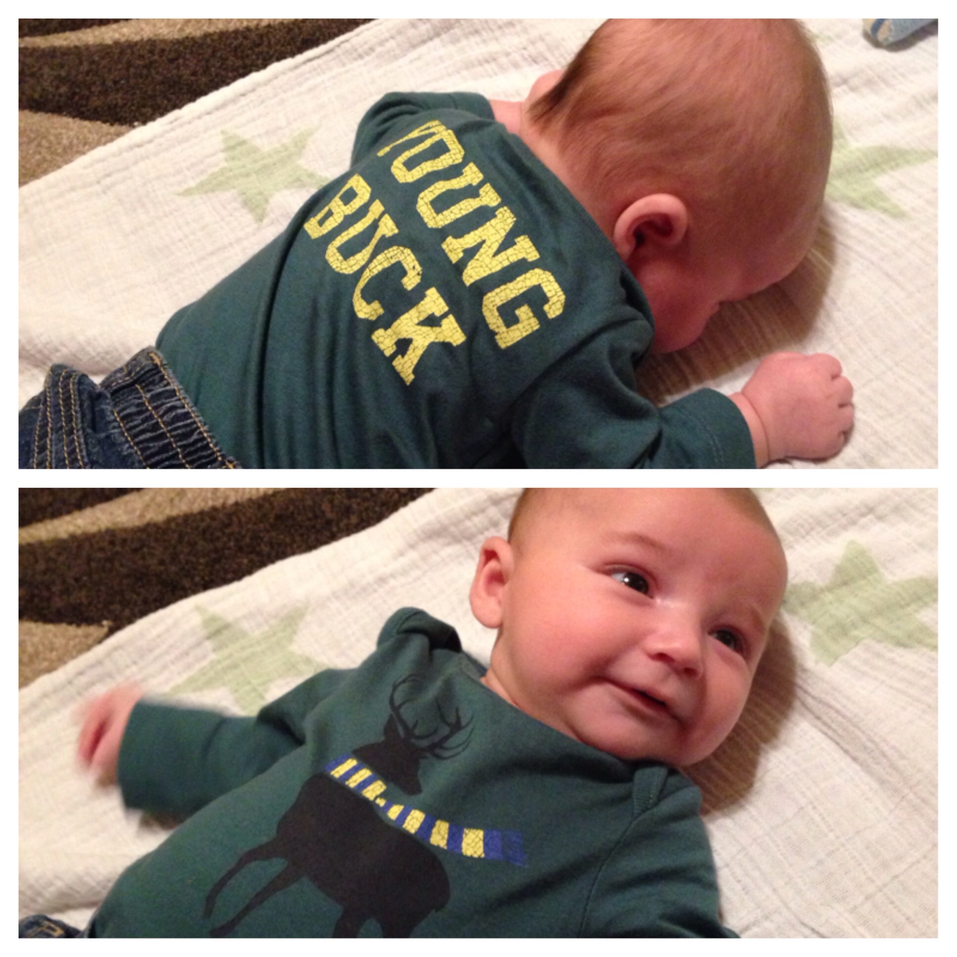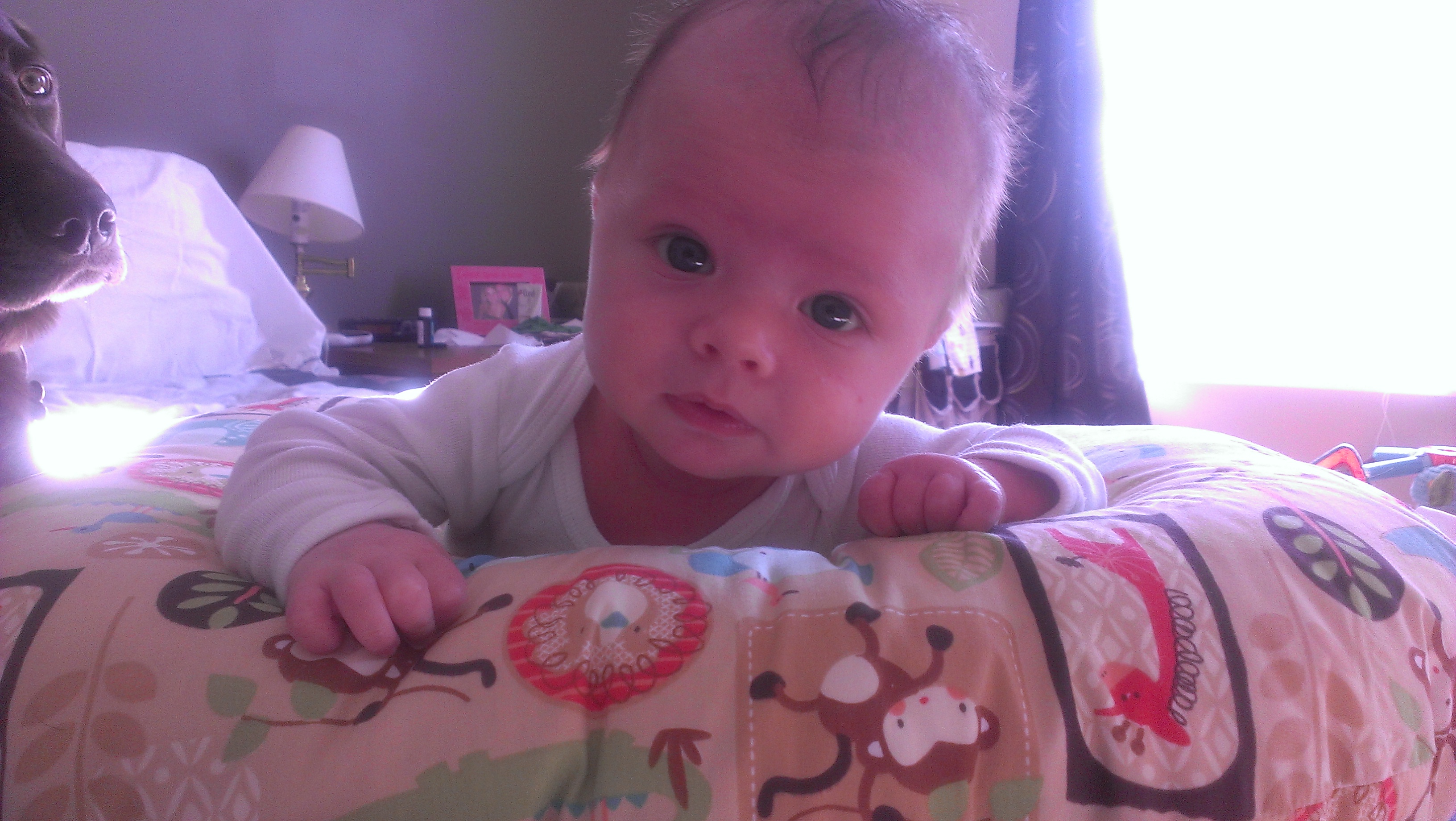 Hunter is 10 weeks 2 days. And for all you pitbull haters, how bout a baby on a Doberman, like that don't you?!