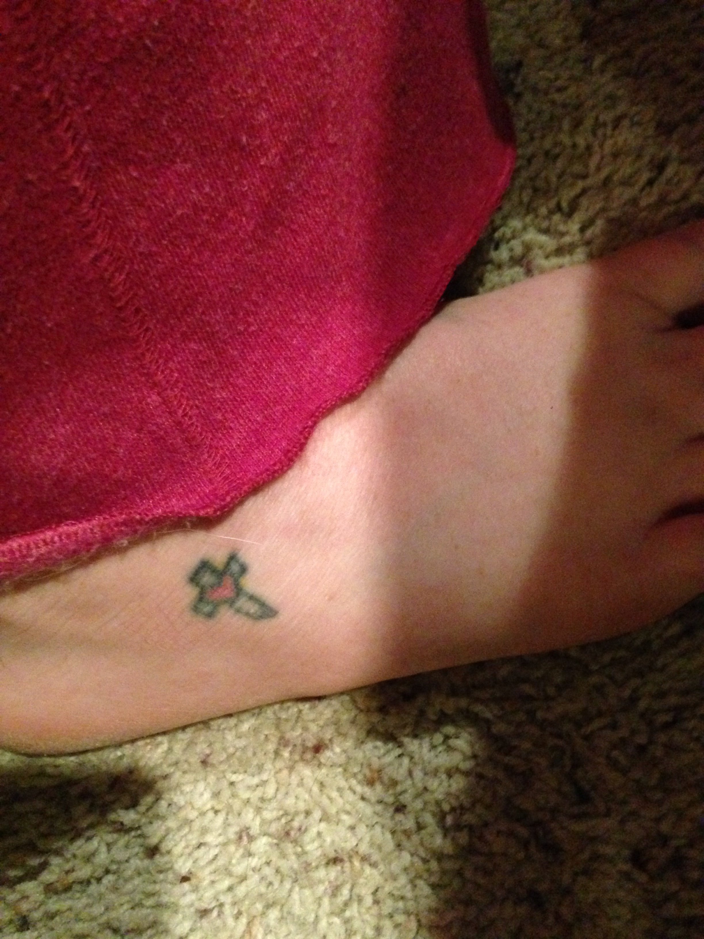 One is a clover, the other is a bumble bee looking thing. I really have no idea what I was thinking. At least no one but DH can see them.