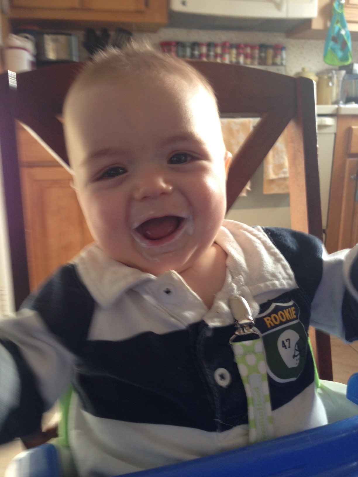 Here is how excited he gets when he eats Yobaby though so it's hard for me to not want to see this happy yogurt smile!