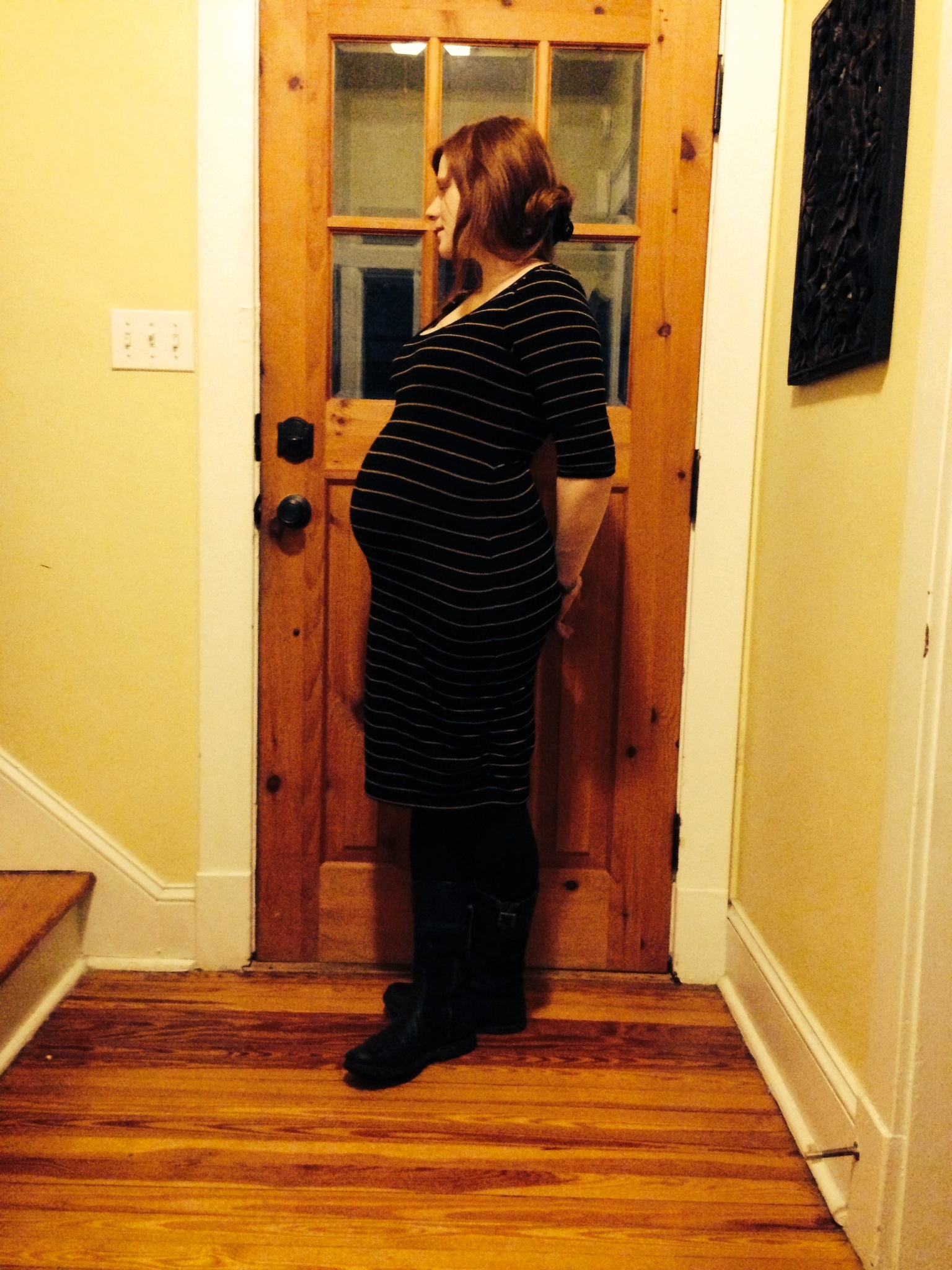 27.1 weeks and just got my new clothes in like 10 minutes ago. I love this dress!