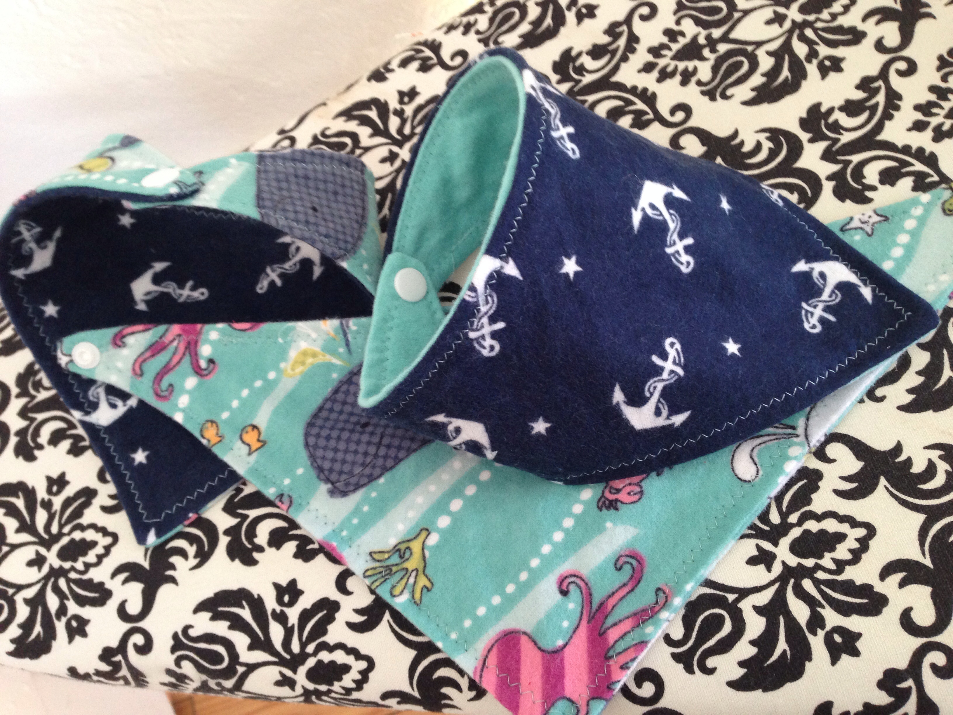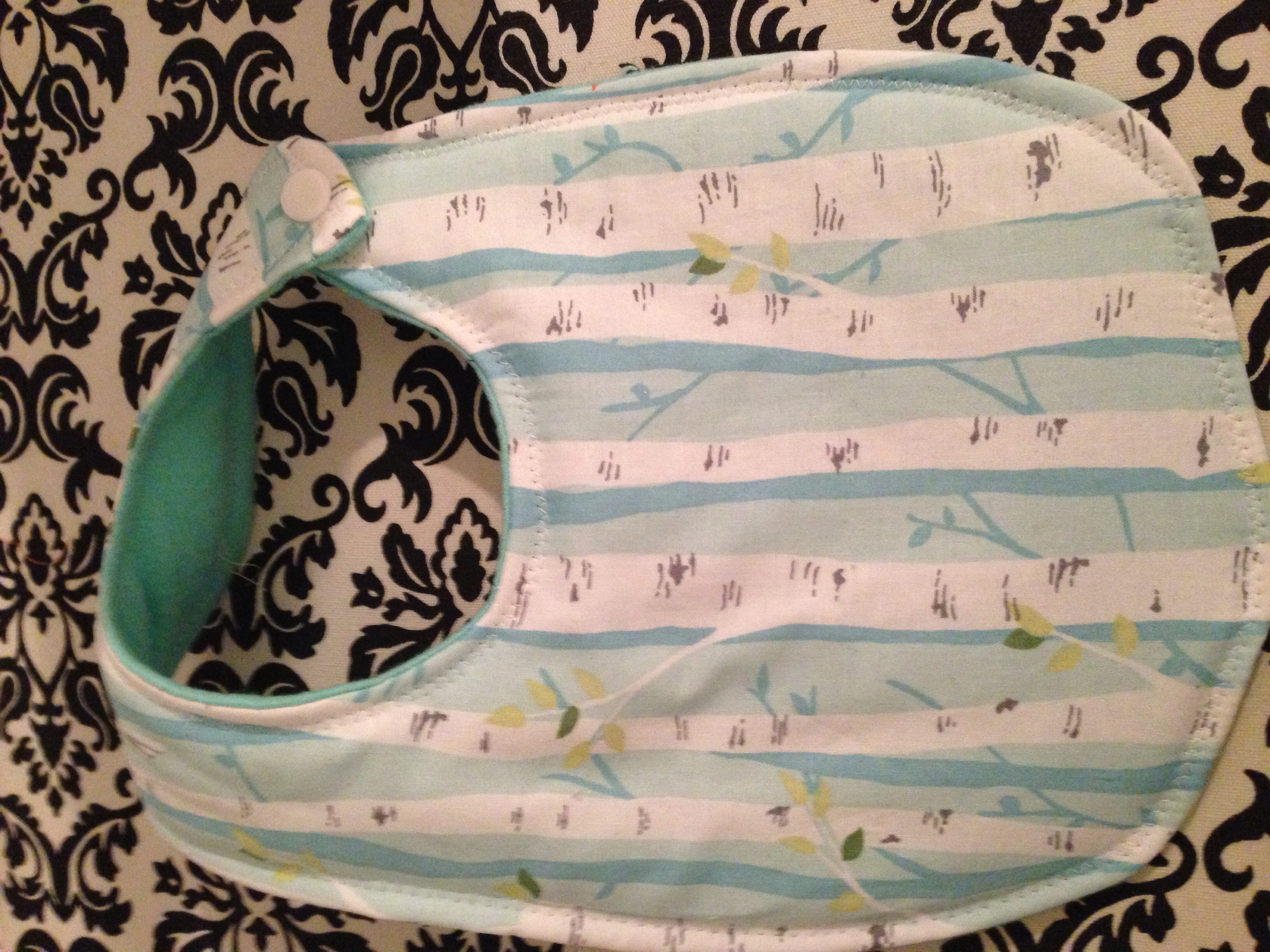 For cute, fashionable ones I just use cotton, because I make paci clips and bows to match.  For functional ones, I'll use cotton on the front and flannel on the back, or both flannel.  I have a mix of both.  I just googled a bib outline, printed and used it as a template... Super easy!