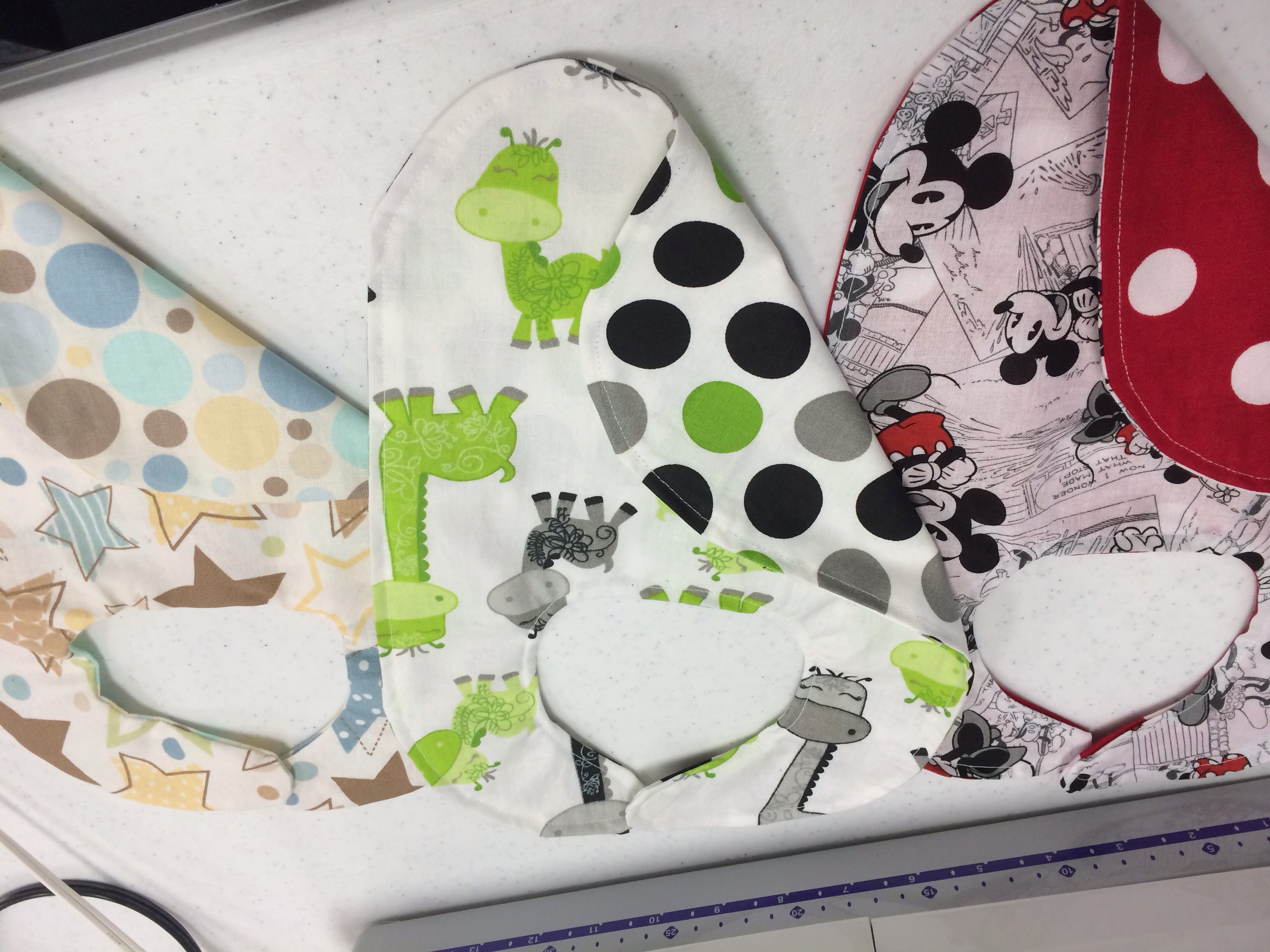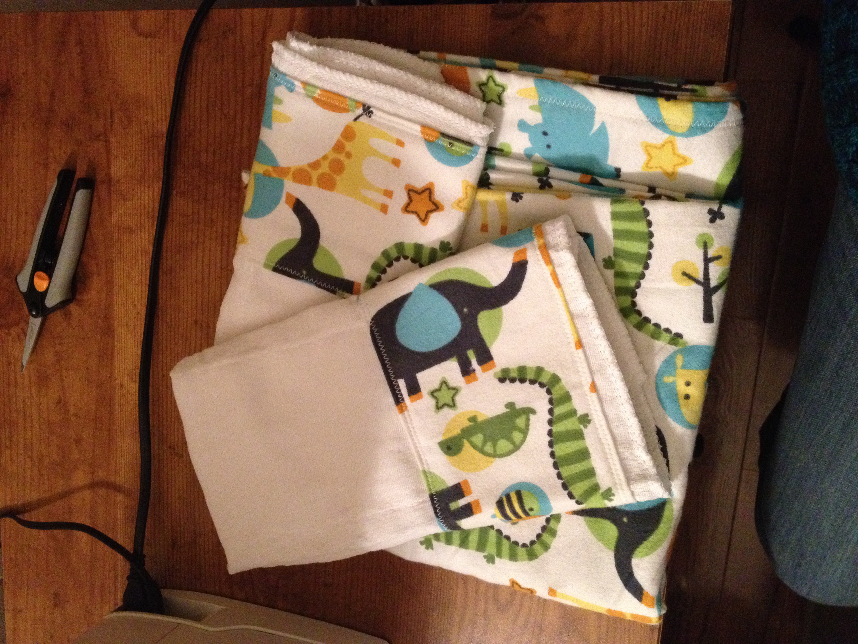 • I knew looking through this thread again would make me regret putting my sewing machine away! It was housed in the baby's room and DH was getting nervous that it was such a mess so I finished up my projects last weekend, but now I want to make bibs! I am just learning how to sew, the pawprint blankie was my first one ever! 3 other lovely ladies in my life are expecting within the same timeframe as me so I made 4 of each, one for me and one to add to their baby gifts.