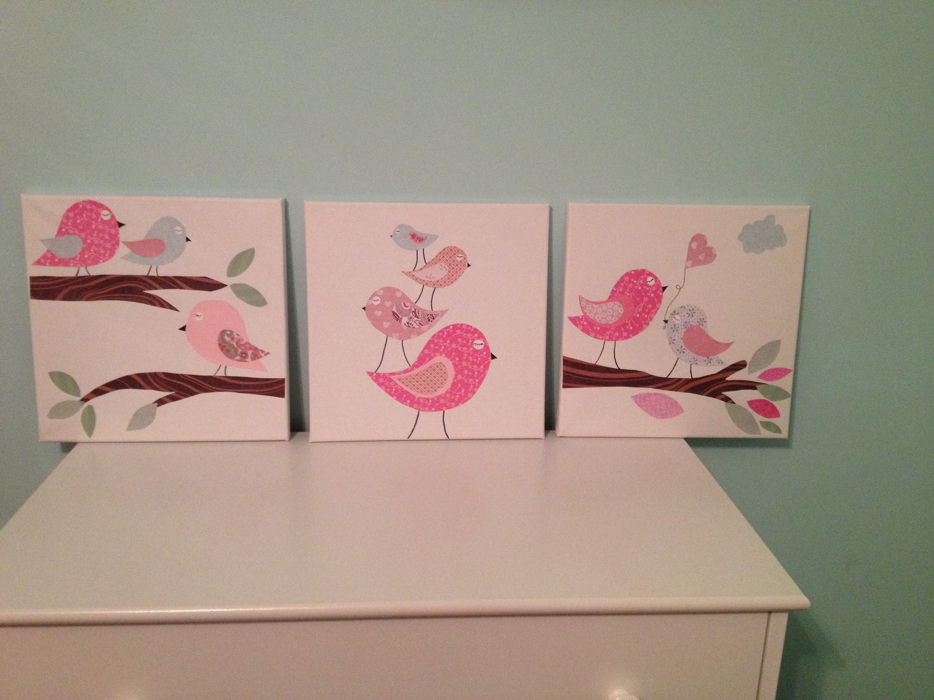 • Currently making my shower invitations, knitting a blanket, sewing cushions and pillows for a window seat and making curtains. This is a pic of some artwork I made that will go above her crib:
