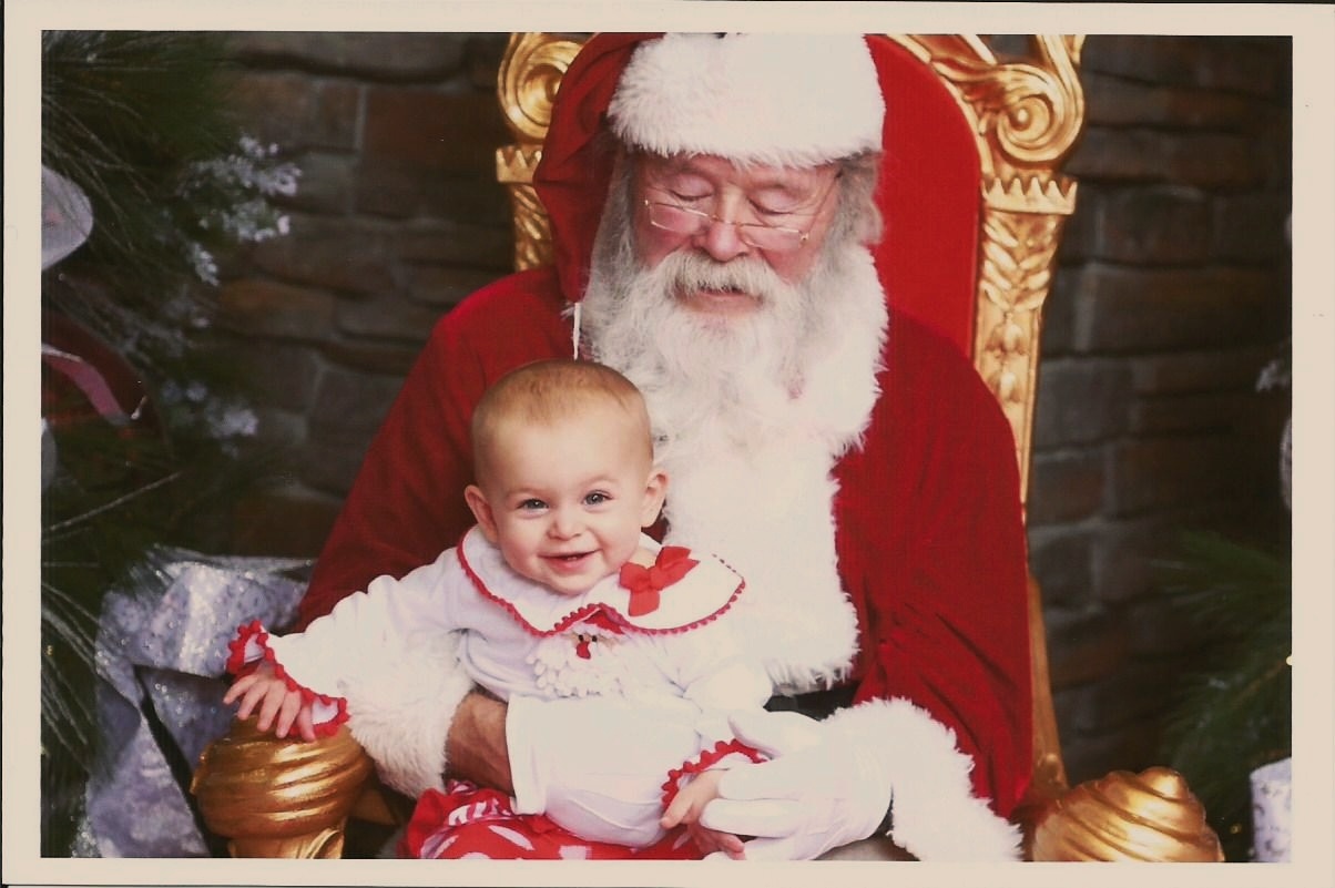 You wouldn't know by the picture, but she was actually pretty scared to go to santa. One flash of my camera and she perked right up! She's such a ham when she knows her picture is being taken. Now if only santa was looking...