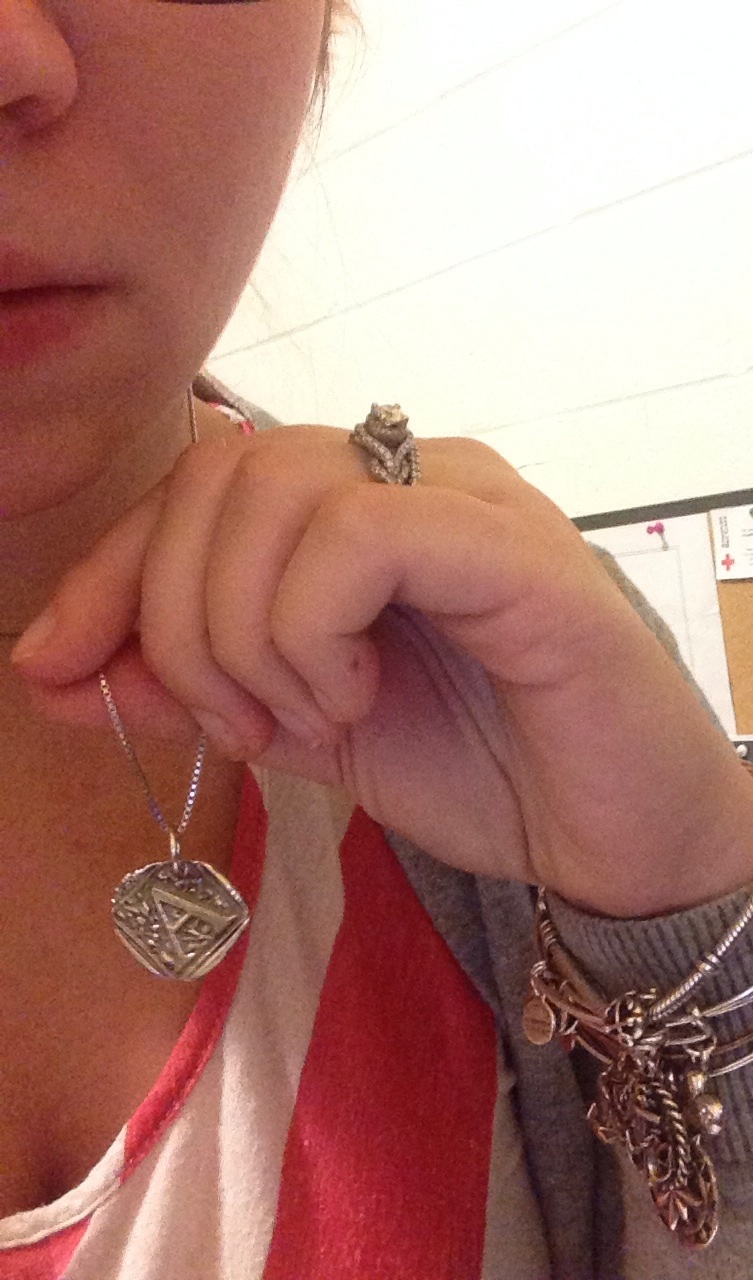 Christmas morning I woke up to get ready for the day and DH asked me to make him eggs. I was all like, "you're joking, right?" And he was all like, "no. I'd really love some eggs." Mind you, we were going to SIL's house for breakfast. So I go to the stove and there is a teenie wrapped box with my necklace