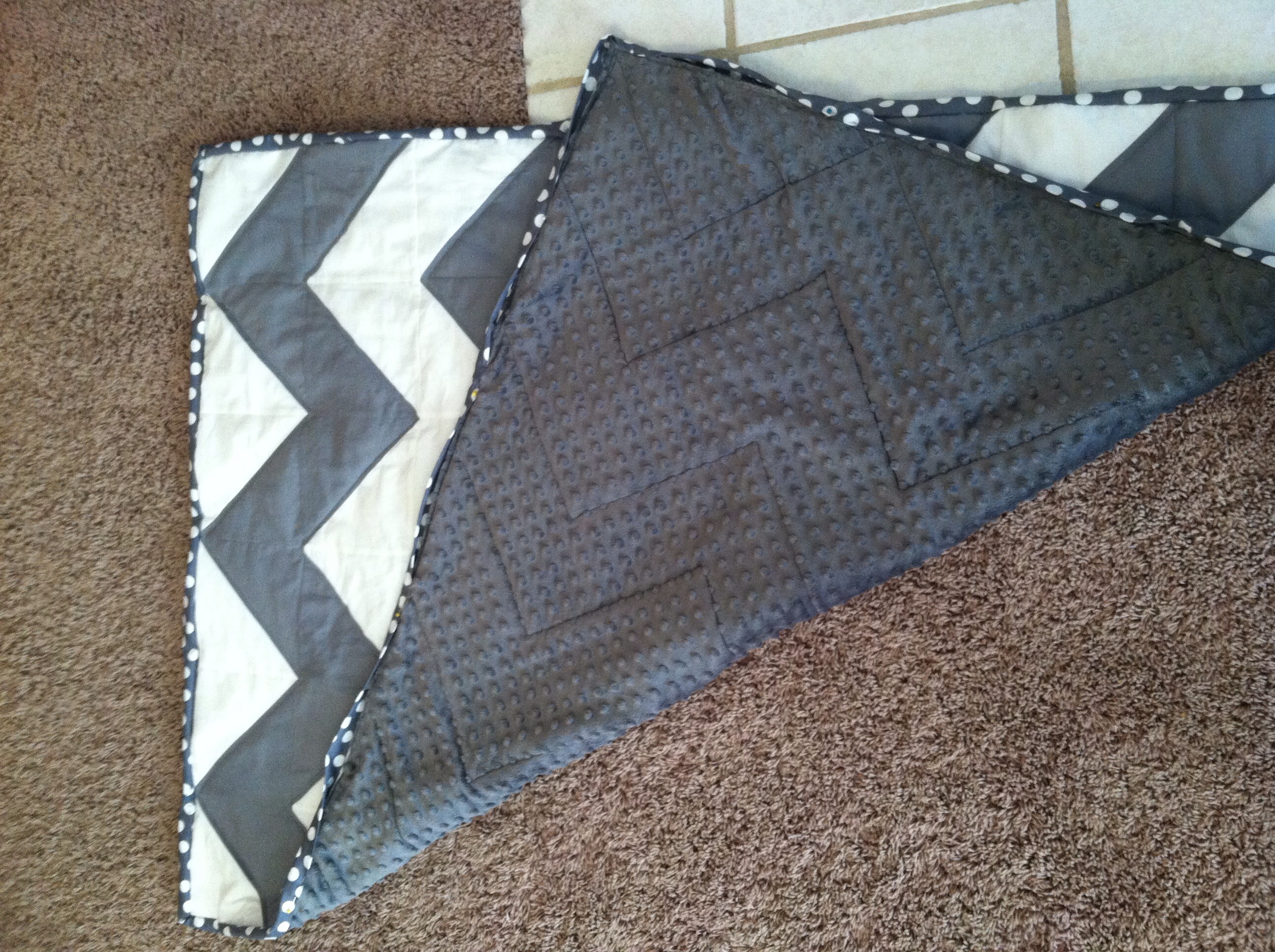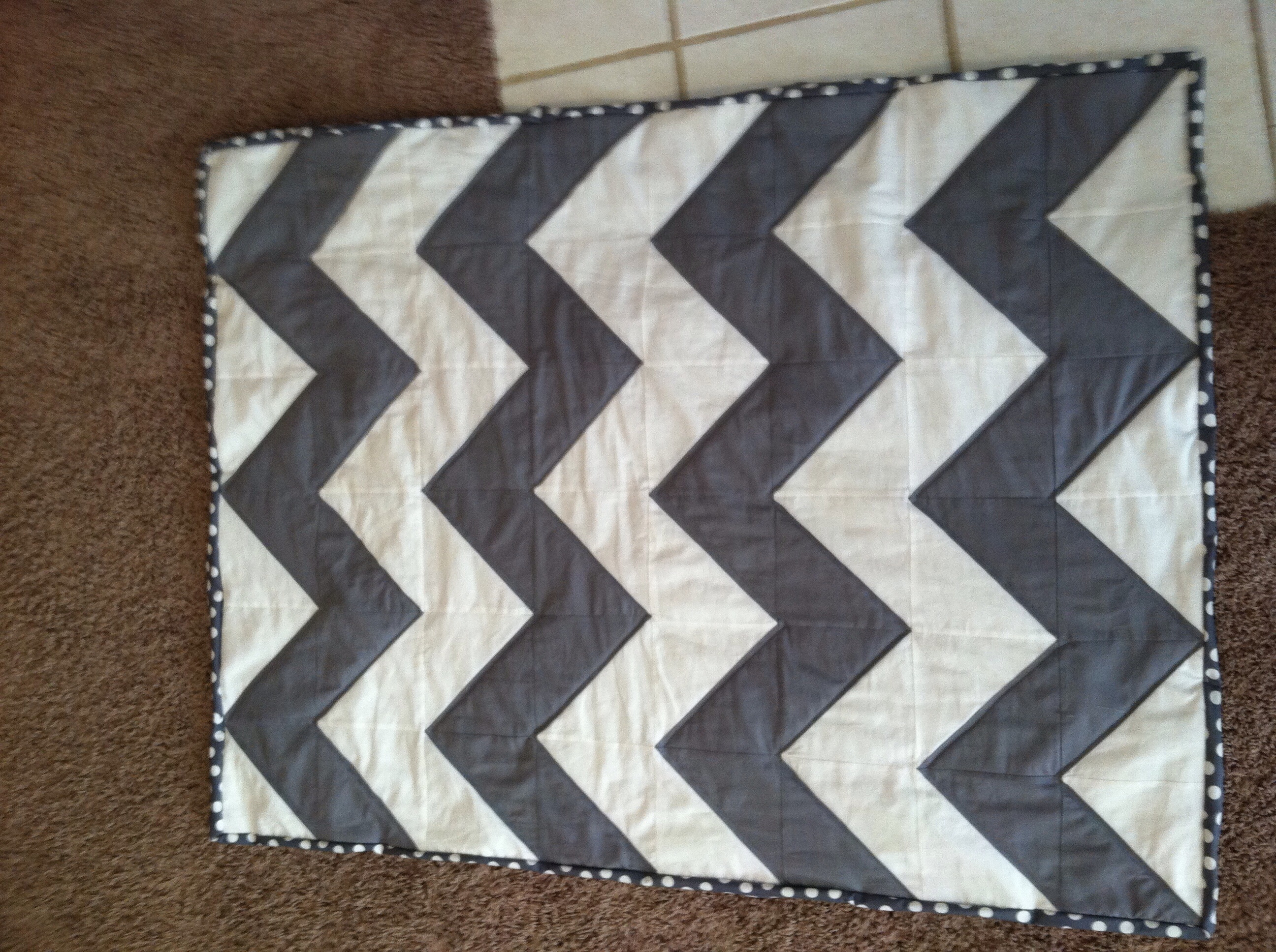 - Center right: Chevron fabric that will be used for the crib skirt and window valance.