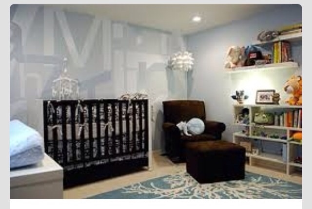 I am actually adding paint swatches to the walls this week and we are getting new carpeting installed next month. We are doing a very soft chocolate brown on the walls and a toast/tan colored carpet. We already have our crib and changing table and they are espresso. I'll also be buying an espresso glider with soft cream colored fabric. Once we find out the sex at the end of Feb, we'll start decorating!