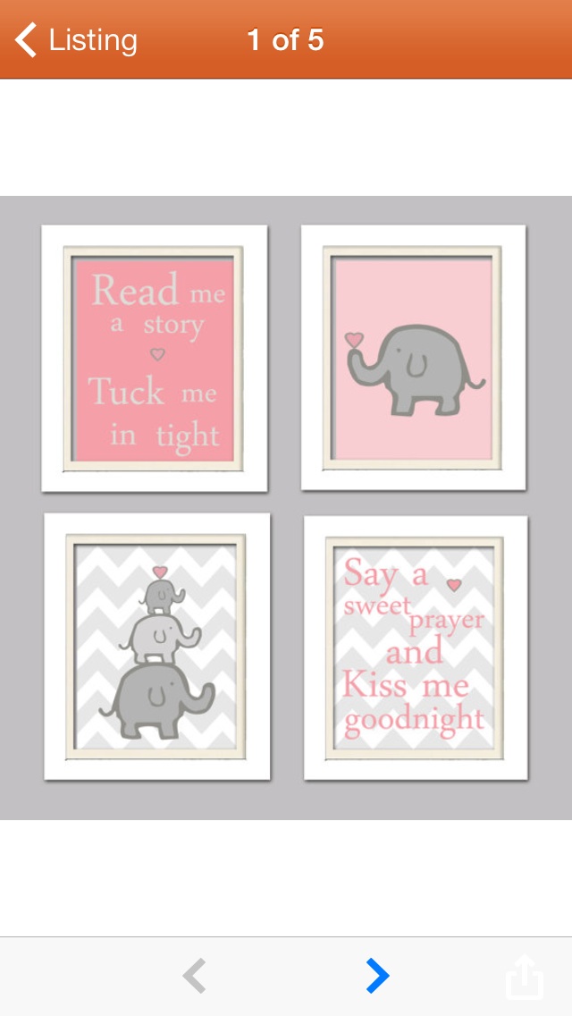 - Middle picture: Inspiration for the room. It's a hand painted elephant print from our honeymoon in Thailand. It will hang above the crib.